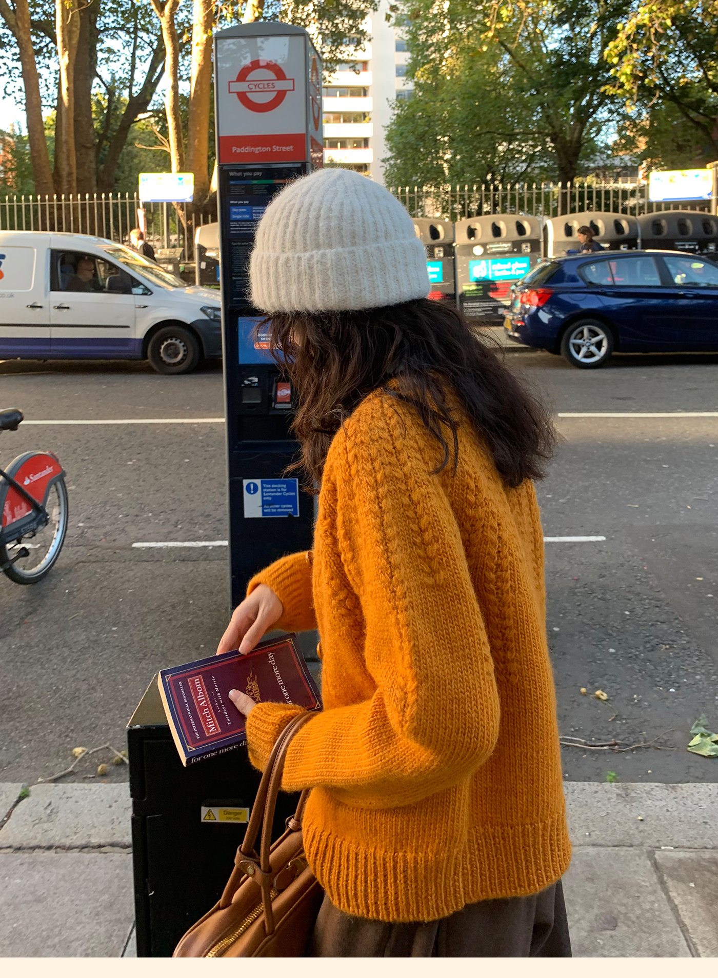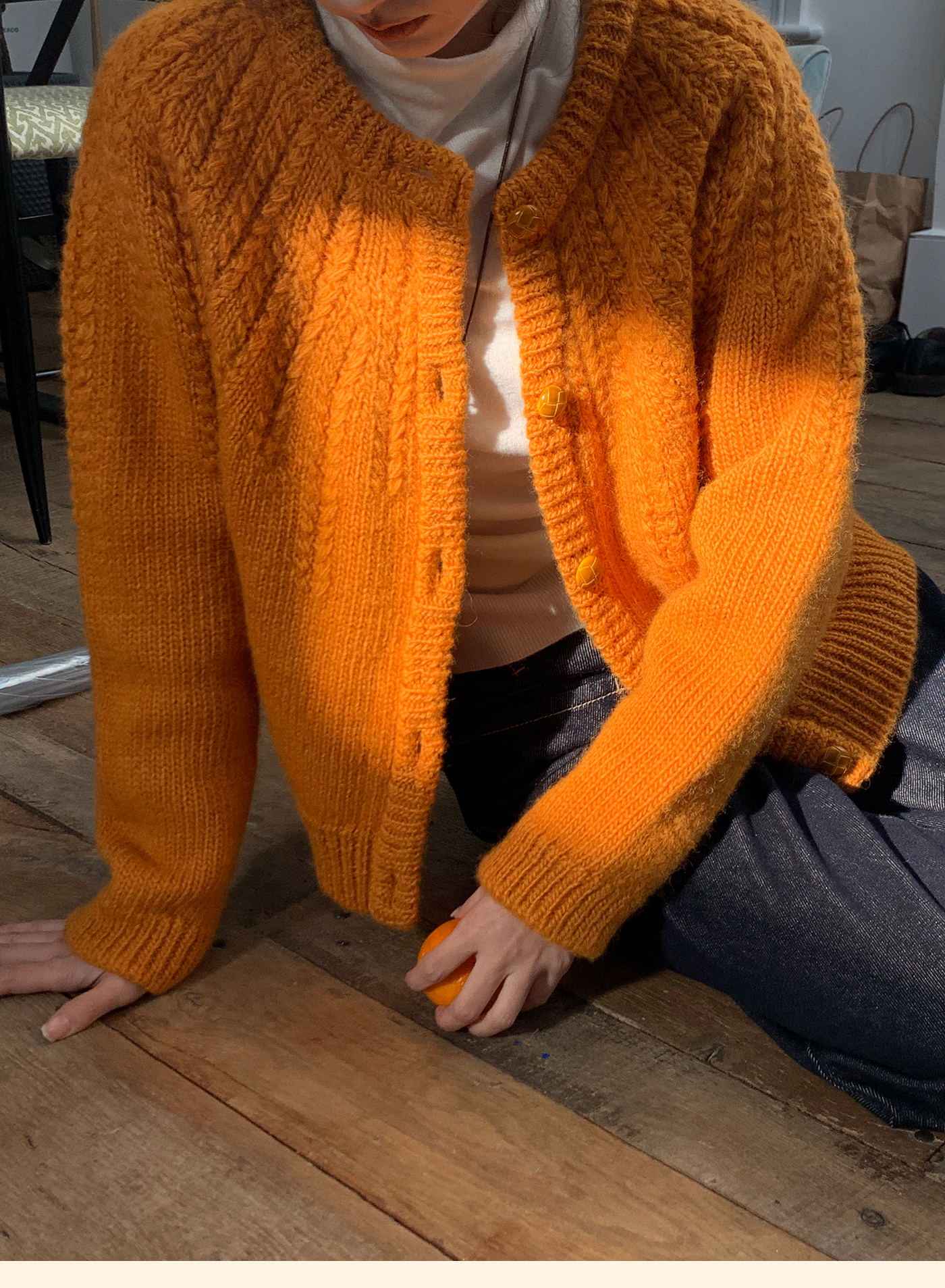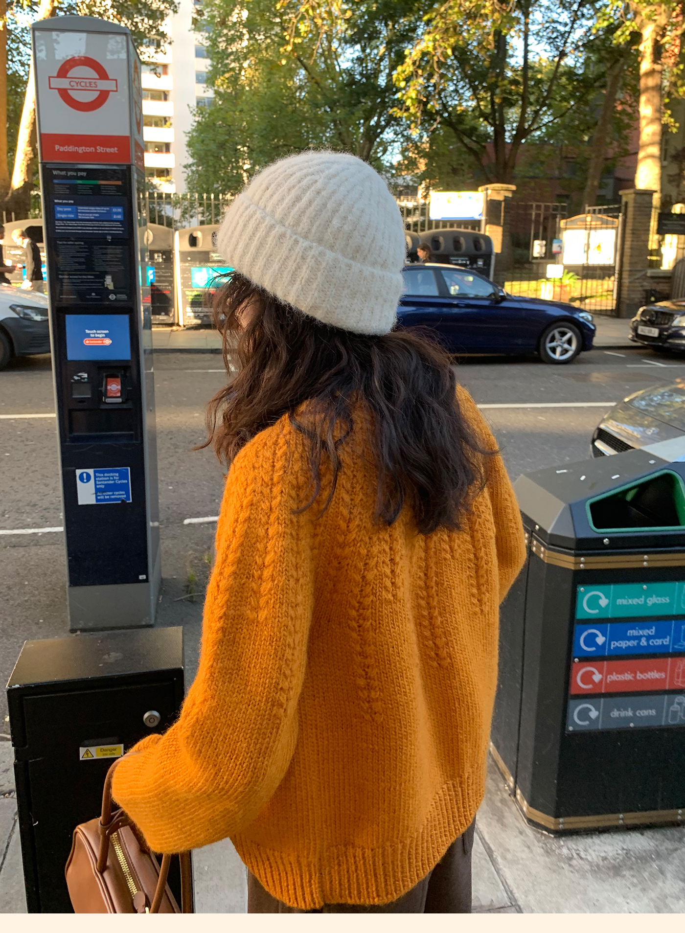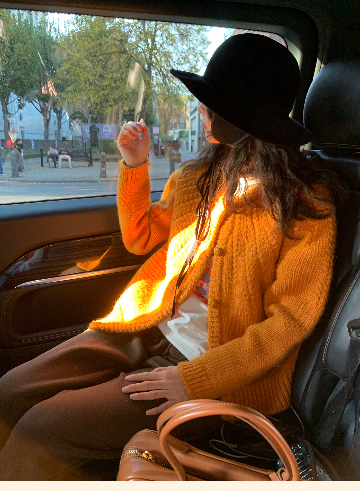 浮生八记/25C198/1OO羊毛南瓜色麻花开衫毛衣