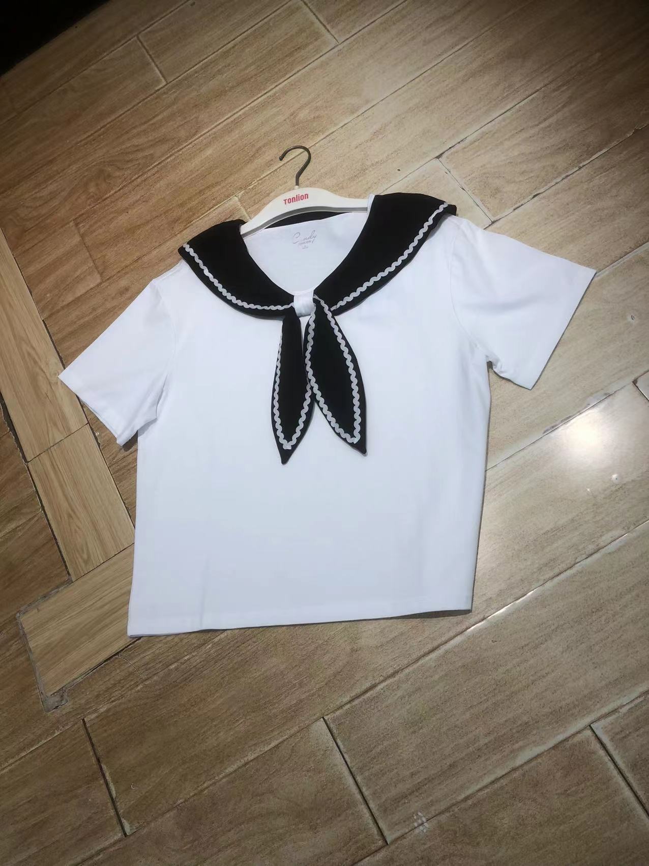 卖点:海军领加蝴蝶结的设计不挑脸型还能显脸型小,面料亲肤透气自带凉感,夏季的福音。H版型包容性强,不挑身材。