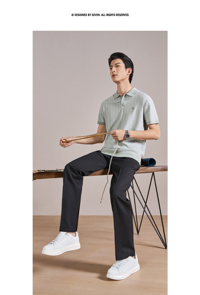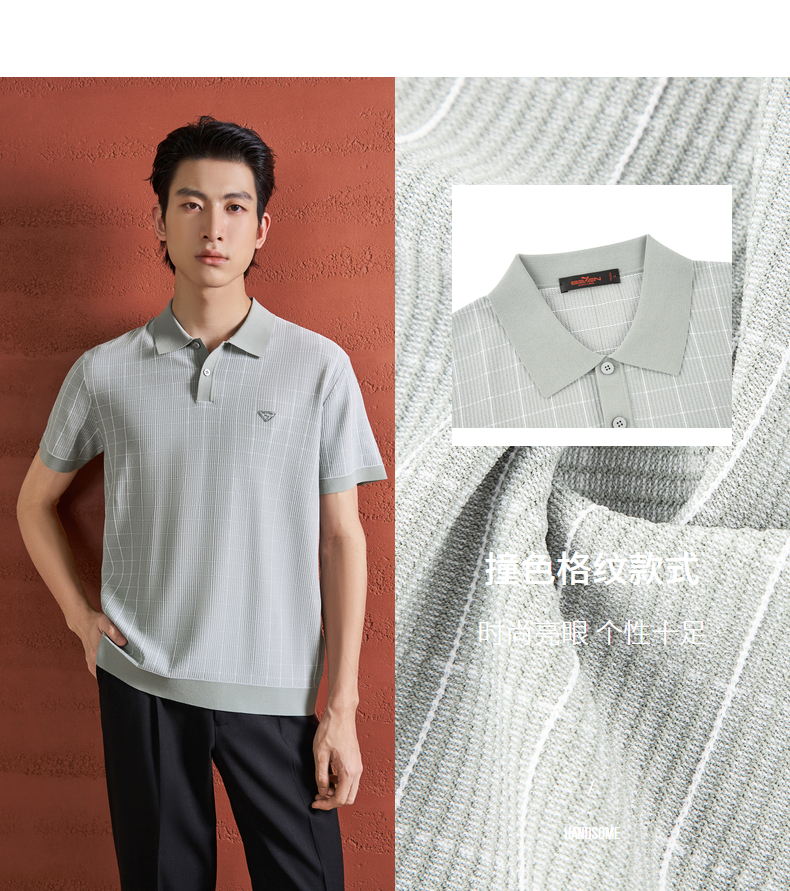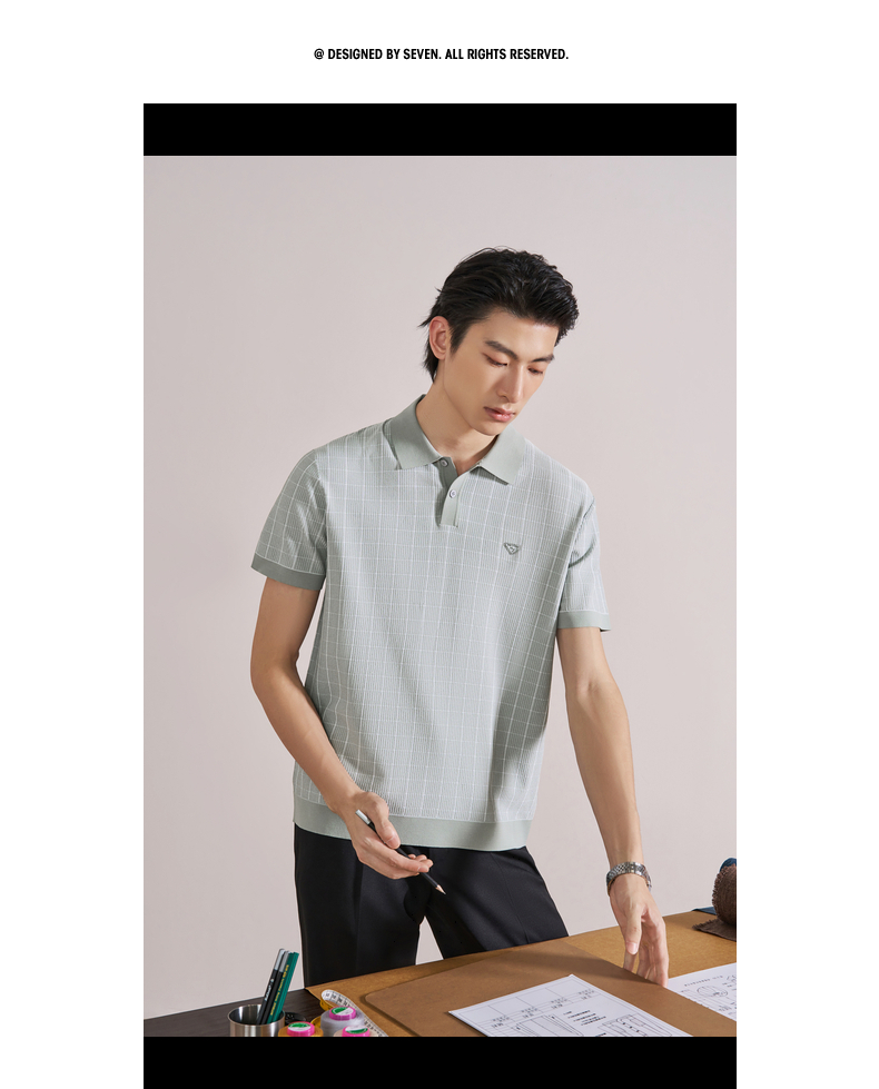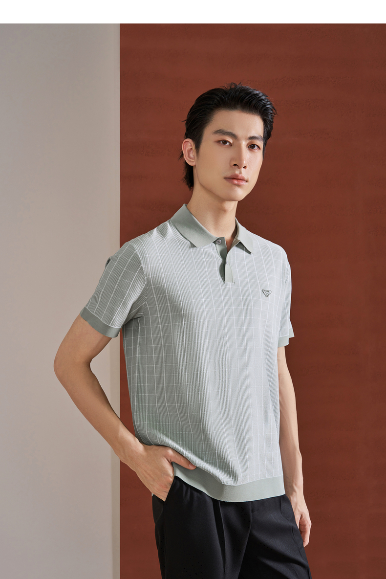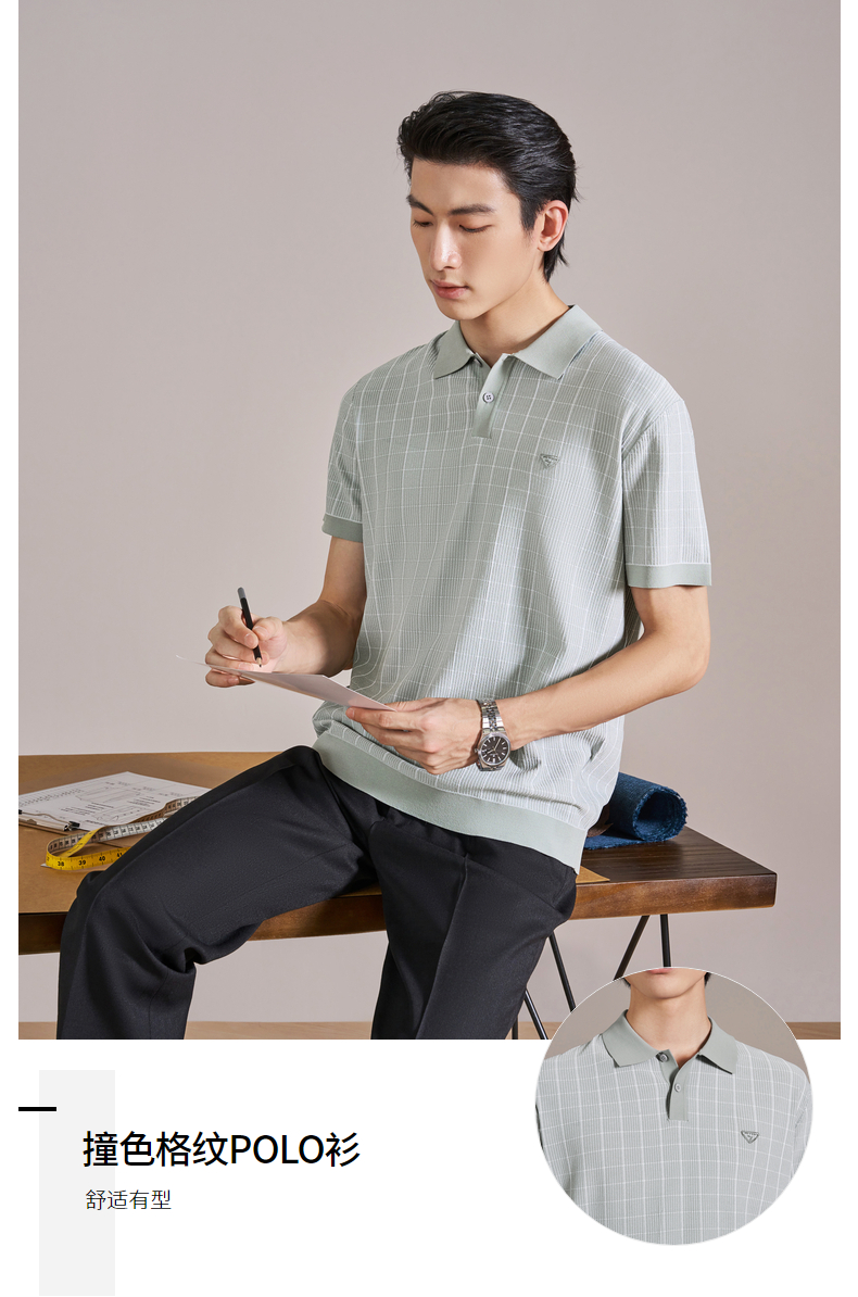 【伊力特/格子提花】柒牌男装26夏上新短袖POLO衫舒适商务上衣男 130T70860