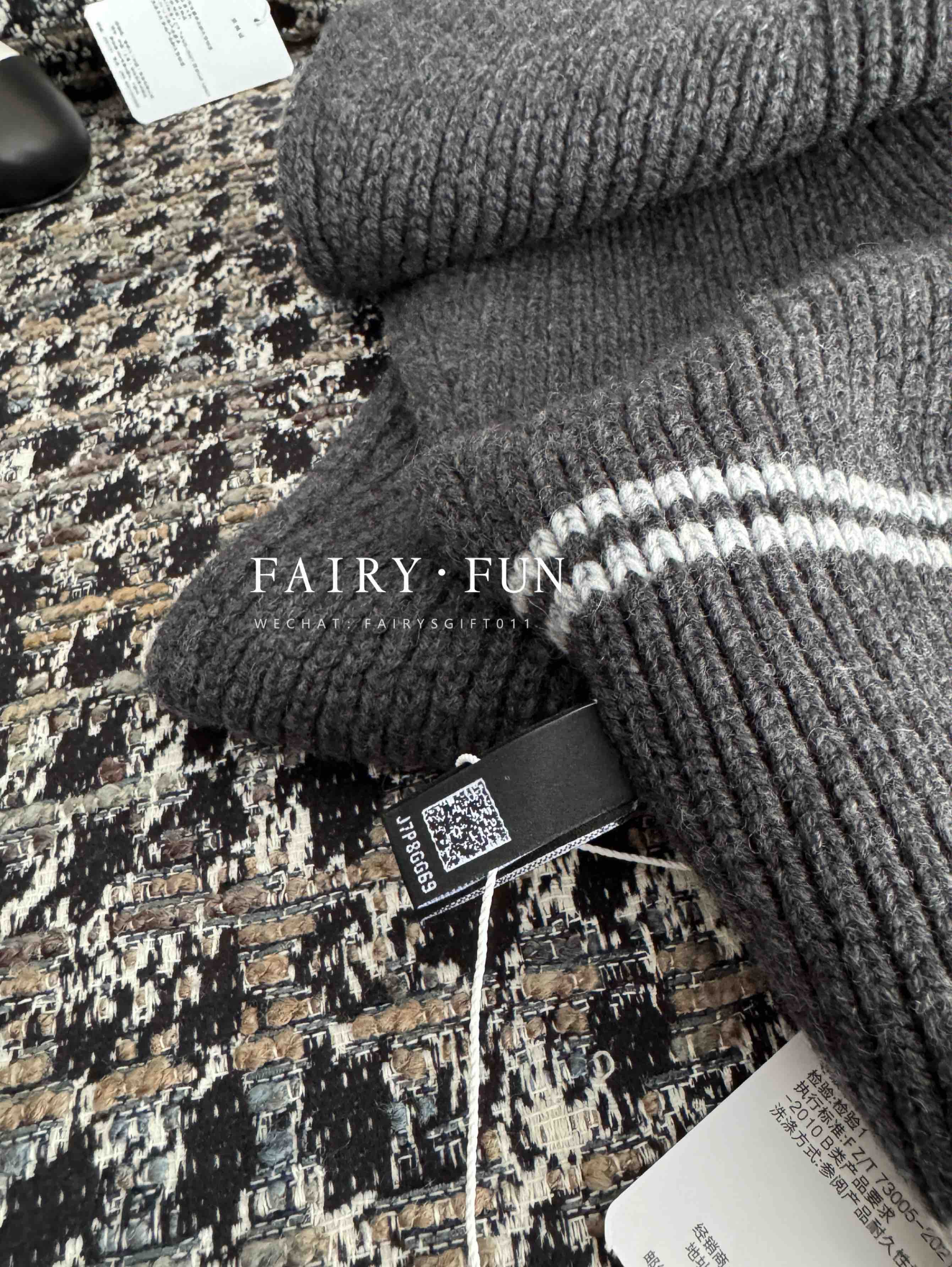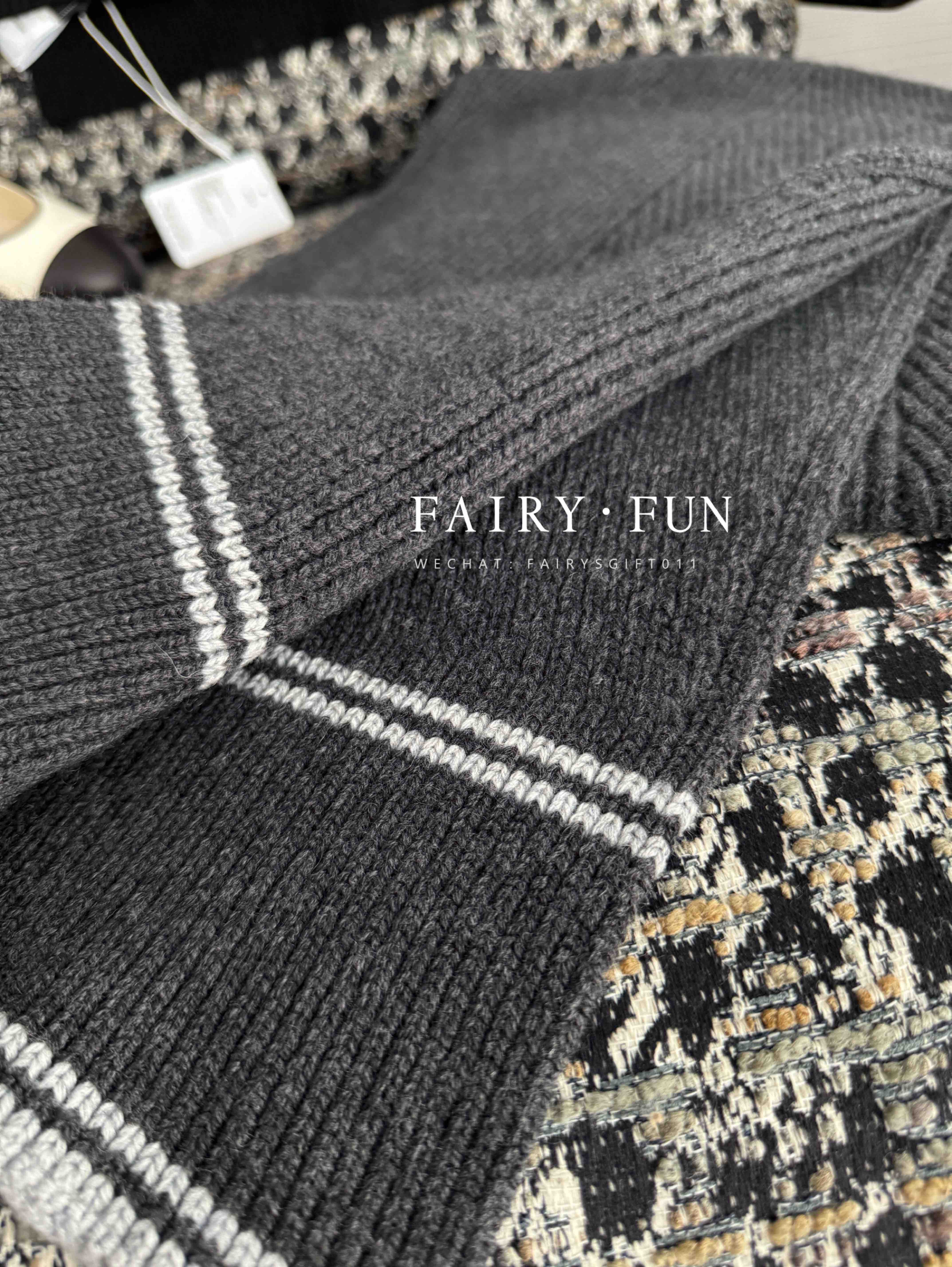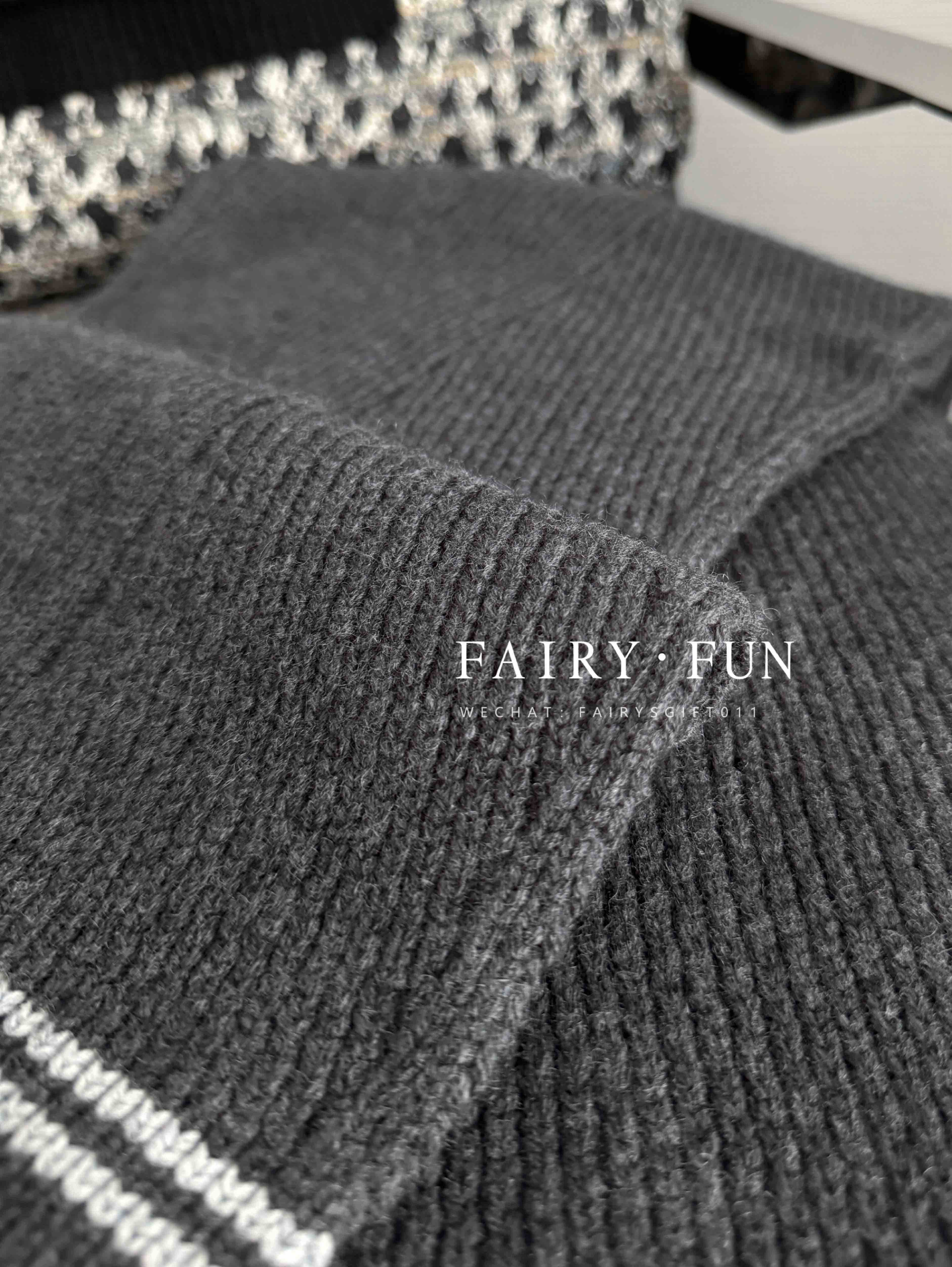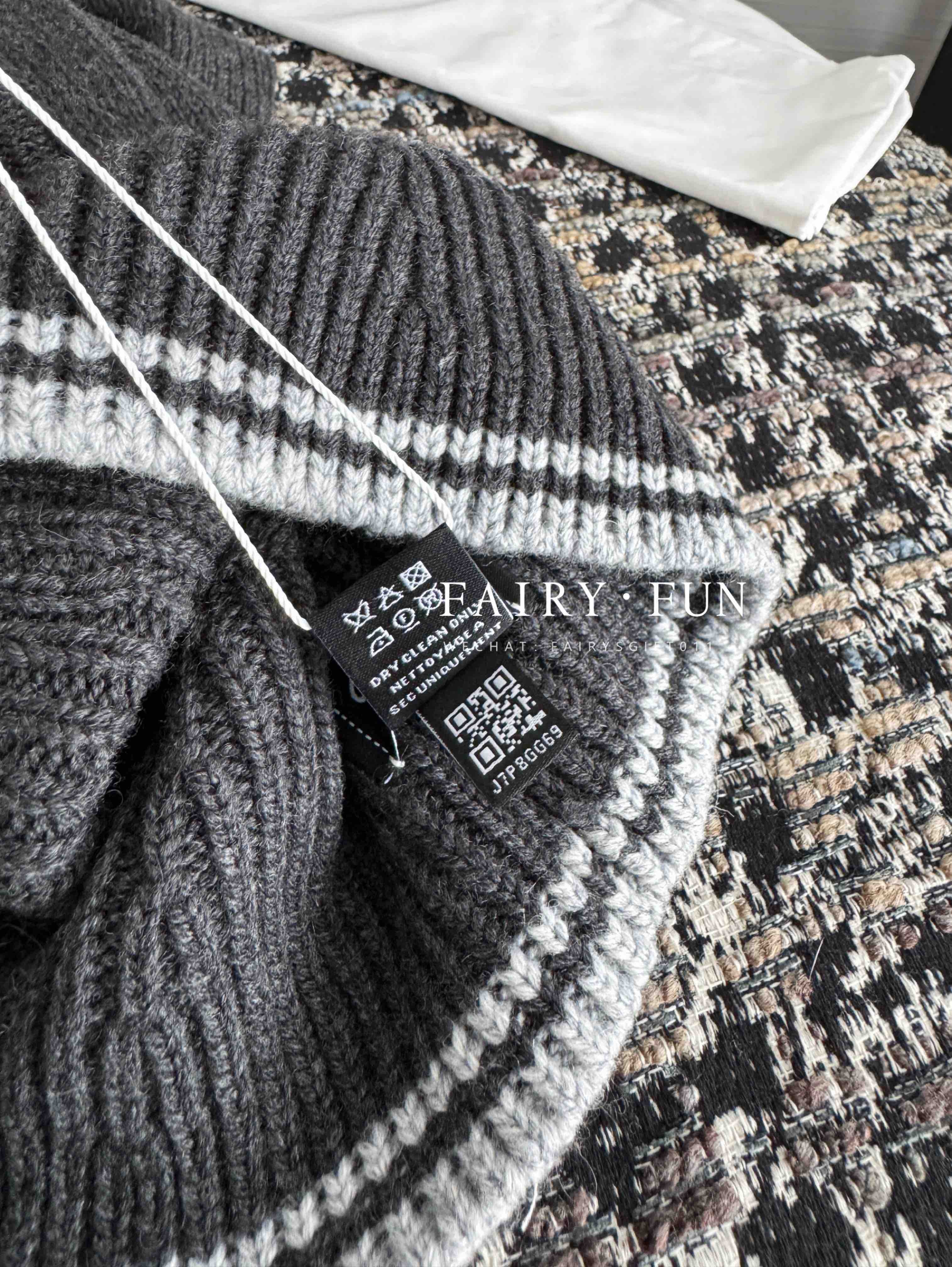 MIU-S 棕色菱格羊绒Polo.