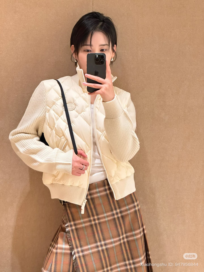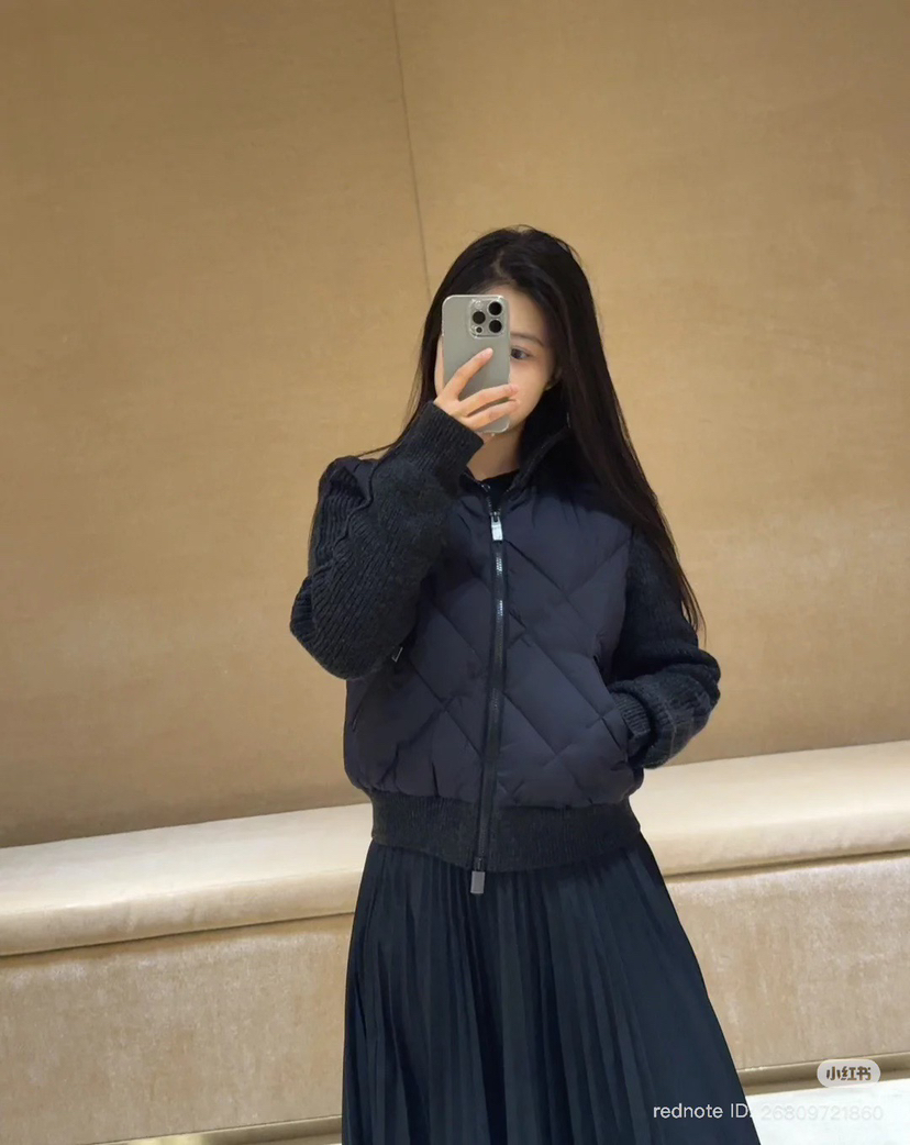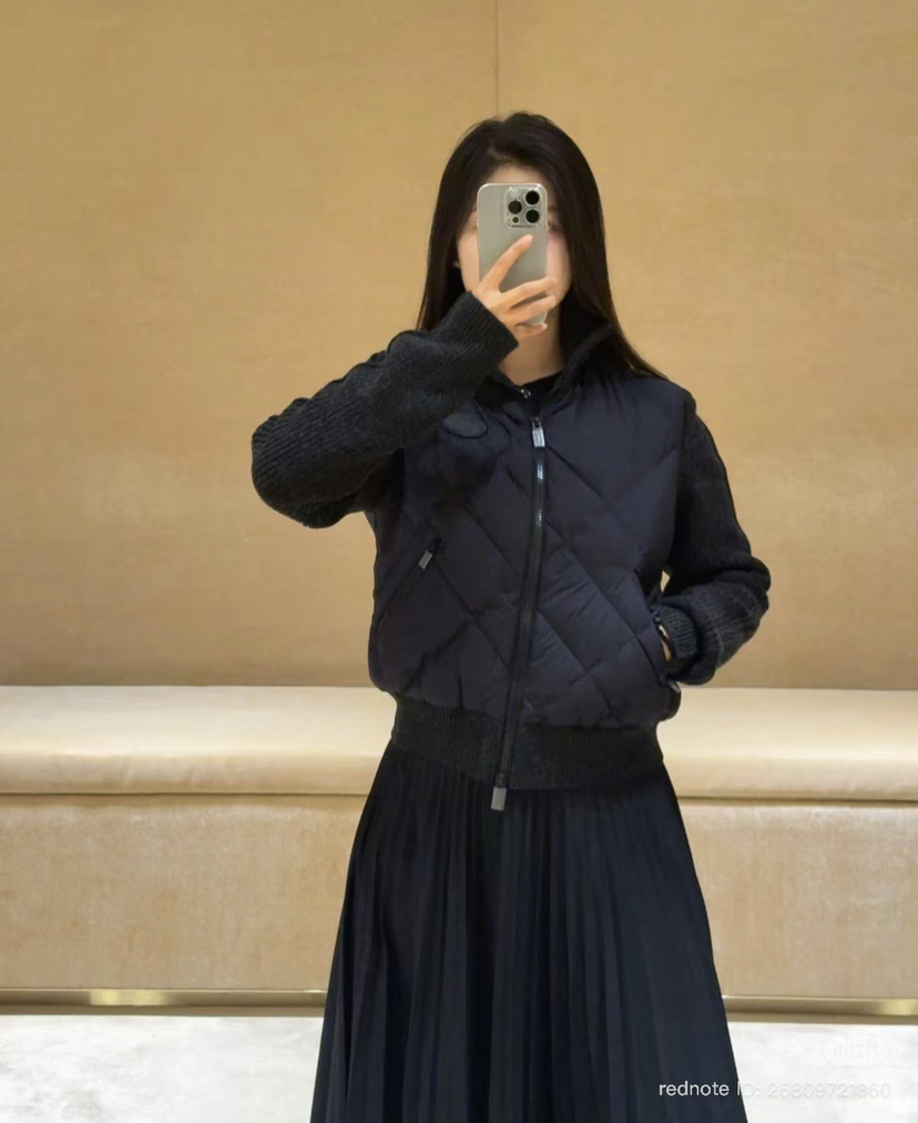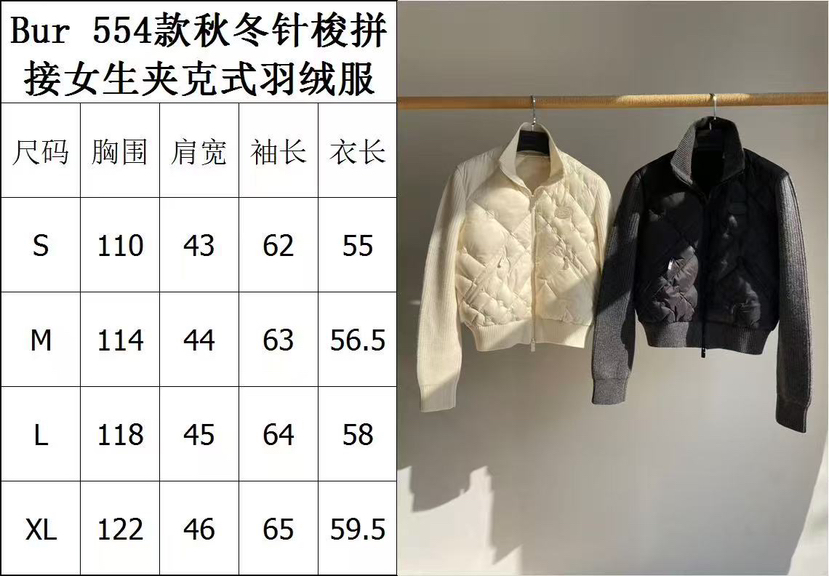 129-4 渠道圆正 BB秋冬针梭拼接女生夹克式羽绒服 167/138我穿L