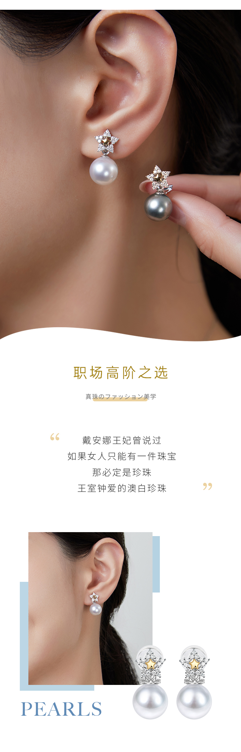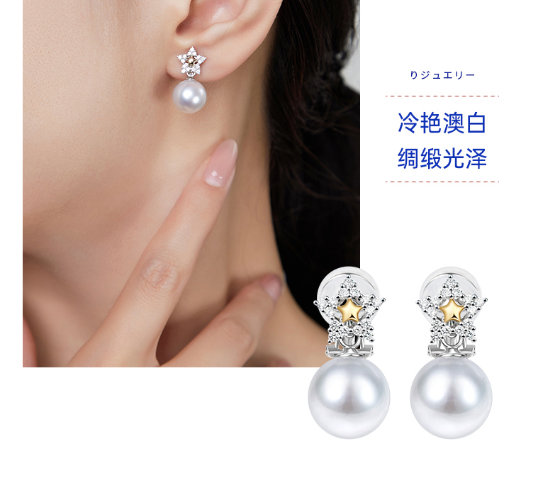 【天猫同款】悦甄18k金澳白珍珠钻石耳夹 戴妃耳夹