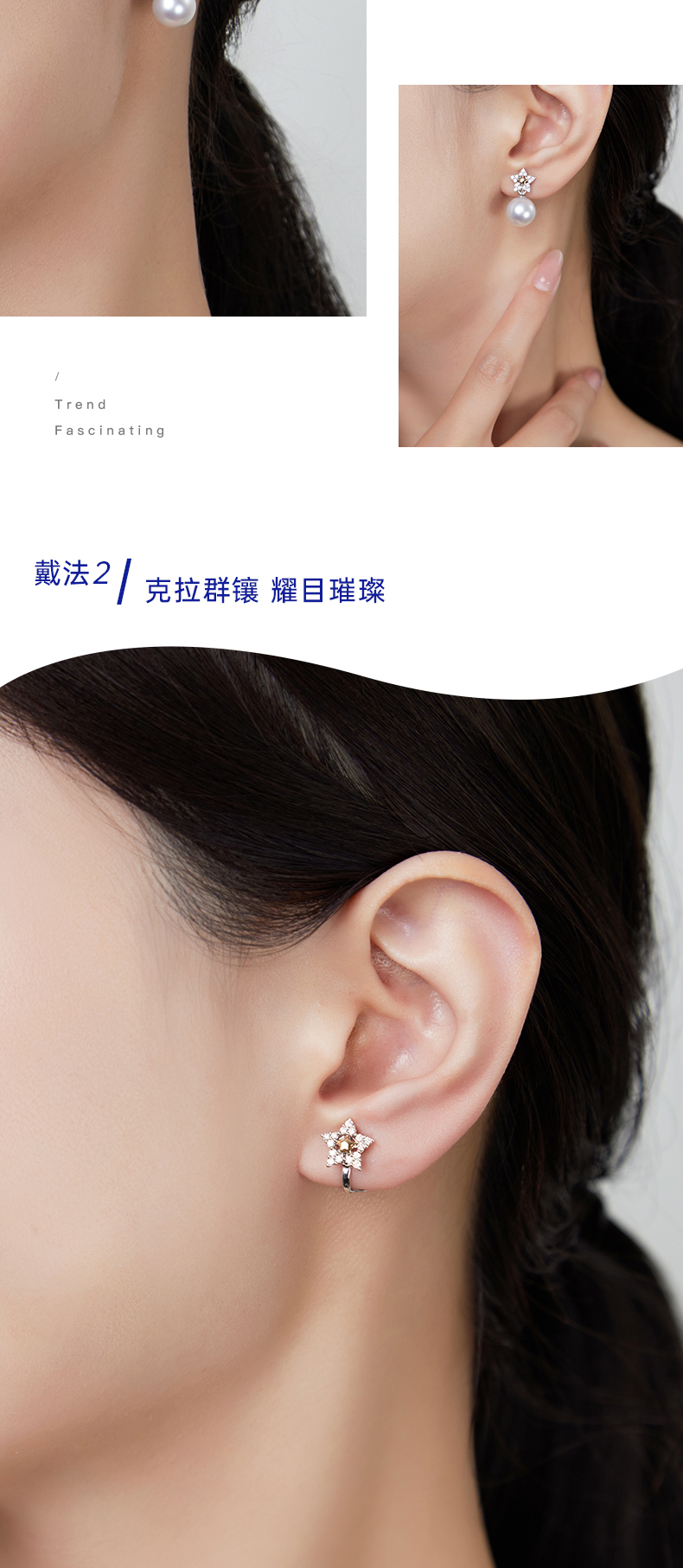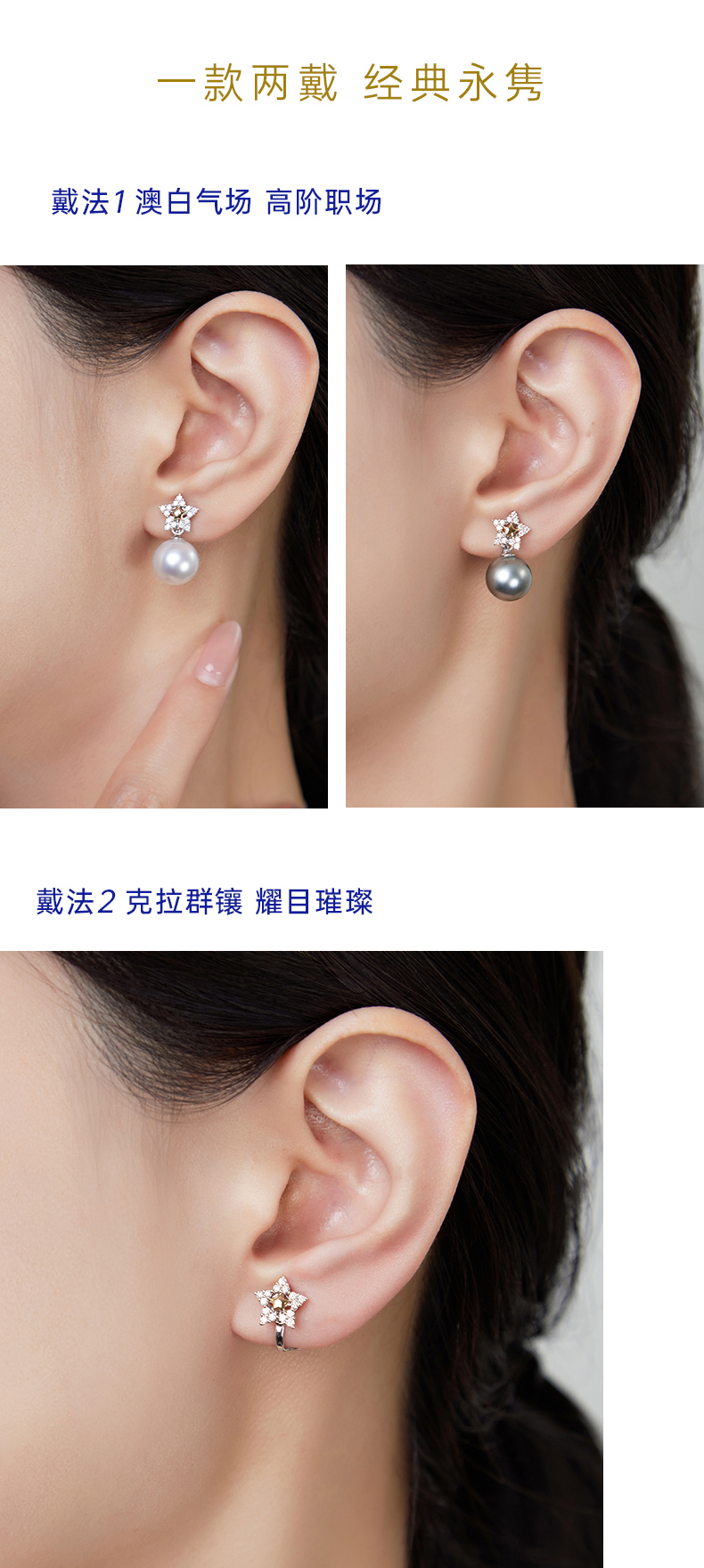 【天猫同款】18k金两戴款钻石珍珠耳夹 星愿