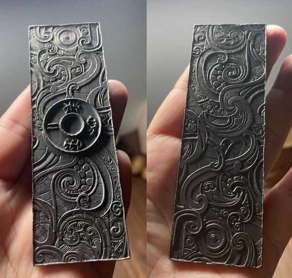 纹理分为三层,周身通体蔓枝卷云花纹下