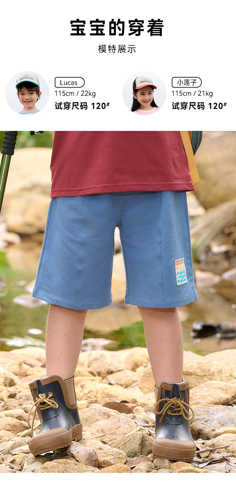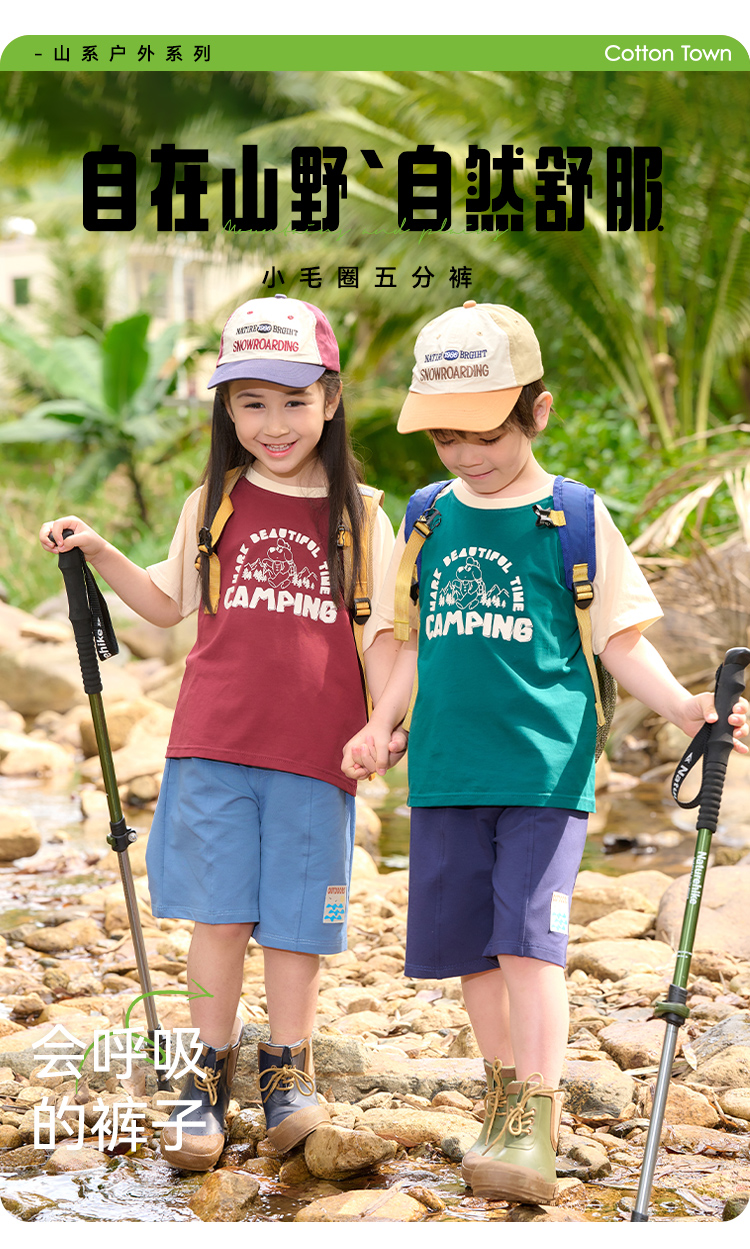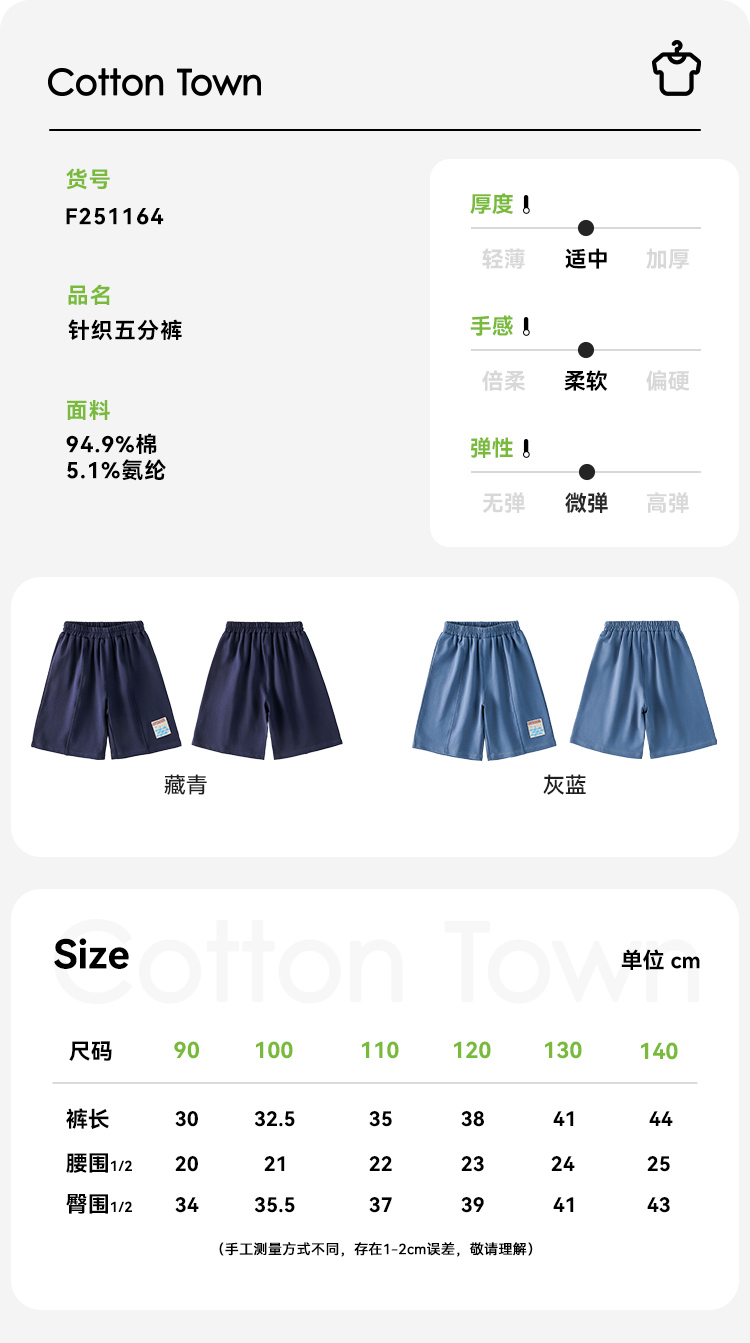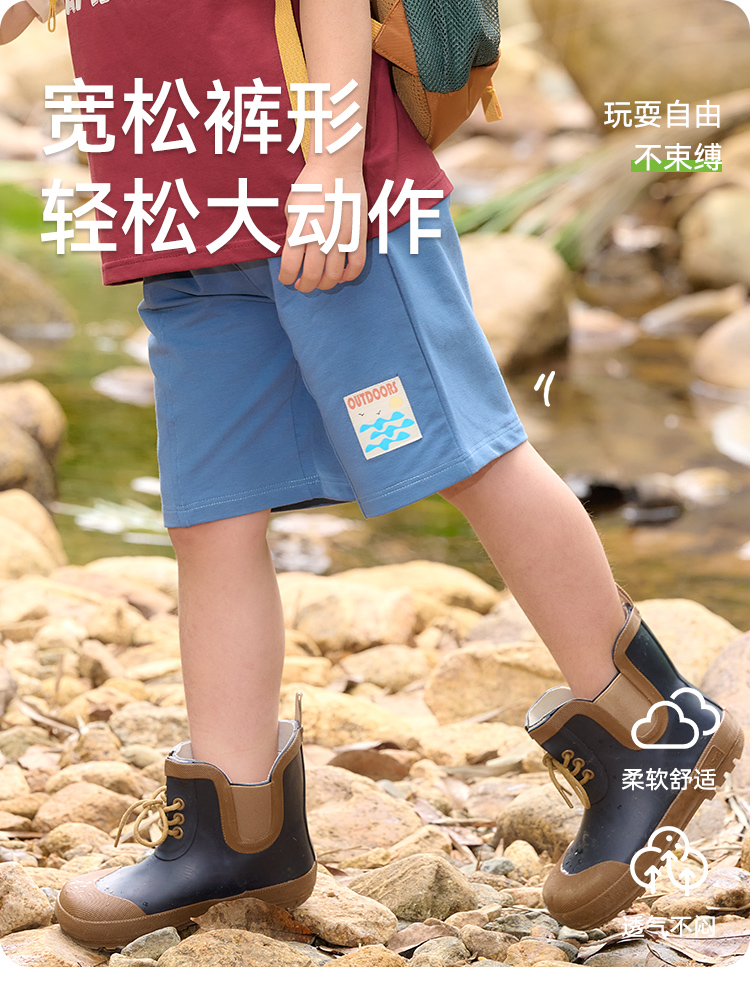 棉花堂2025年夏款会呼吸小毛圈山系织标宽松裤型童装五分裤F251164