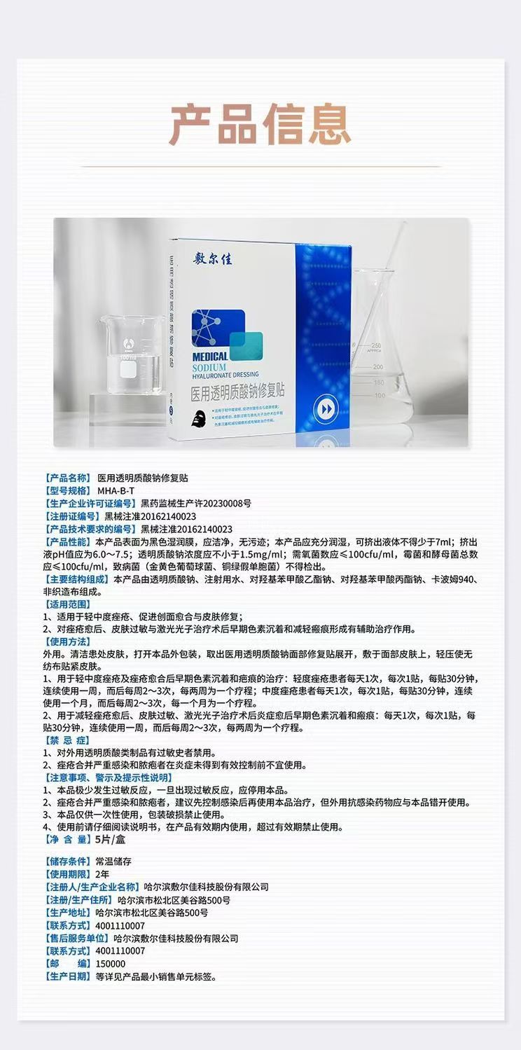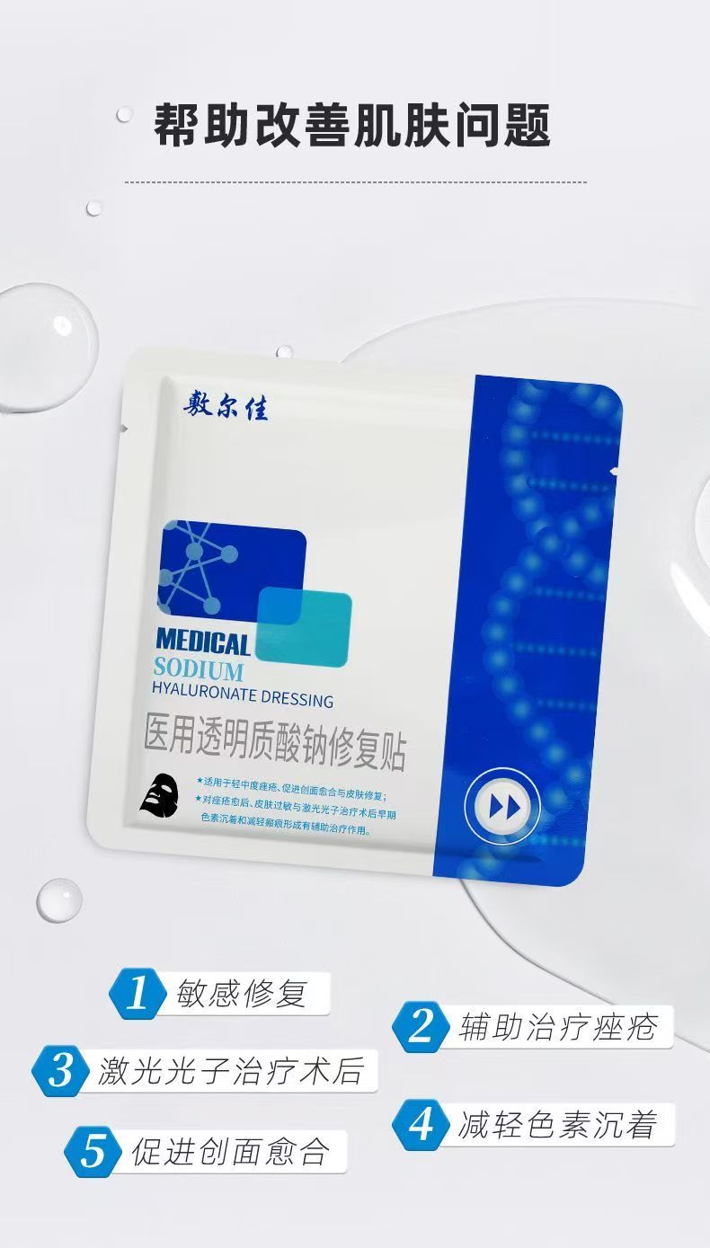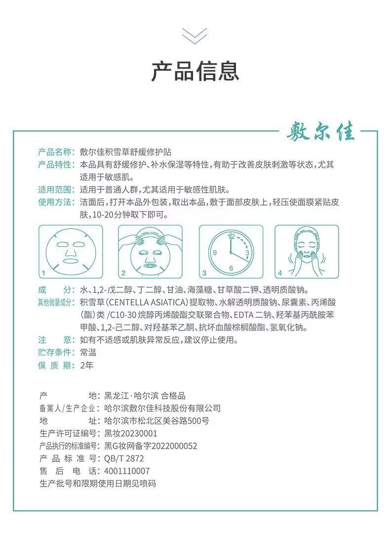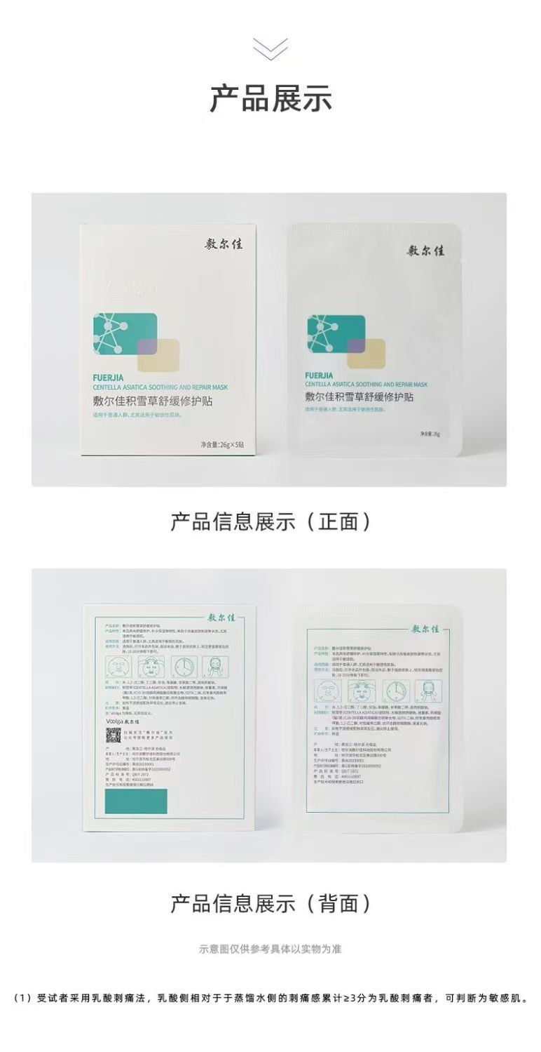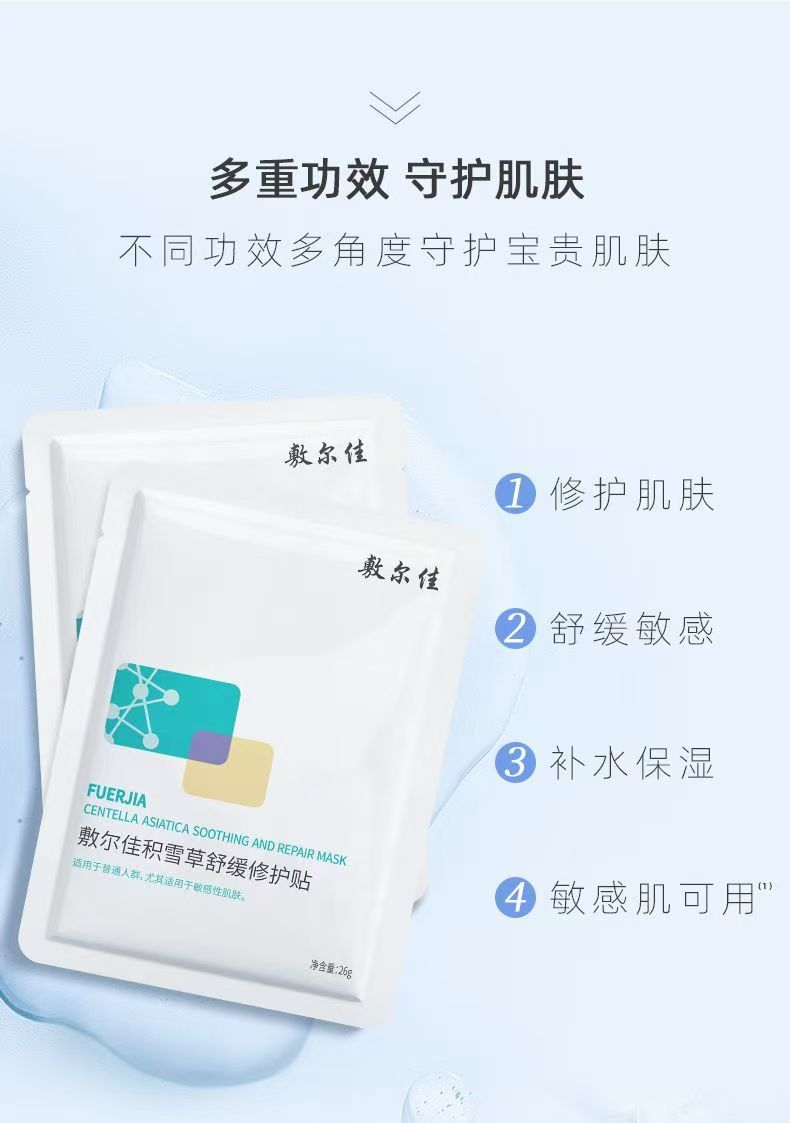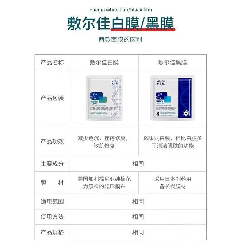 【品牌授权】敷尔佳 医用透明质酸钠修复液补水保湿修复 黑膜 白膜 虾青素膜 积雪草膜 绿膜 商品图6
