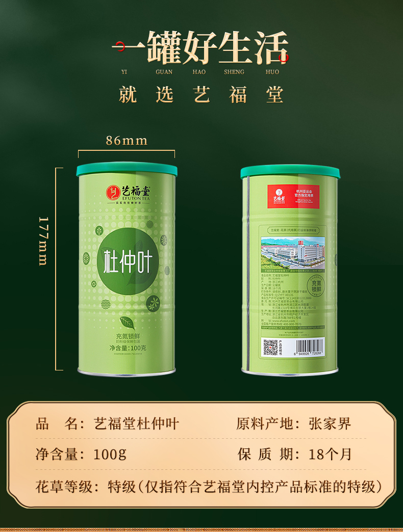 艺福堂杜仲叶100g/罐(氮气罐)