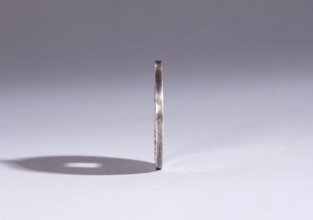 930矿银制作,直径约24.8毫米,厚约1.7毫米,孔径约5.5毫米,重约5克(手工作品有少许误差,请知晓)。