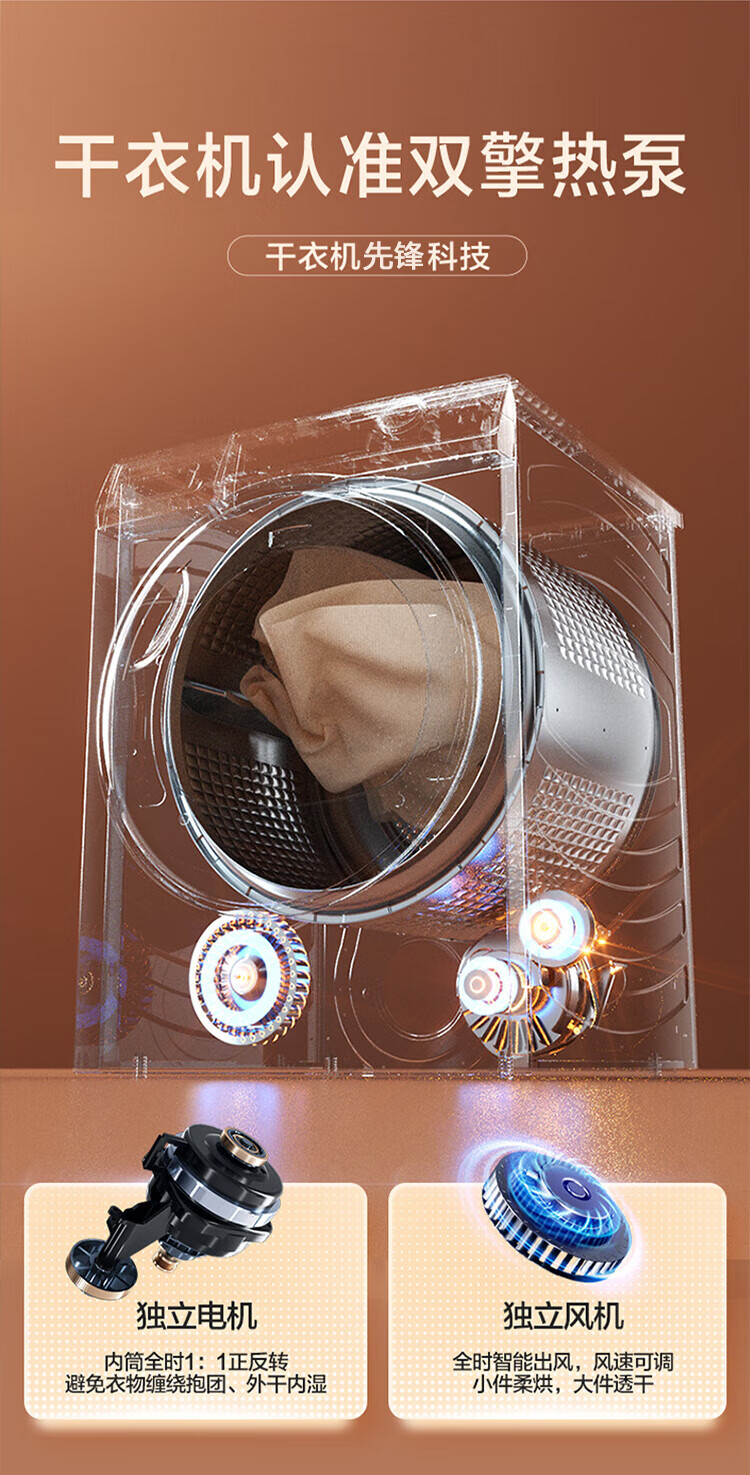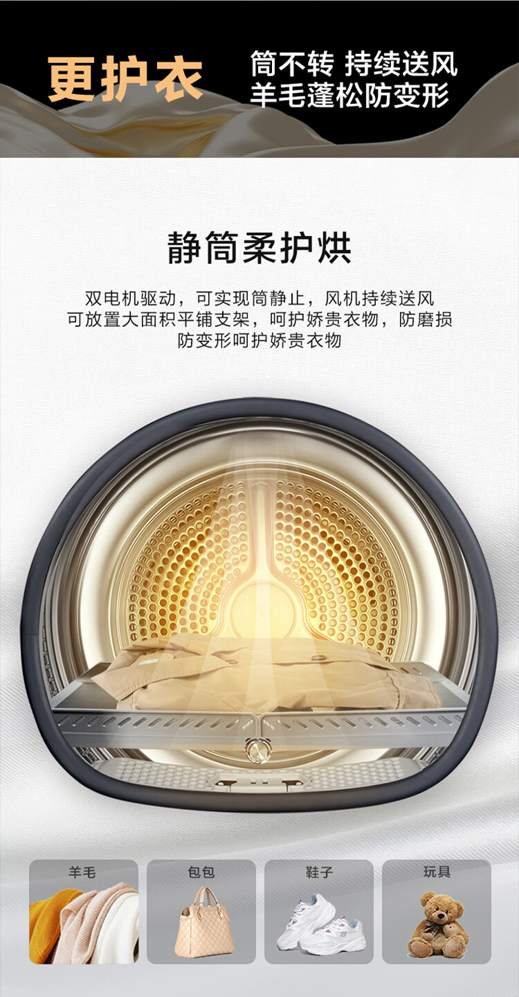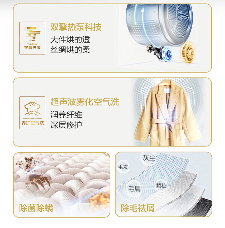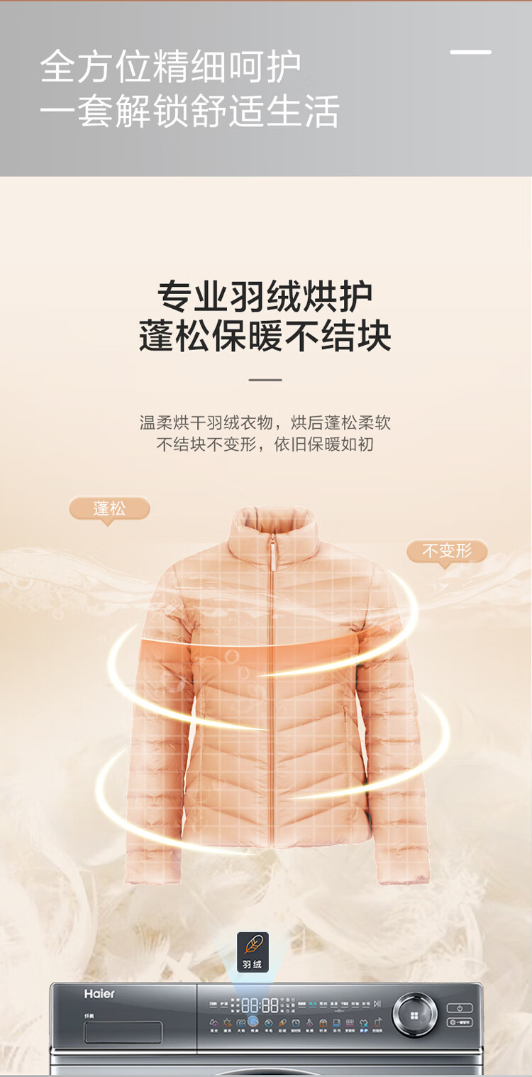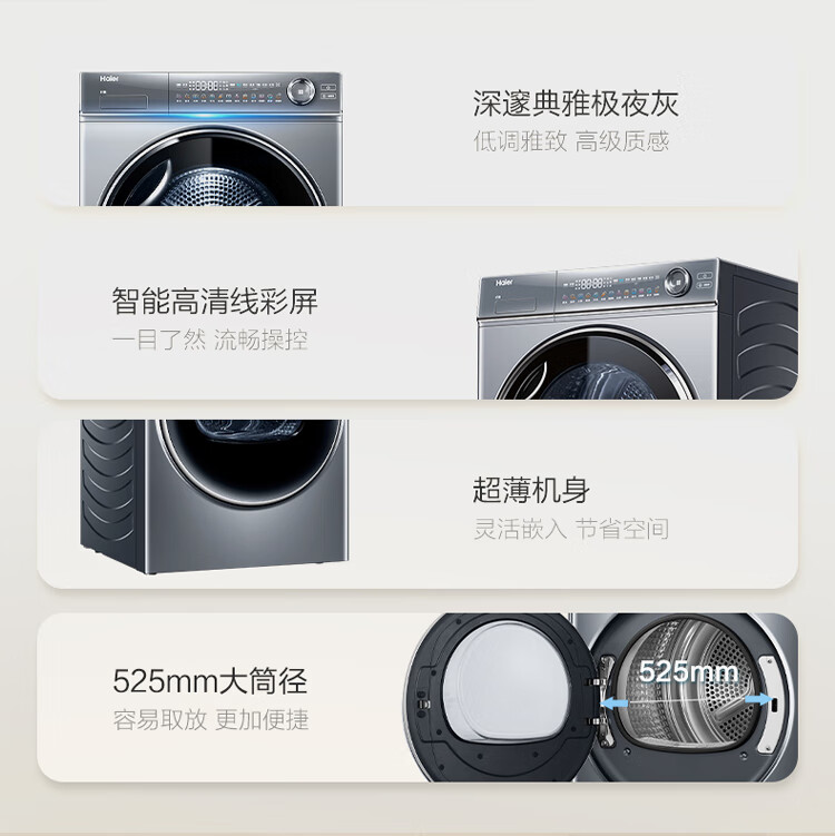 海尔(Haier)烘干机纤美平嵌双擎热泵式超声波雾化空气洗10公斤大容量滚筒家用衣物干衣机 HGY100-F376U1
