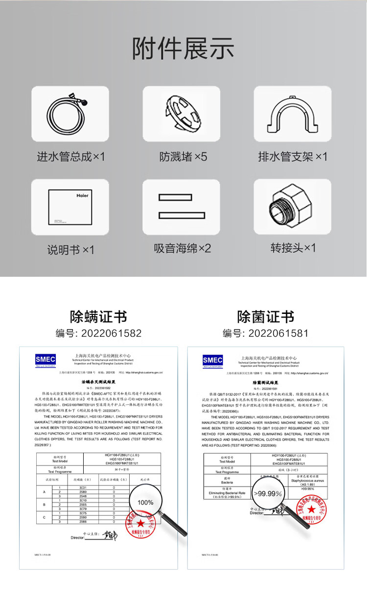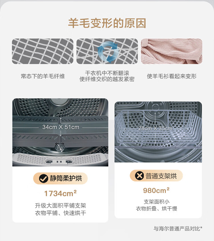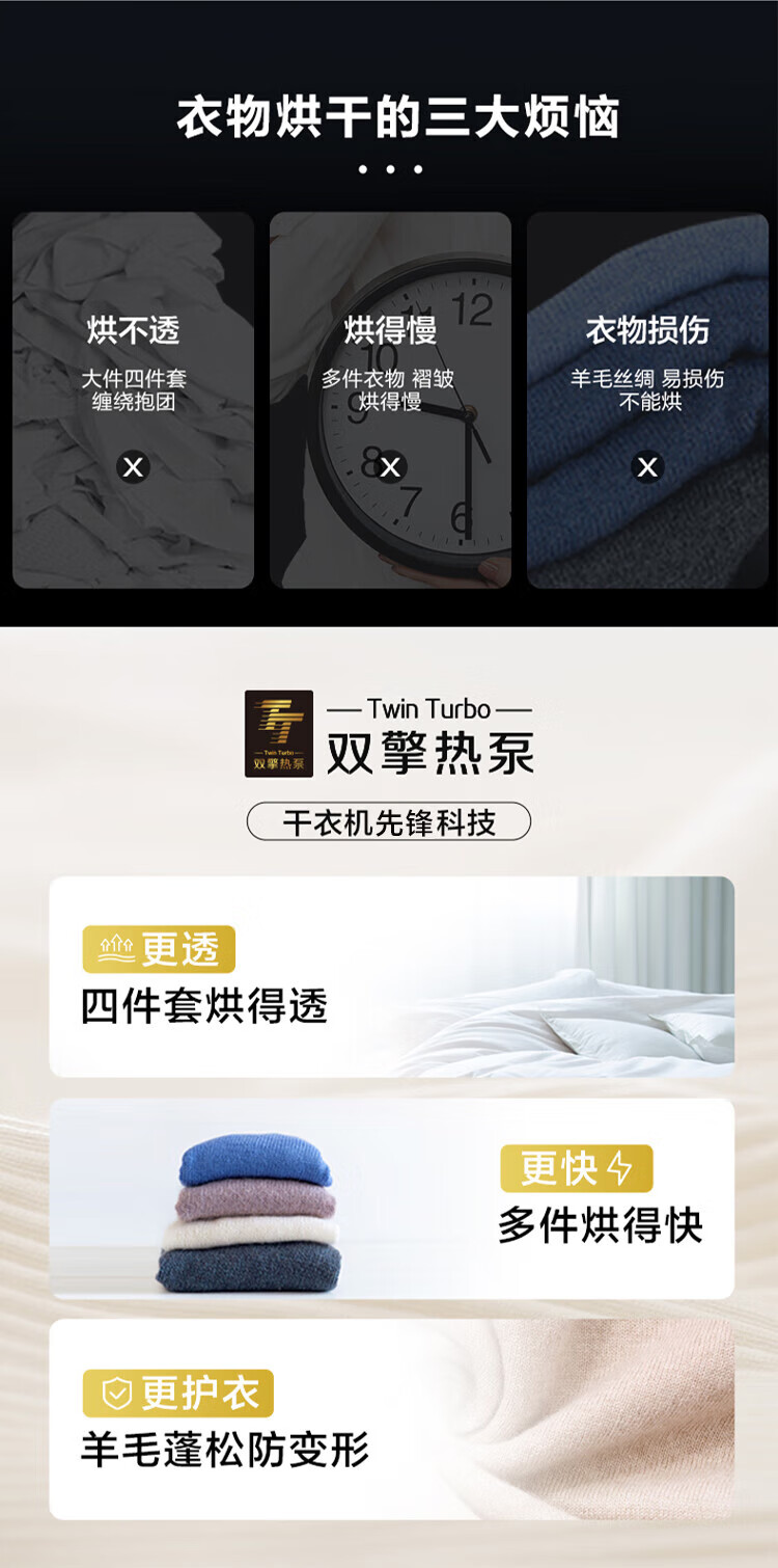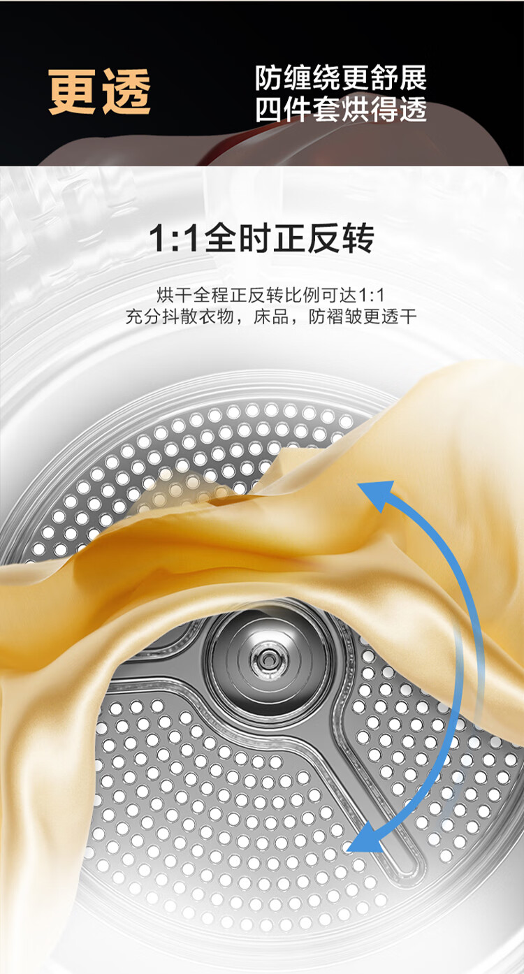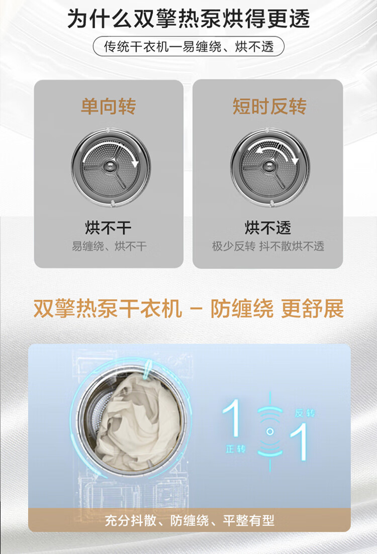 海尔(Haier)烘干机纤美平嵌双擎热泵式超声波雾化空气洗10公斤大容量滚筒家用衣物干衣机 HGY100-F376U1
