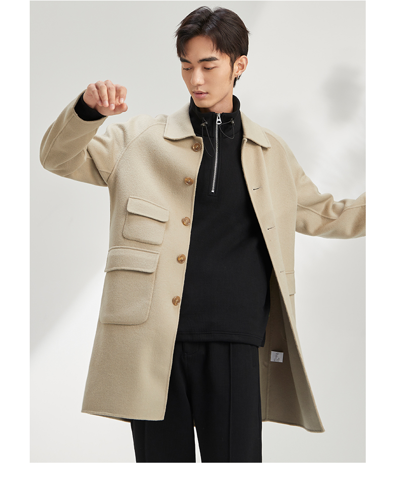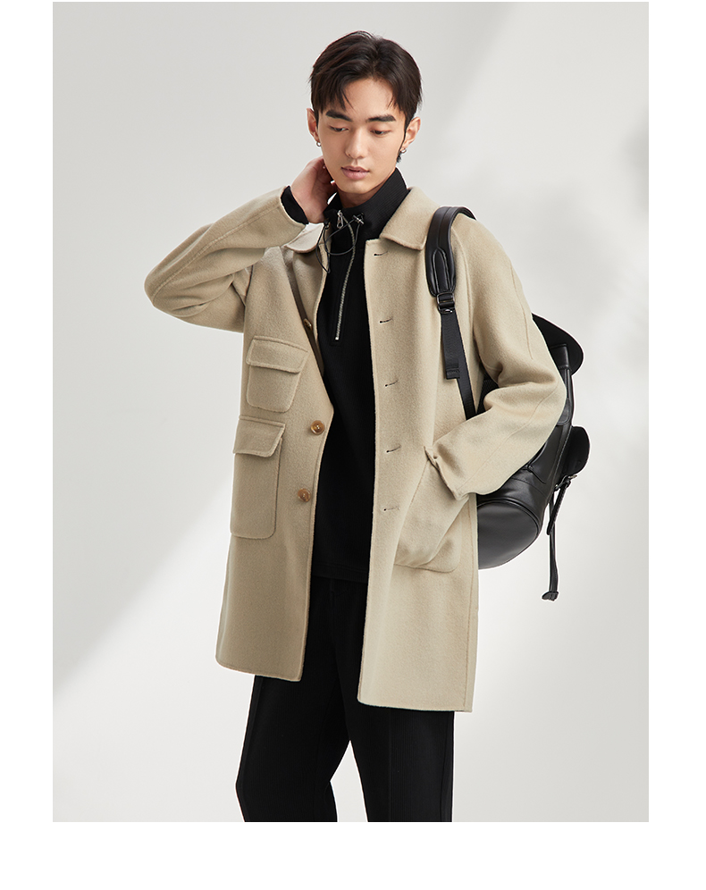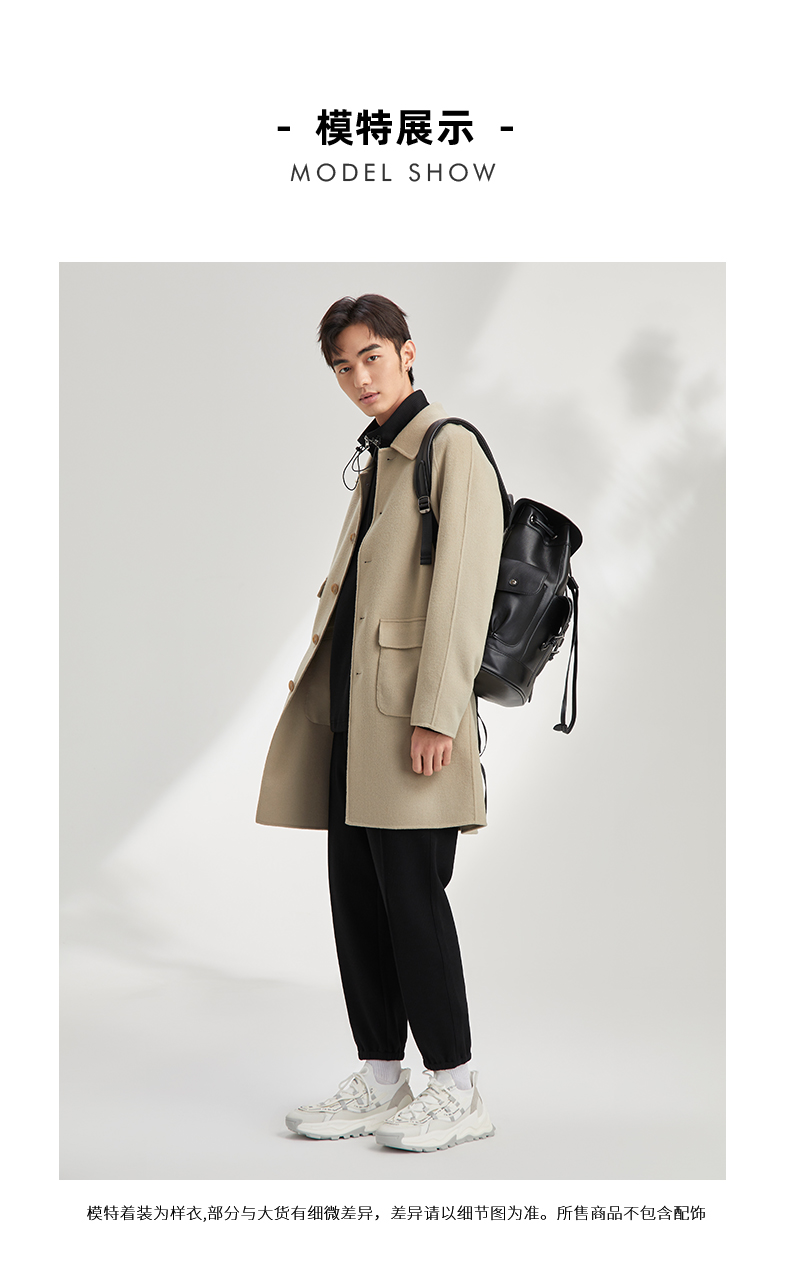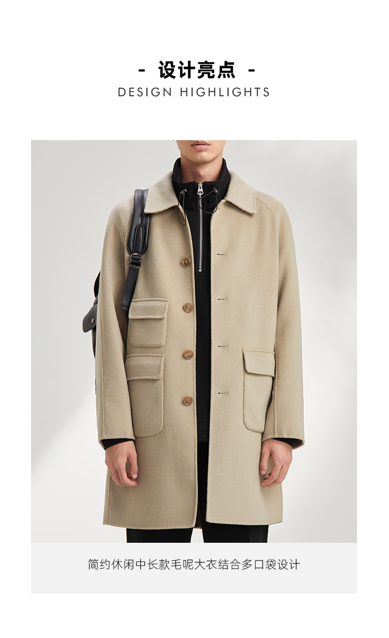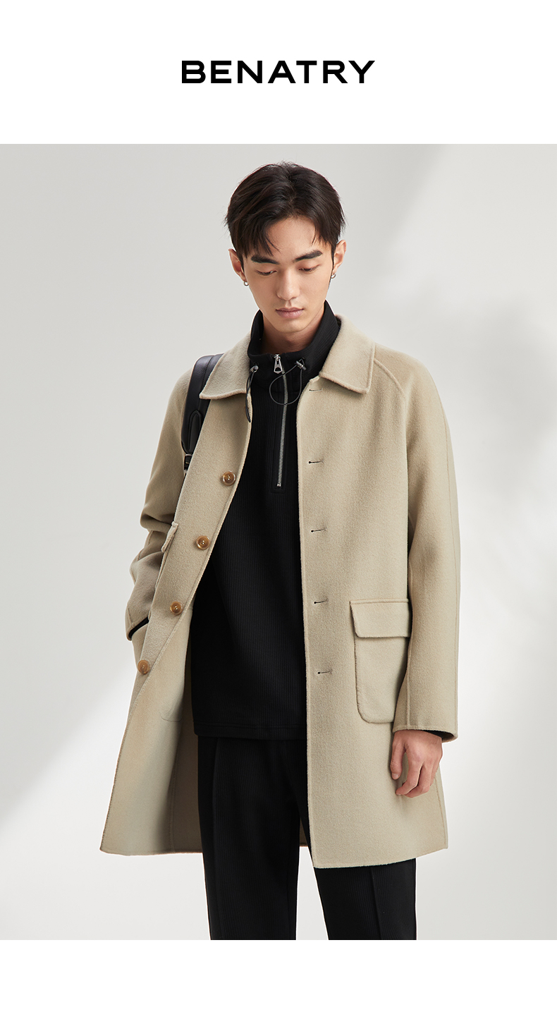 贝纳川休闲通勤翻领男士呢大衣外套ECY328002724