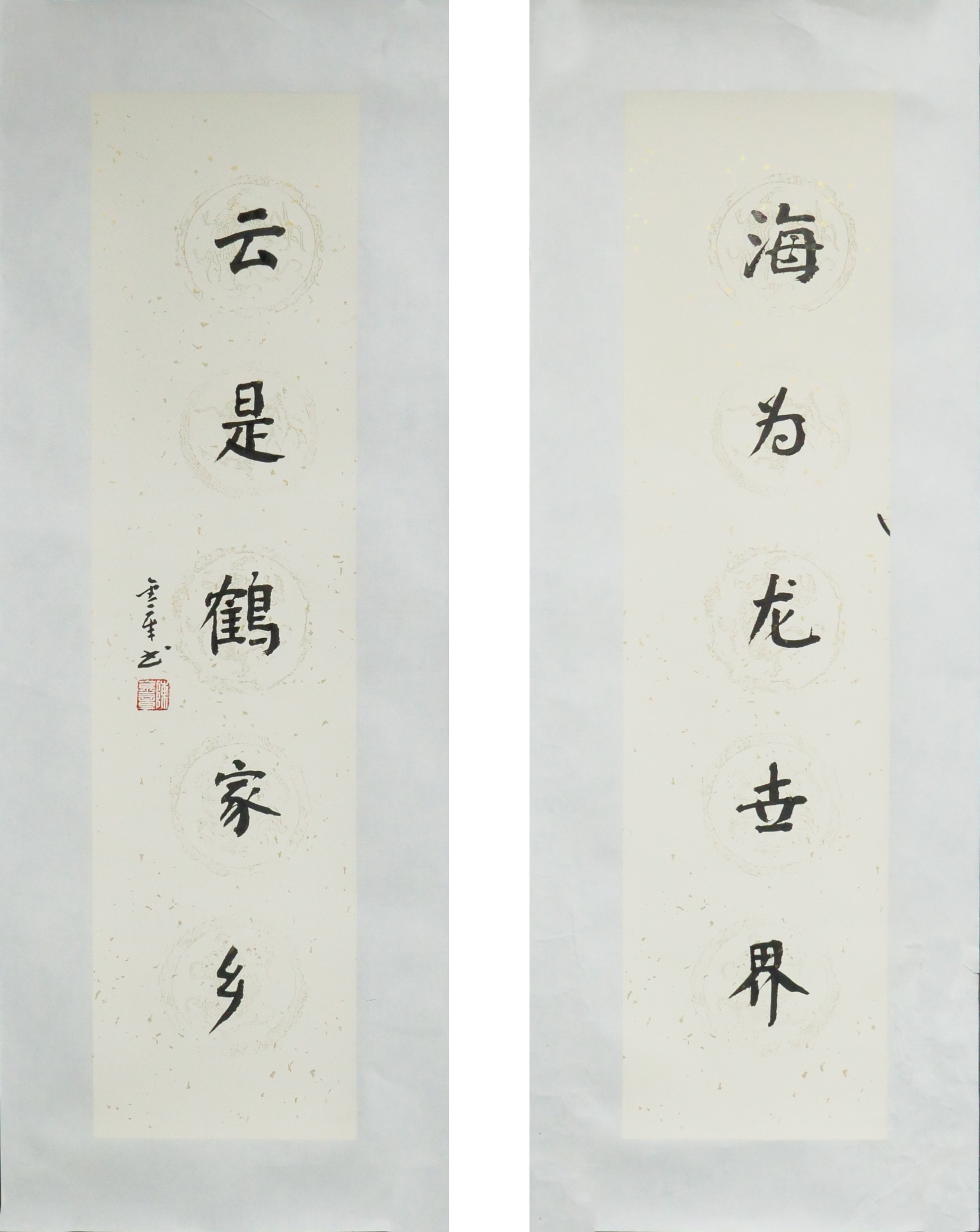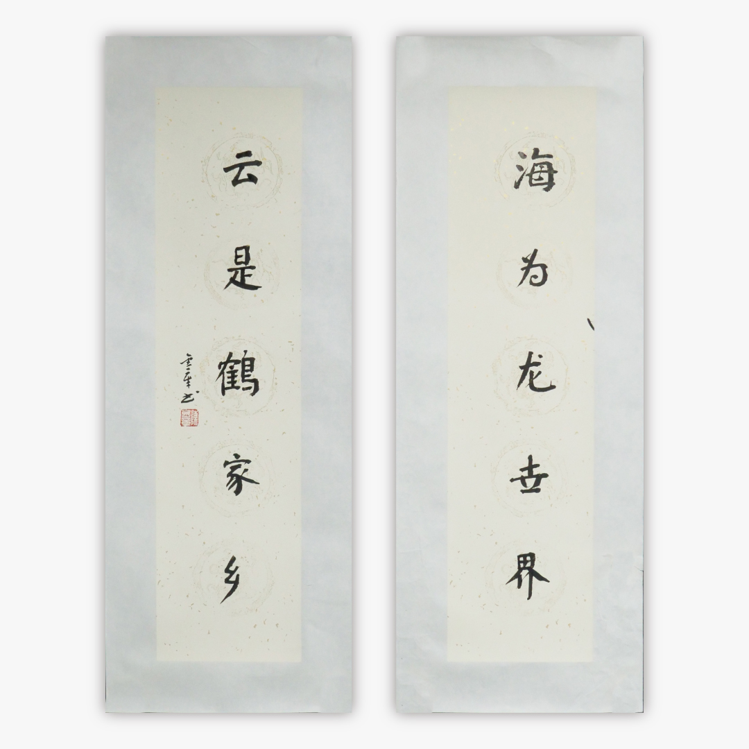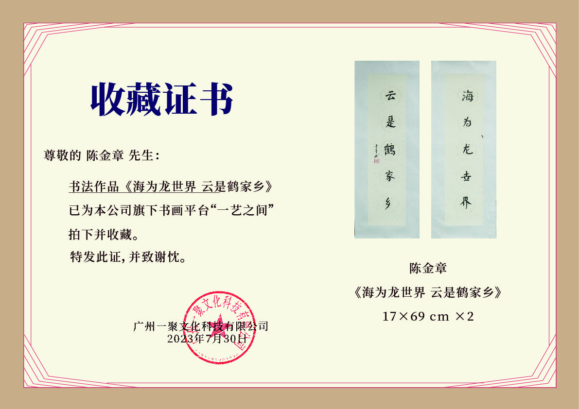 陈金章《海为龙世界 云是鹤家乡》书法原作67CM*17CM手写宣纸对联