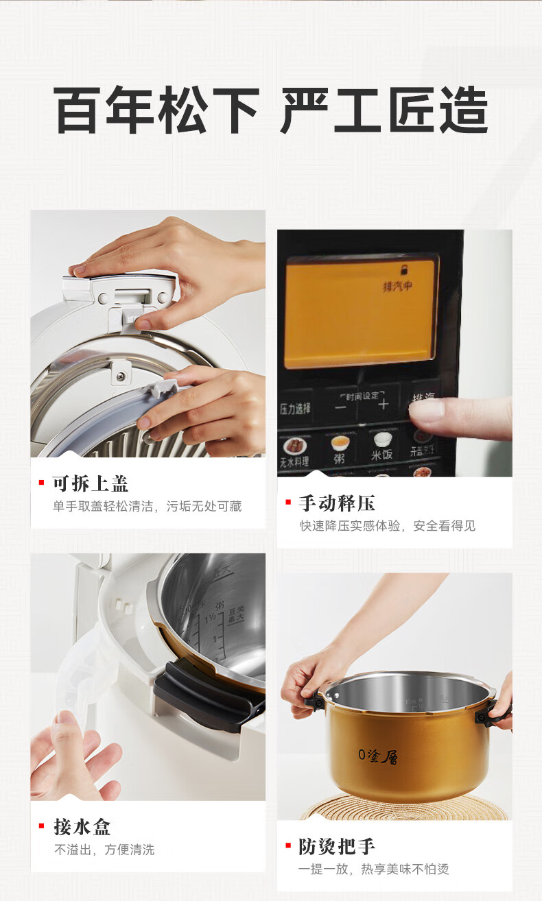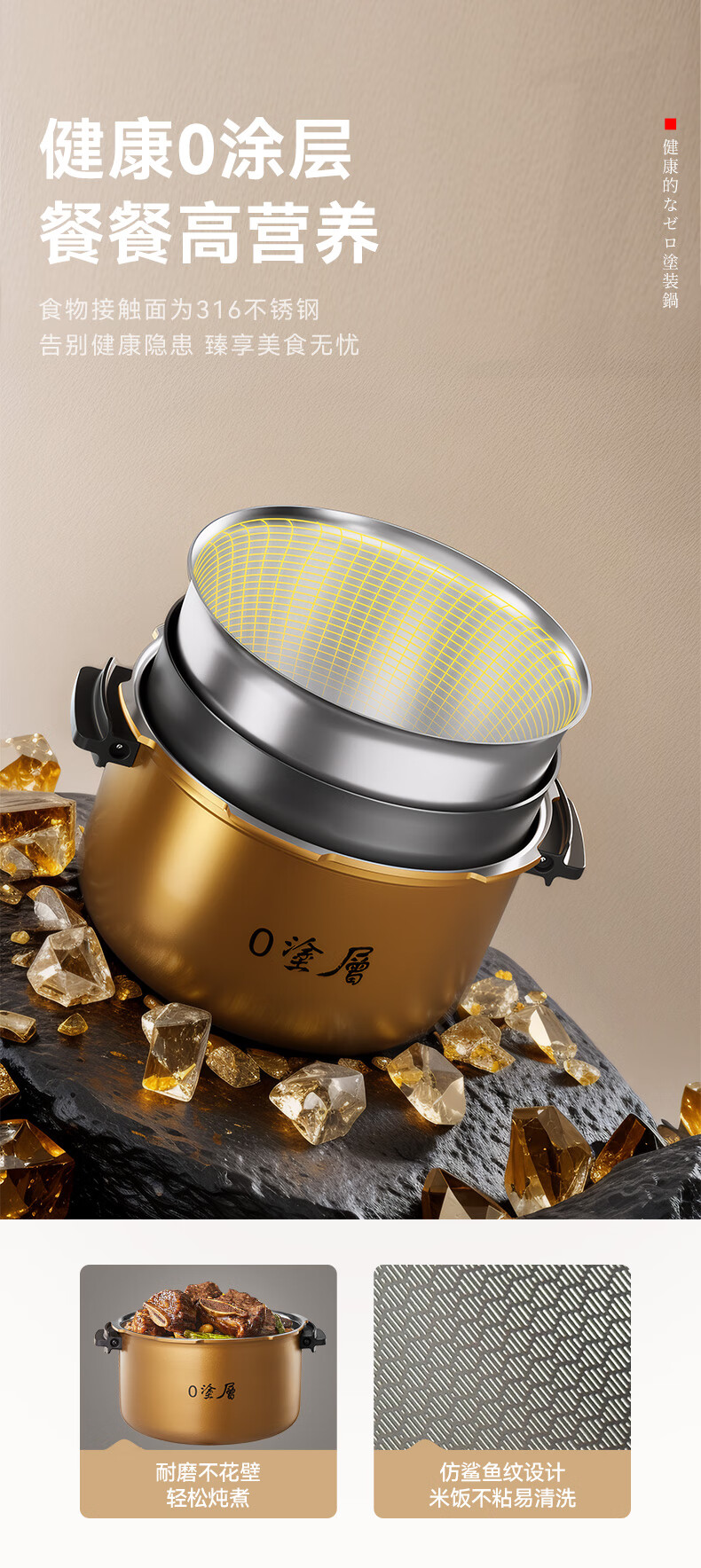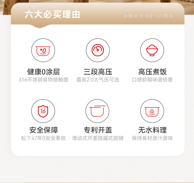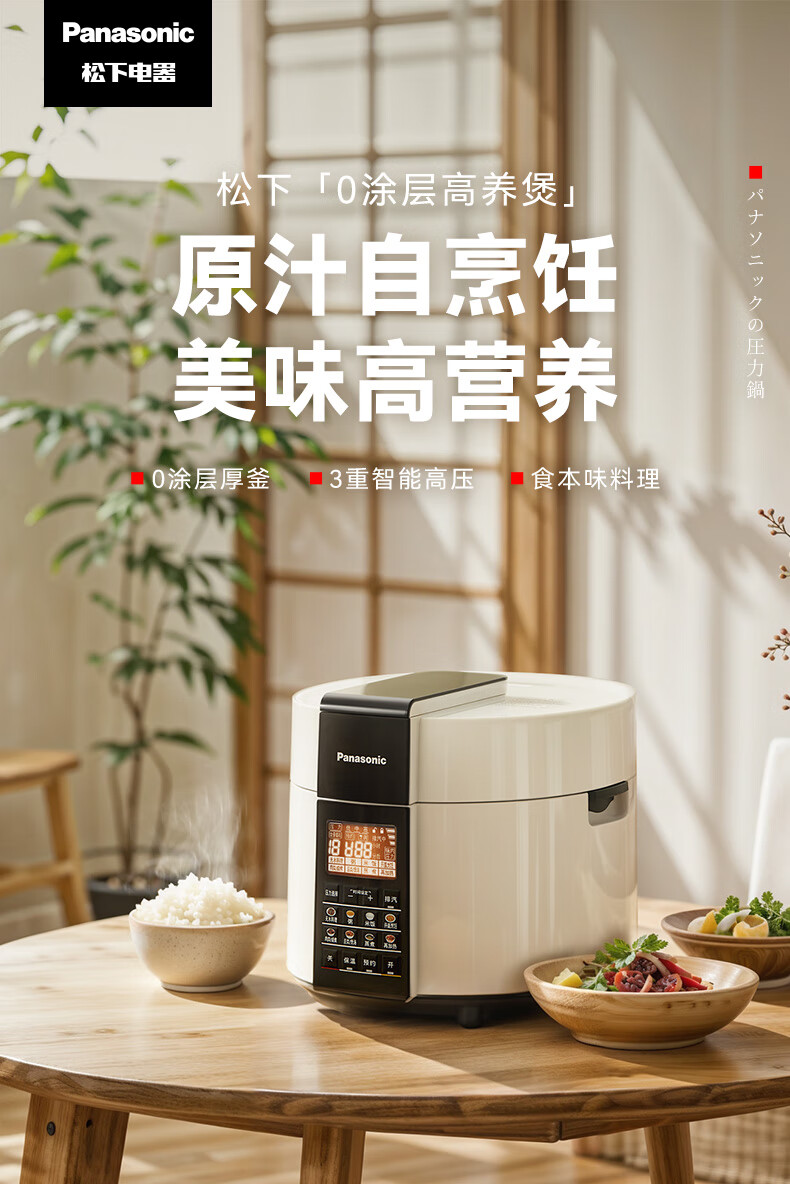松下(Panasonic)电压力锅0涂层316不锈钢内胆高压锅5L家用智能电饭煲2.0倍高压煲汤煮饭 PSS501