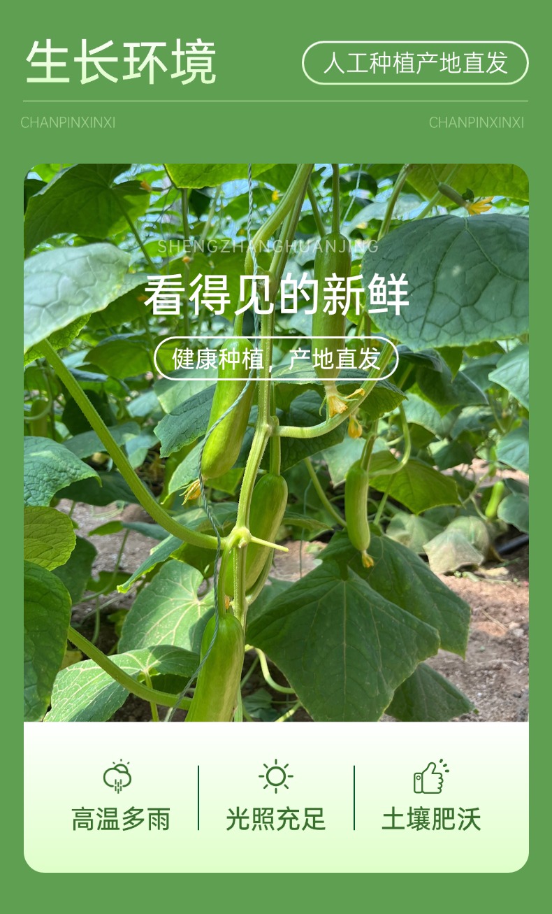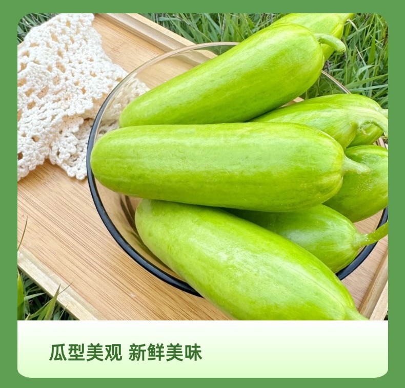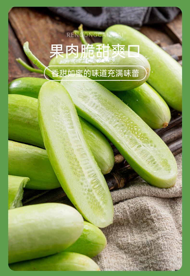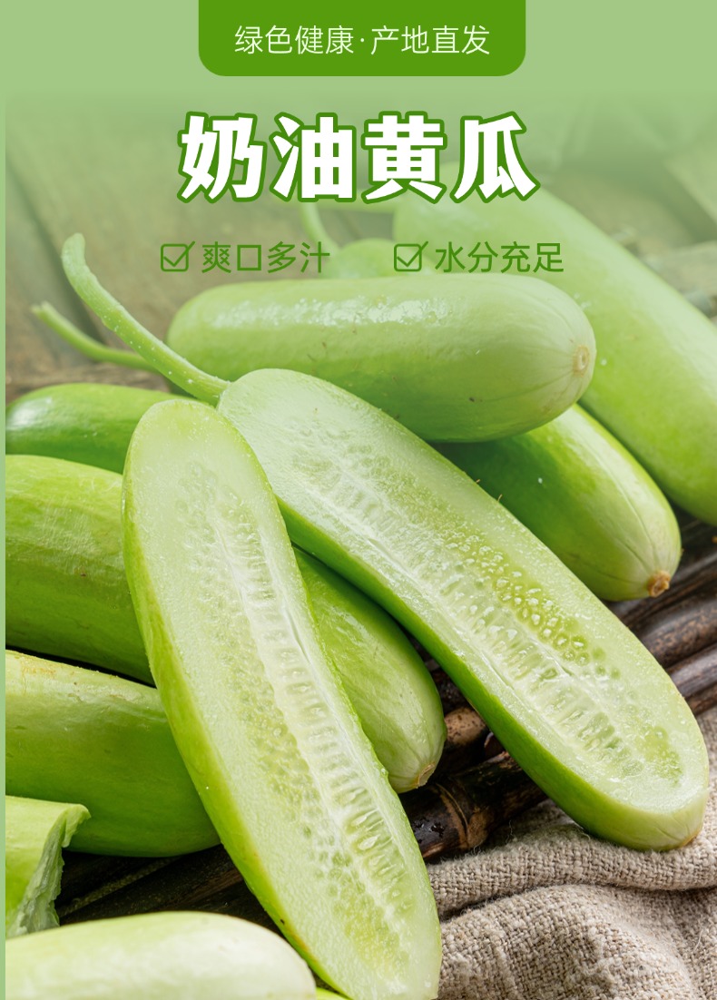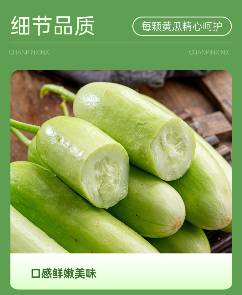 【产品亮点】带有清新自然的黄瓜香,表皮光滑无刺,果肉鲜嫩,质地脆爽,口感清甜