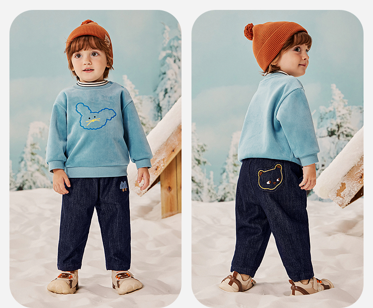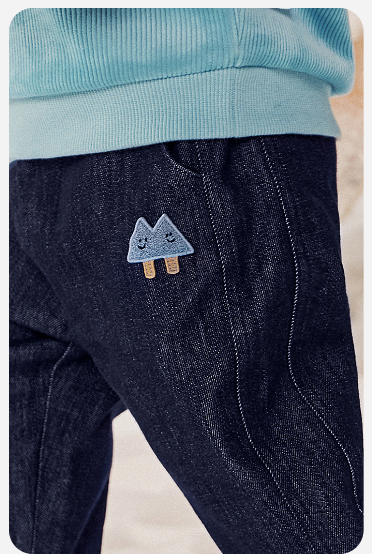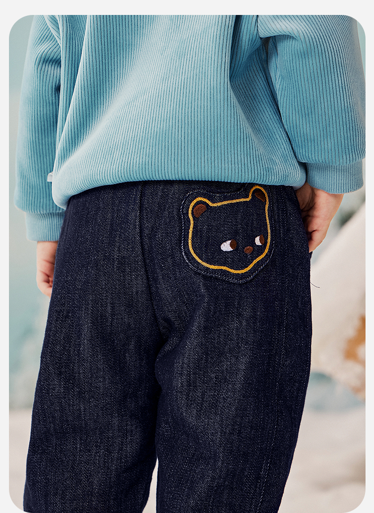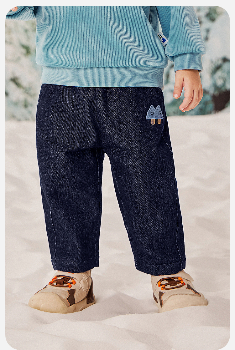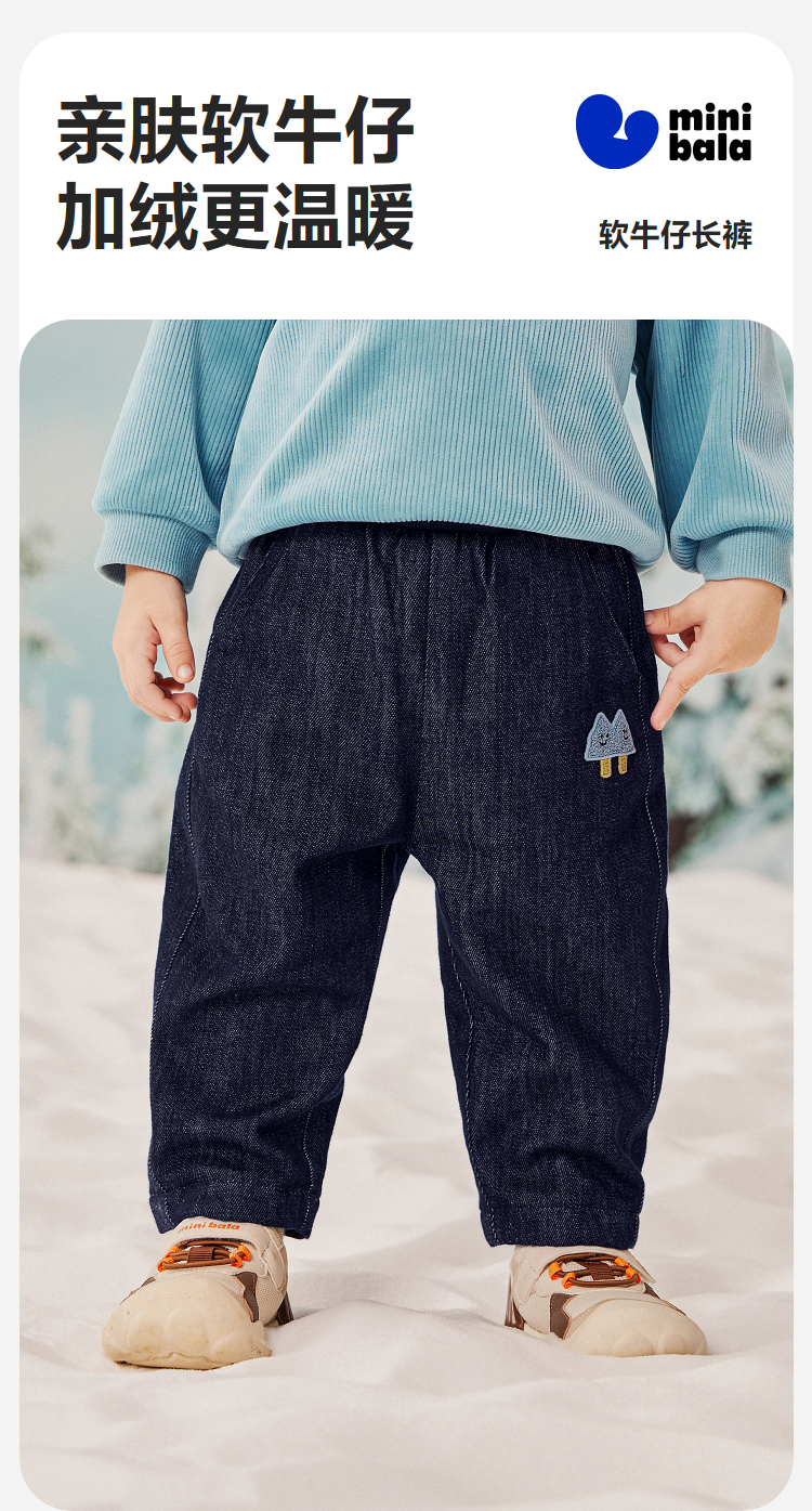 迷你巴拉男童宝宝长裤2025冬新品柔软亲肤保暖内里加绒软牛仔