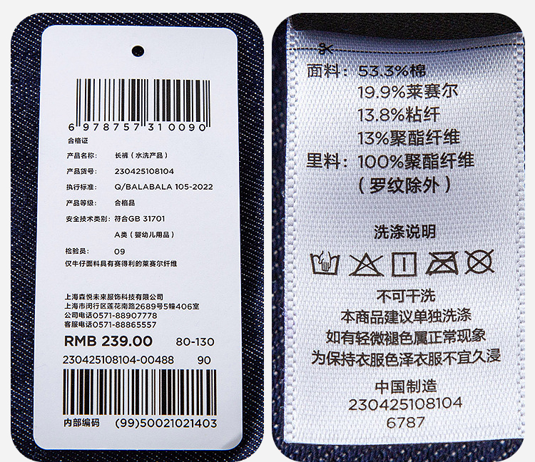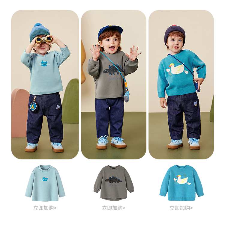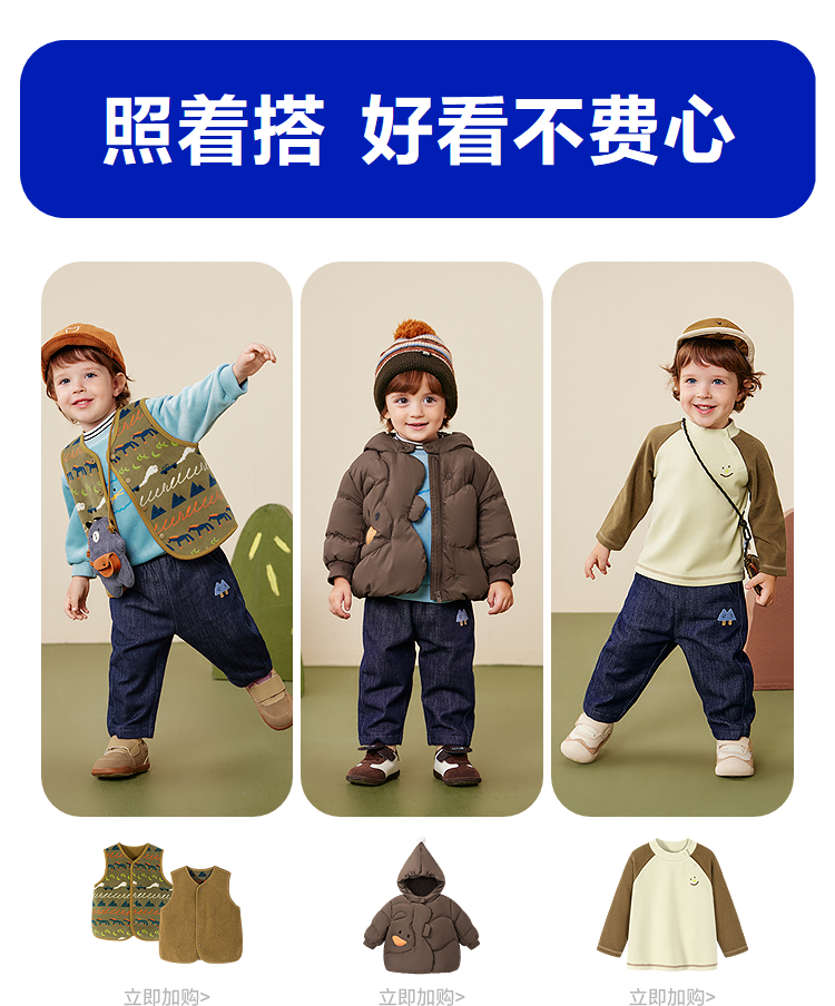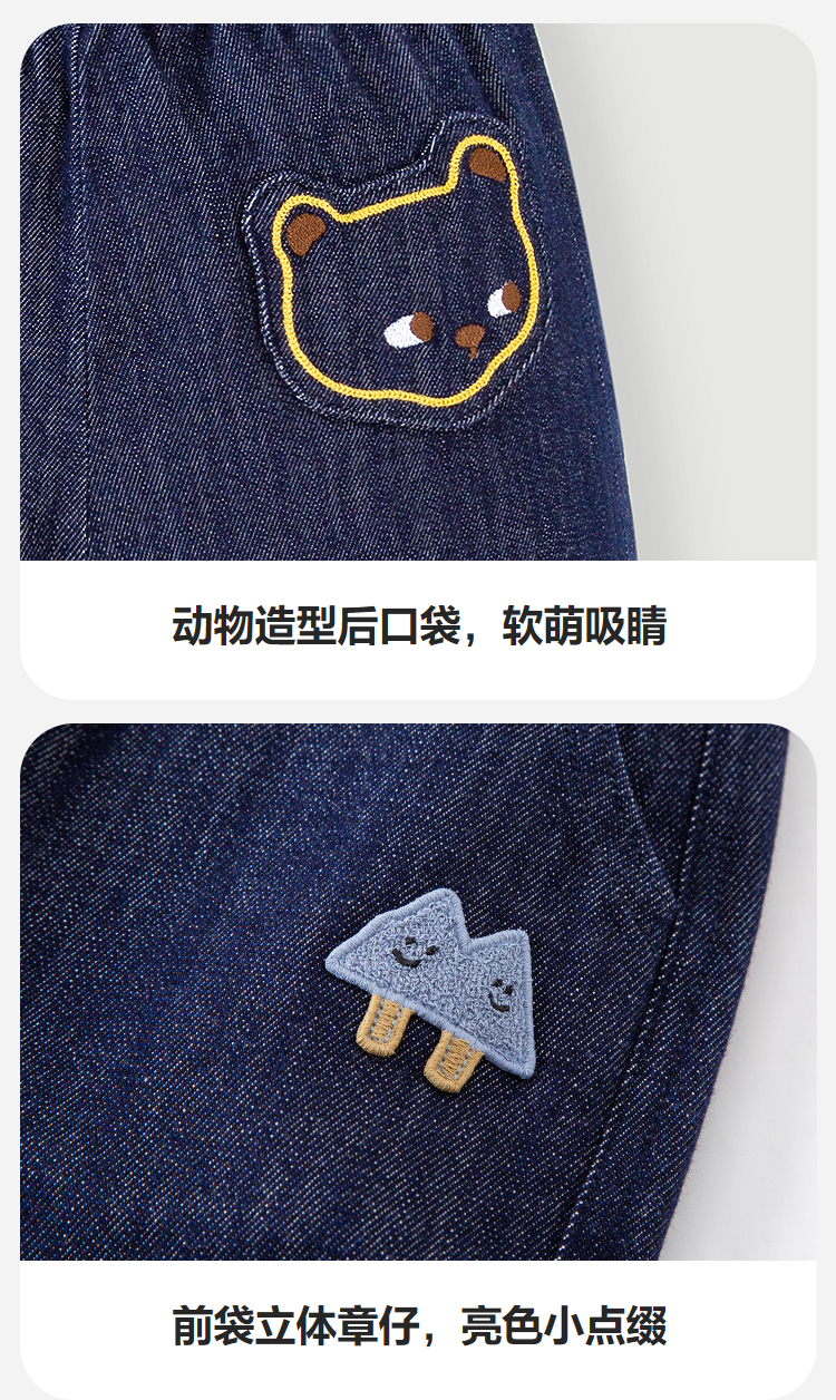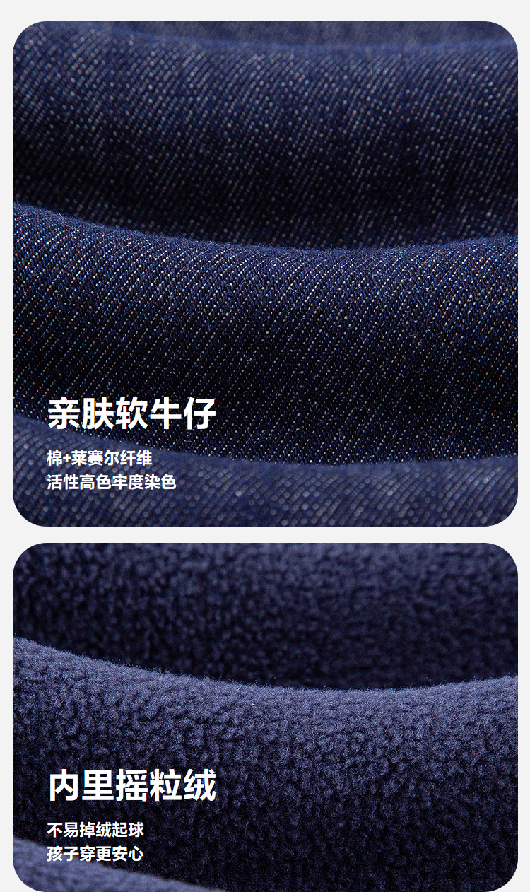 迷你巴拉男童宝宝长裤2025冬新品柔软亲肤保暖内里加绒软牛仔