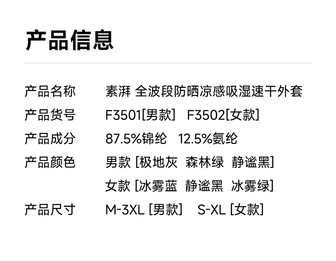 【立领款式 修饰脖颈线条】素湃立领防晒外套系列3501/3502 凉感原纱织造 接触凉感