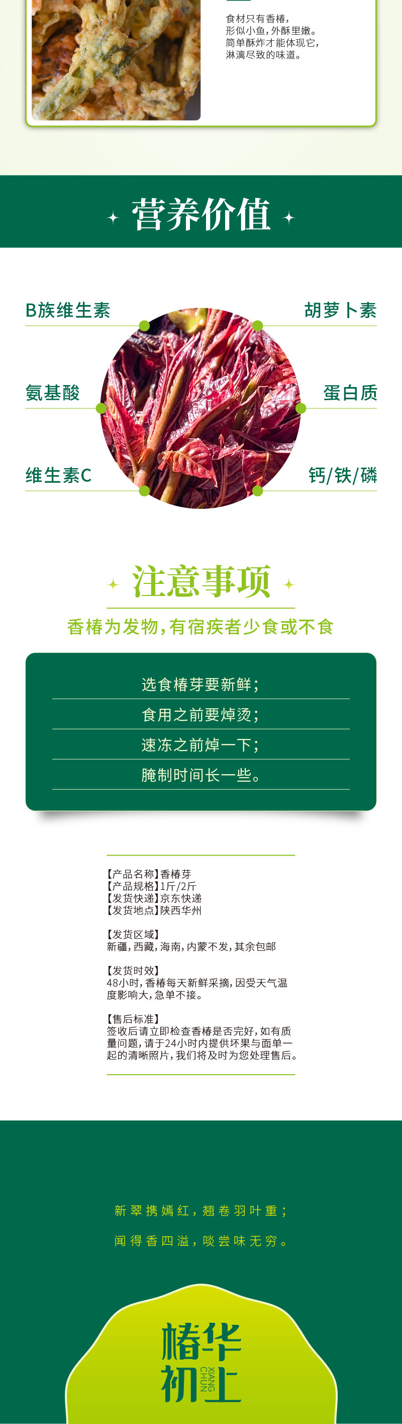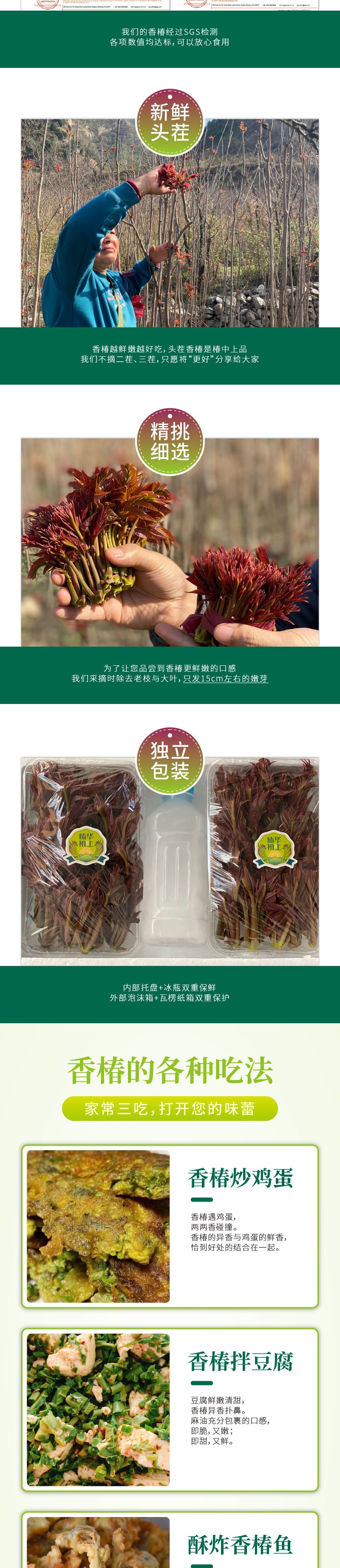 秦岭华州红油香椿 千年贡品级野味 芽叶细嫩 梗鲜肥 香味浓郁