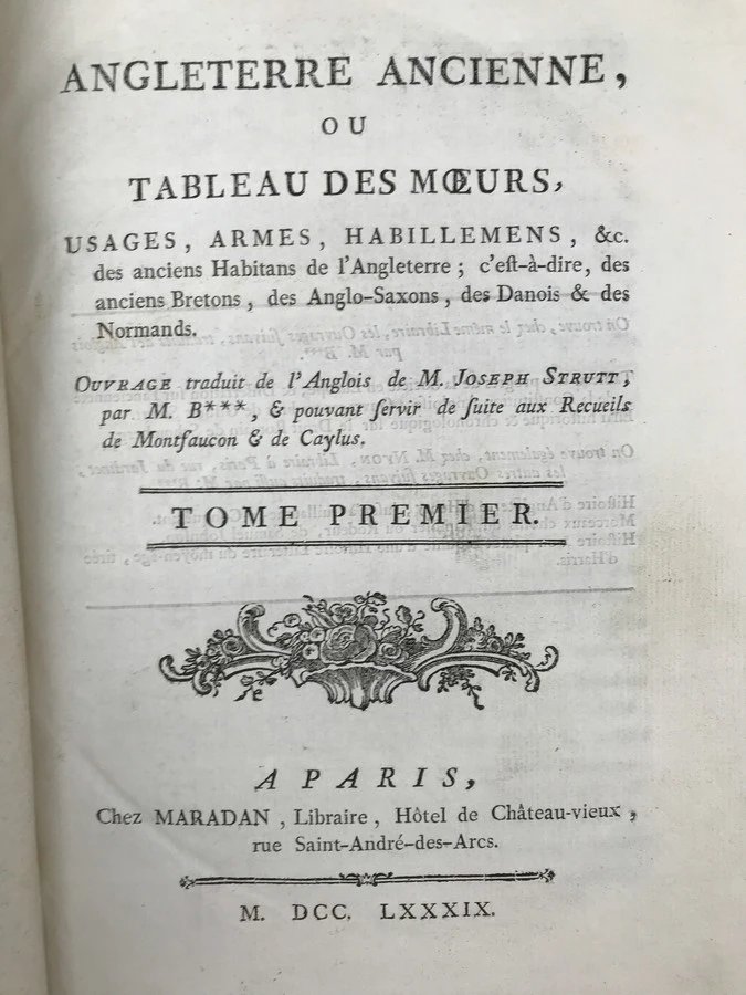 【法语】1789年 古代英格兰风俗志 67页原品版画插图 全真皮精装16开