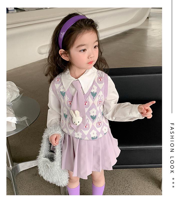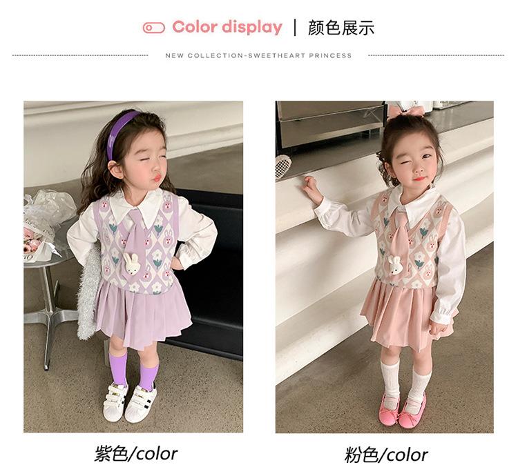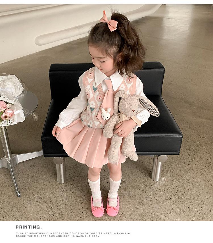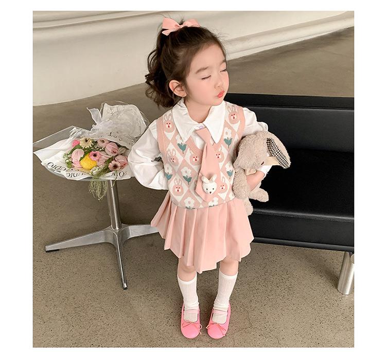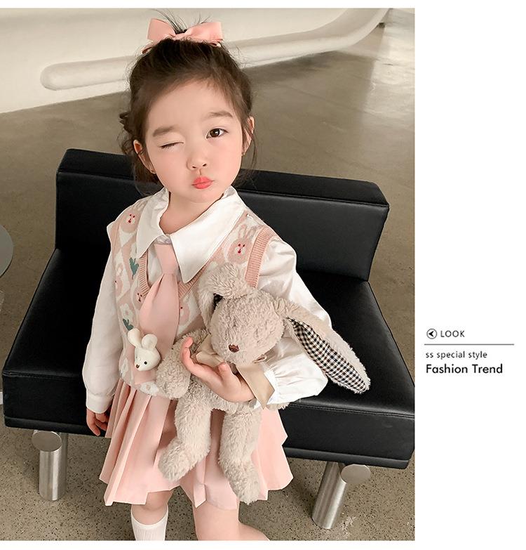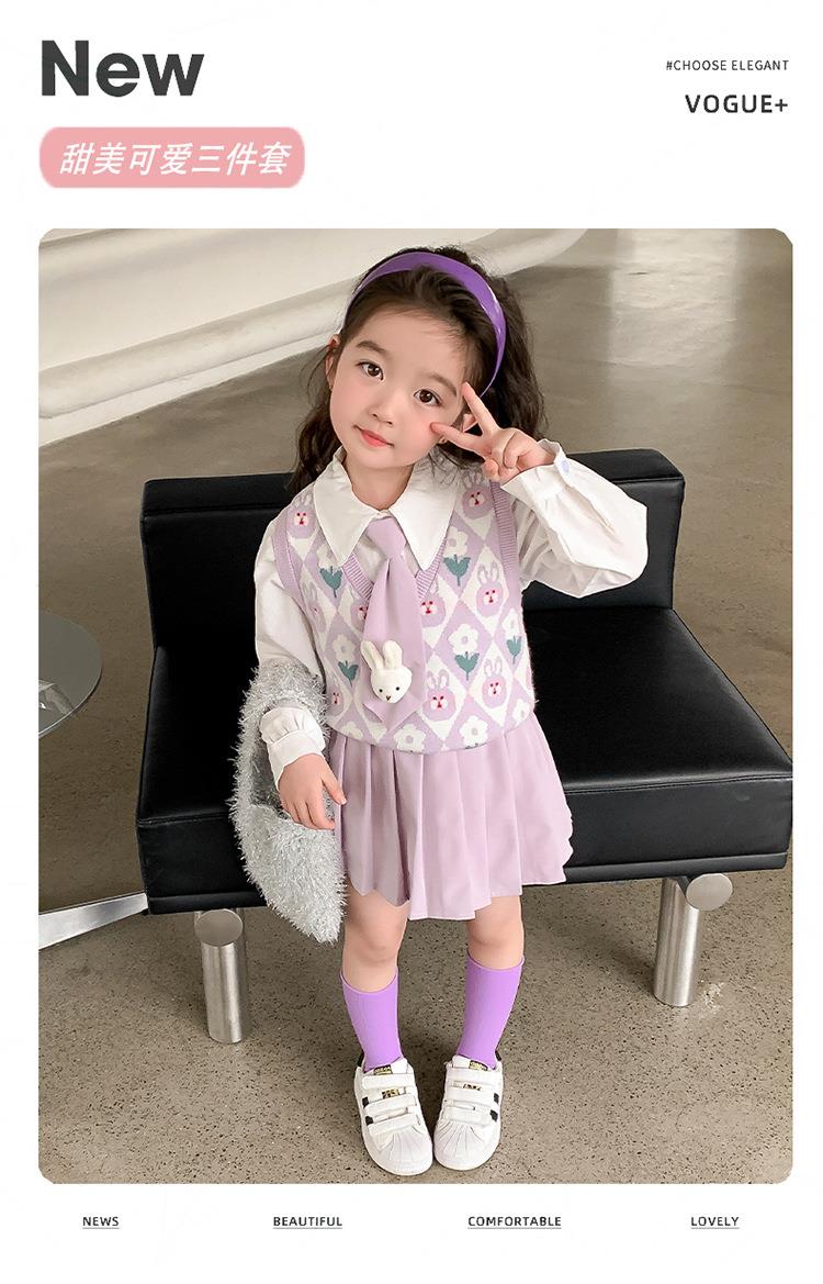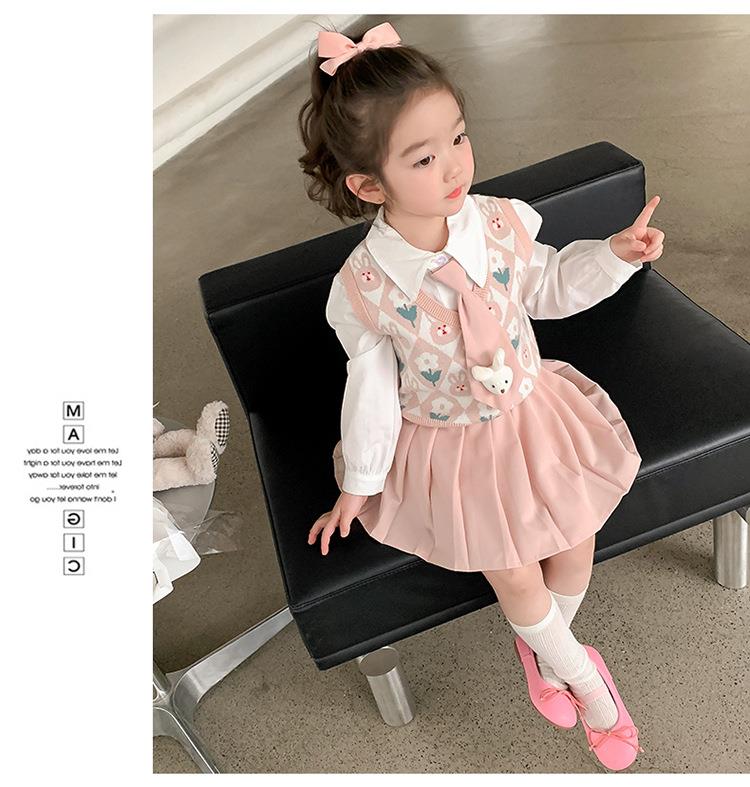 女童毛衣马甲衬衣三件套2024春季新款韩版套装洋气童装潮