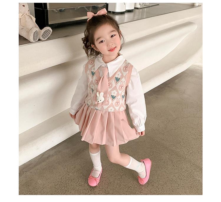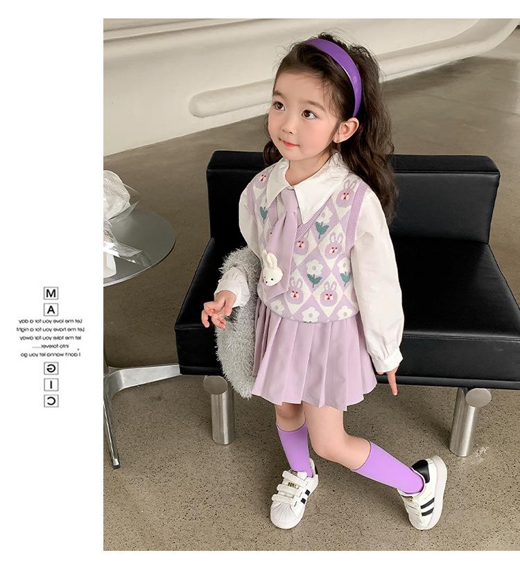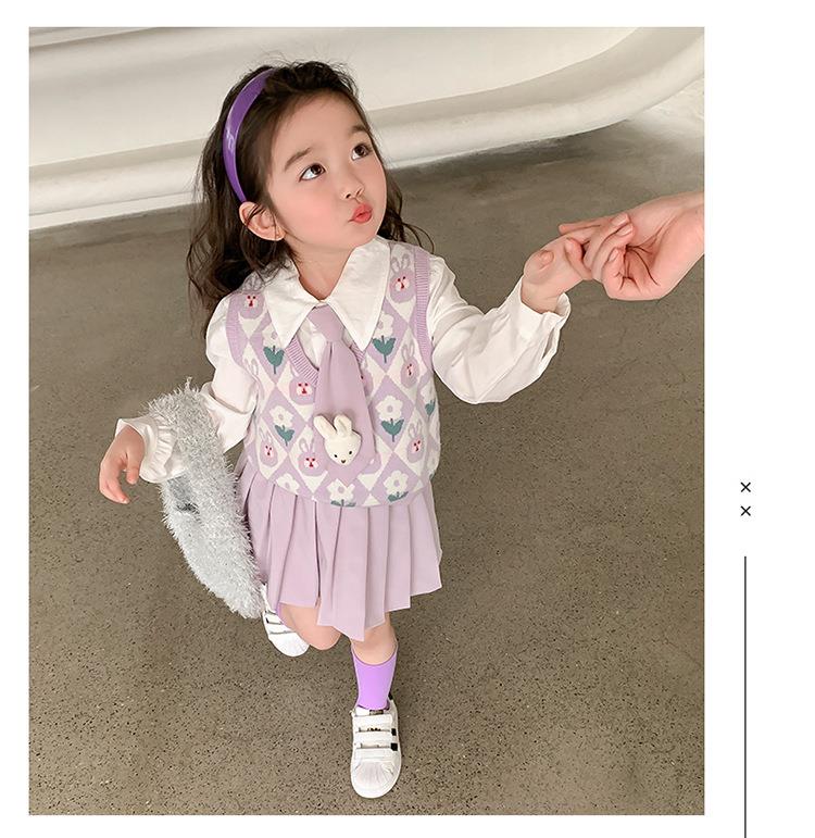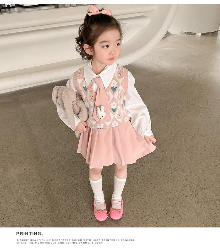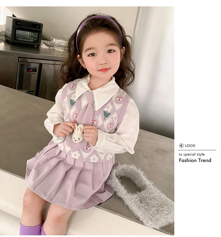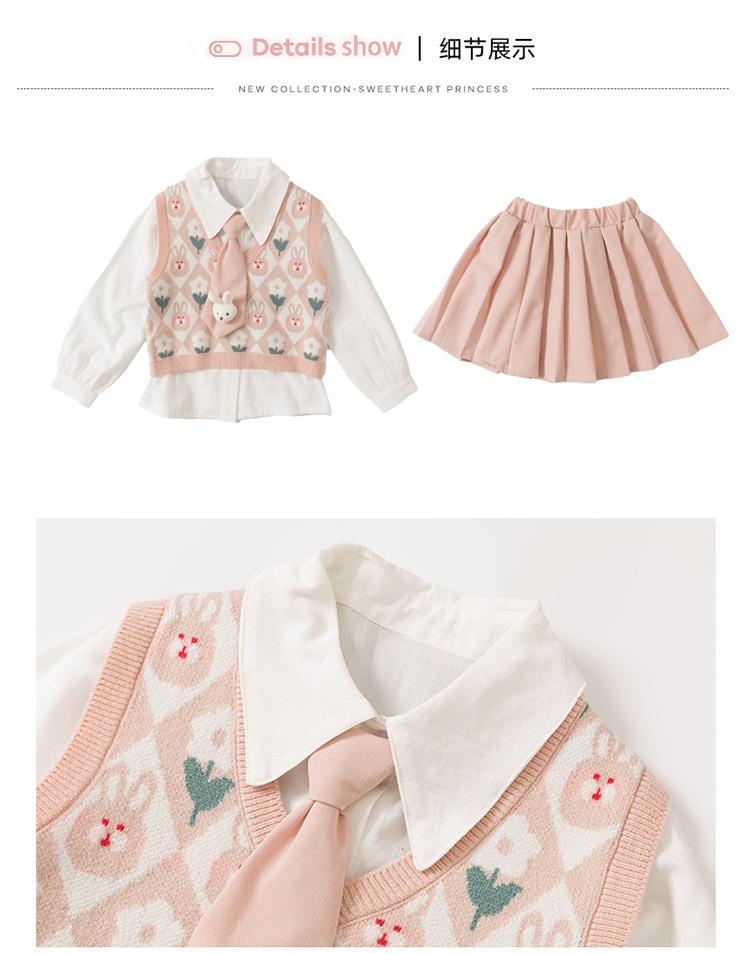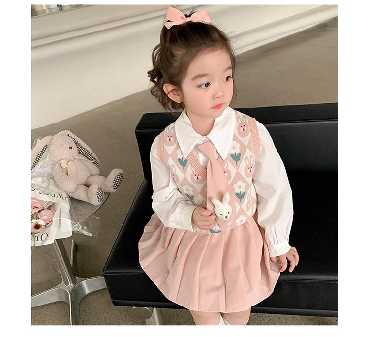 女童毛衣马甲衬衣三件套2024春季新款韩版套装洋气童装潮