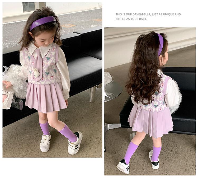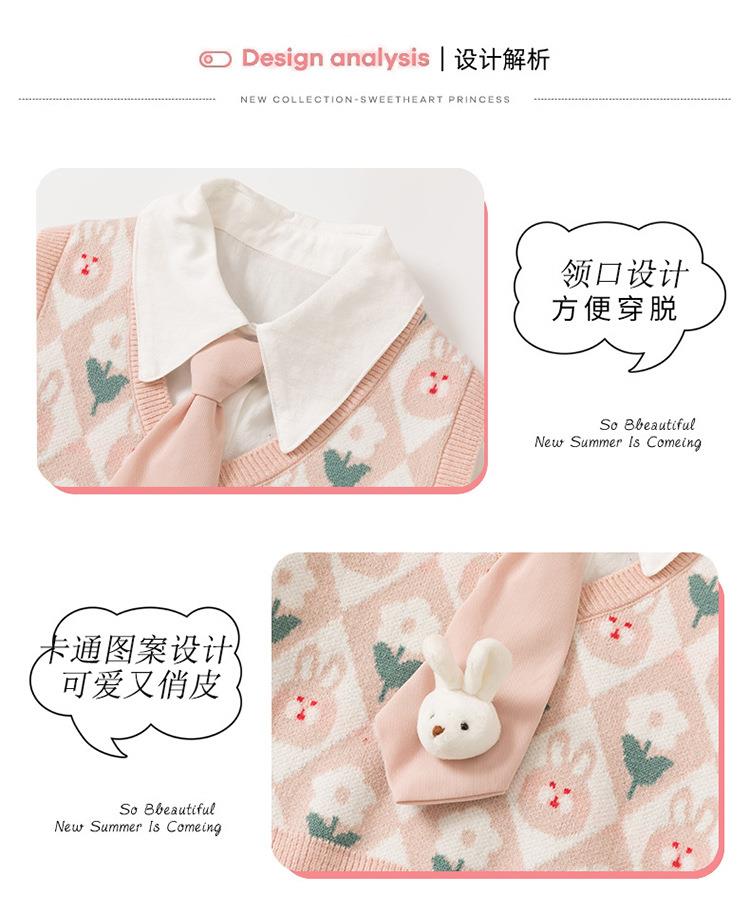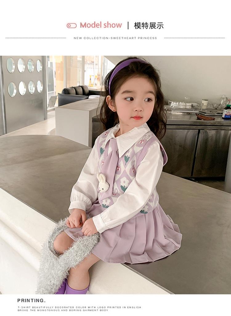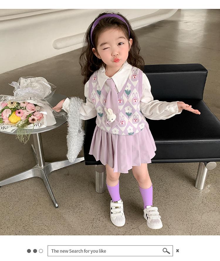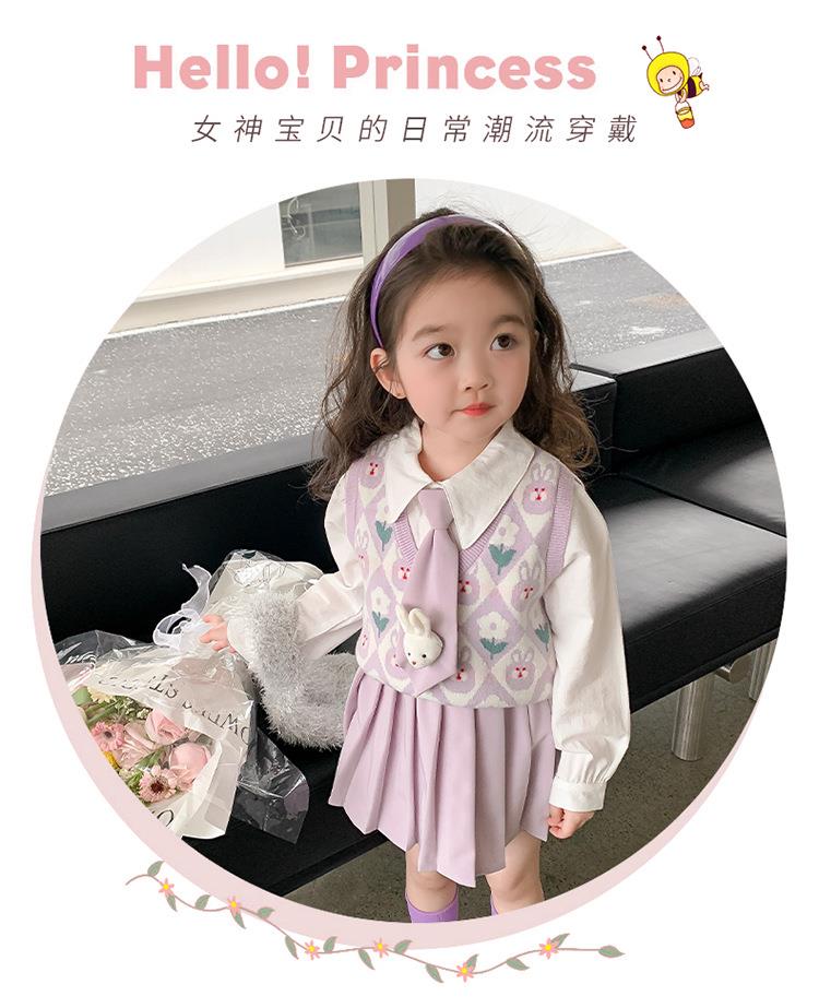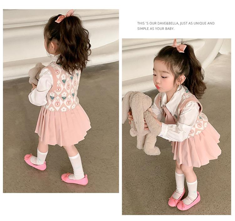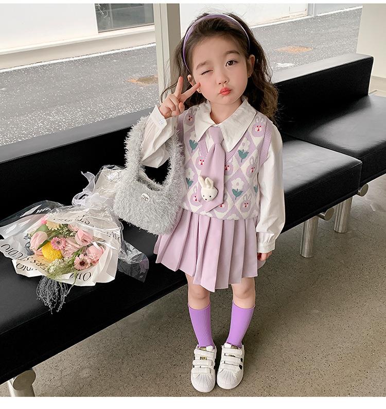 女童毛衣马甲衬衣三件套2024春季新款韩版套装洋气童装潮