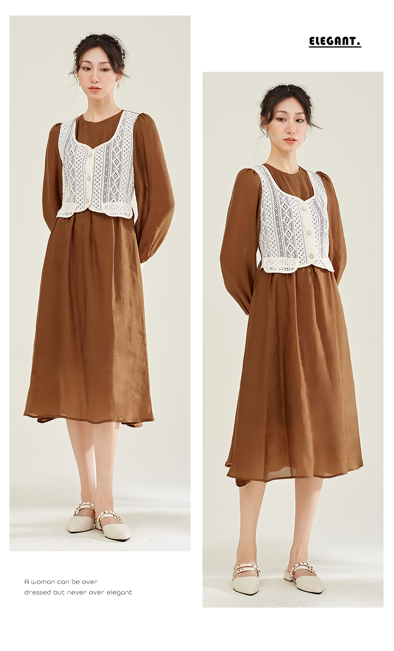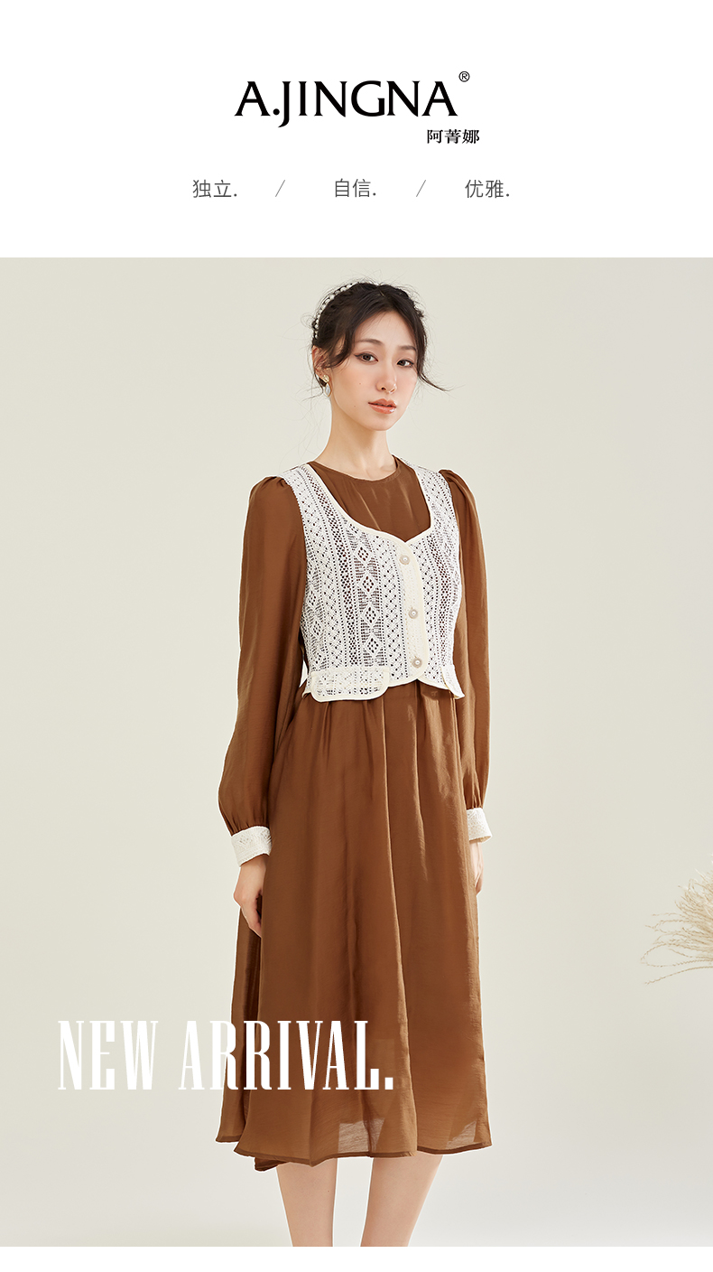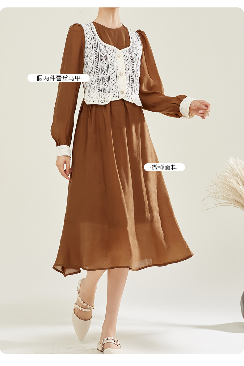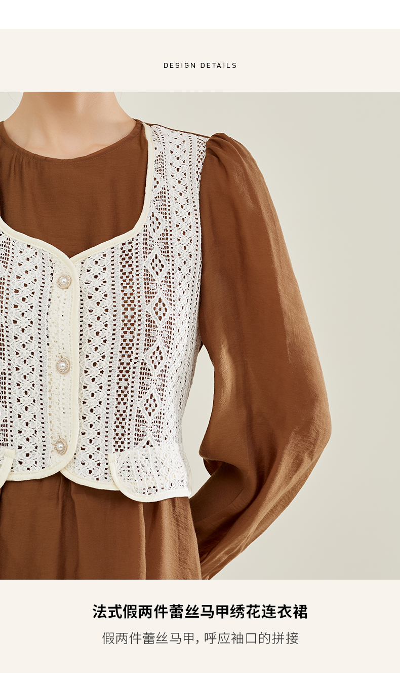 【特价不退换】阿菁娜秋季法式假两件蕾丝马甲绣花连衣裙F27Q212028
