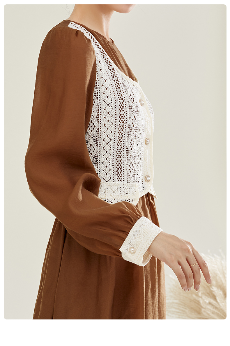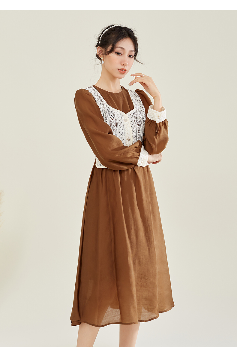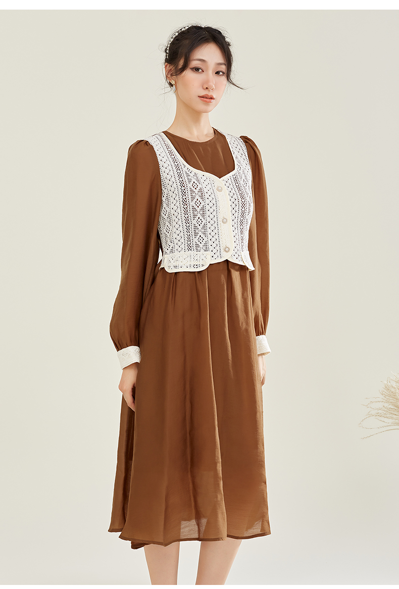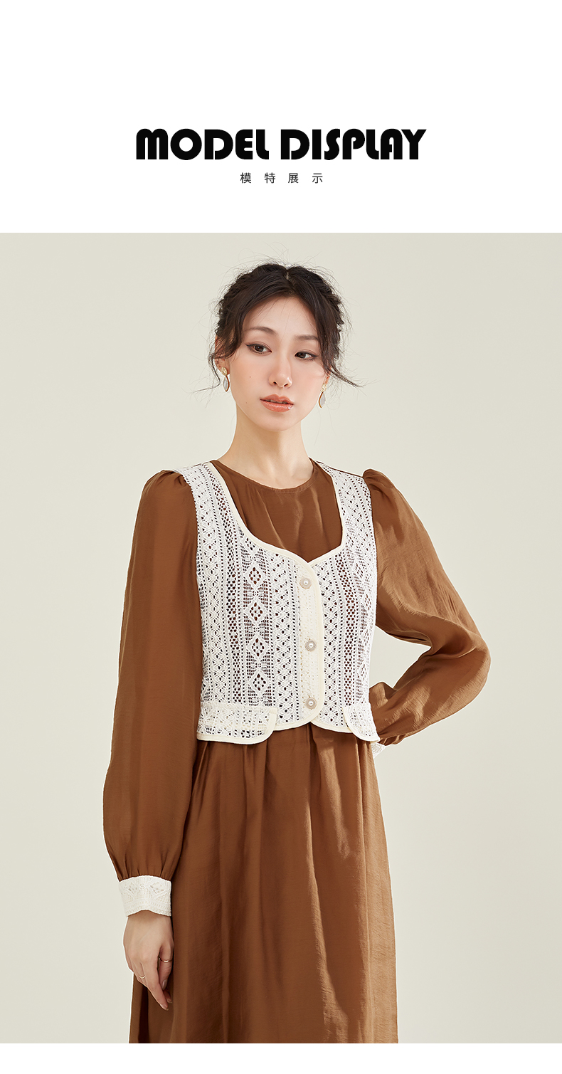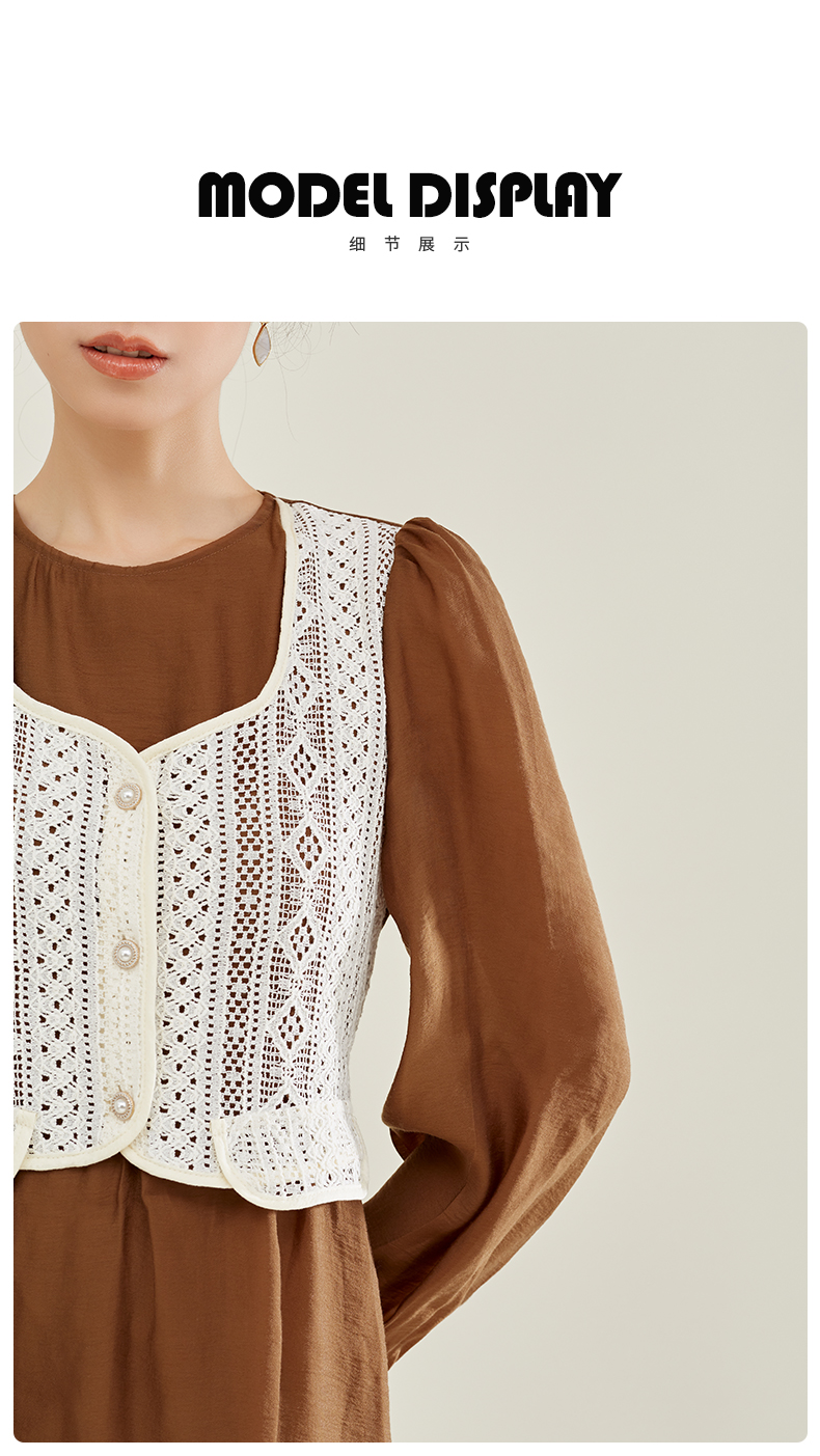 【特价不退换】阿菁娜秋季法式假两件蕾丝马甲绣花连衣裙F27Q212028