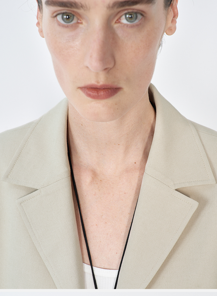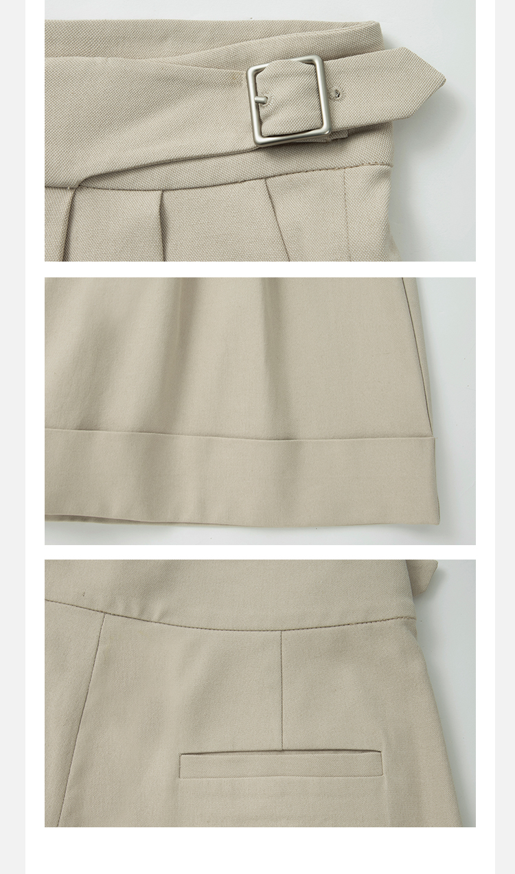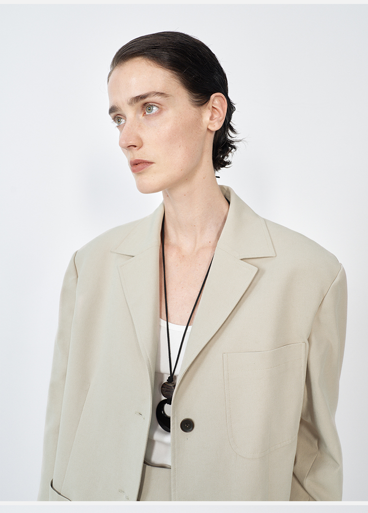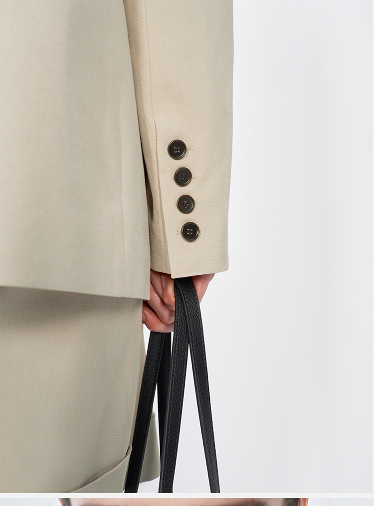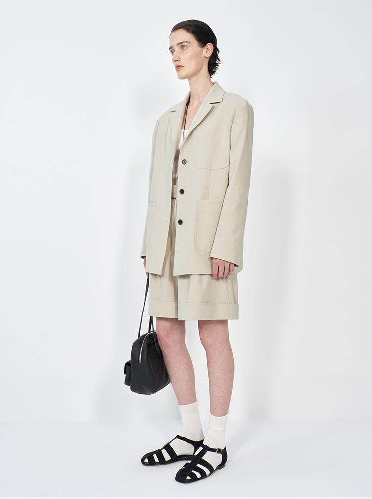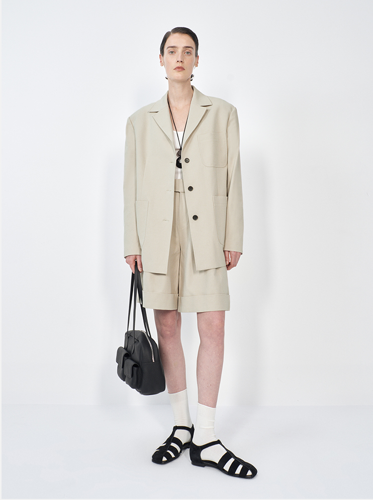 HIDEMI 米色轻盈亚麻设计感翻领贴袋大廓形西装中裤套装