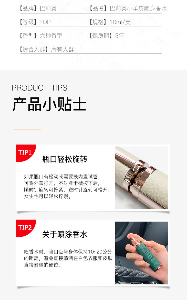 新品推荐【一般贸易】巴莉奥barrio小羊皮香水半空10ml 随身小众持久清新淡香