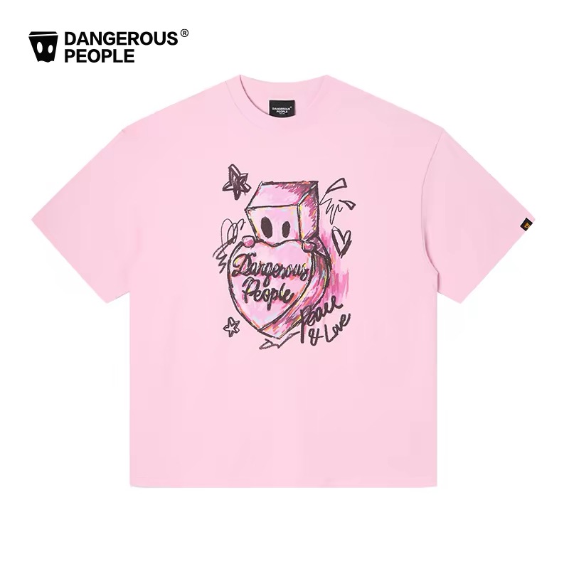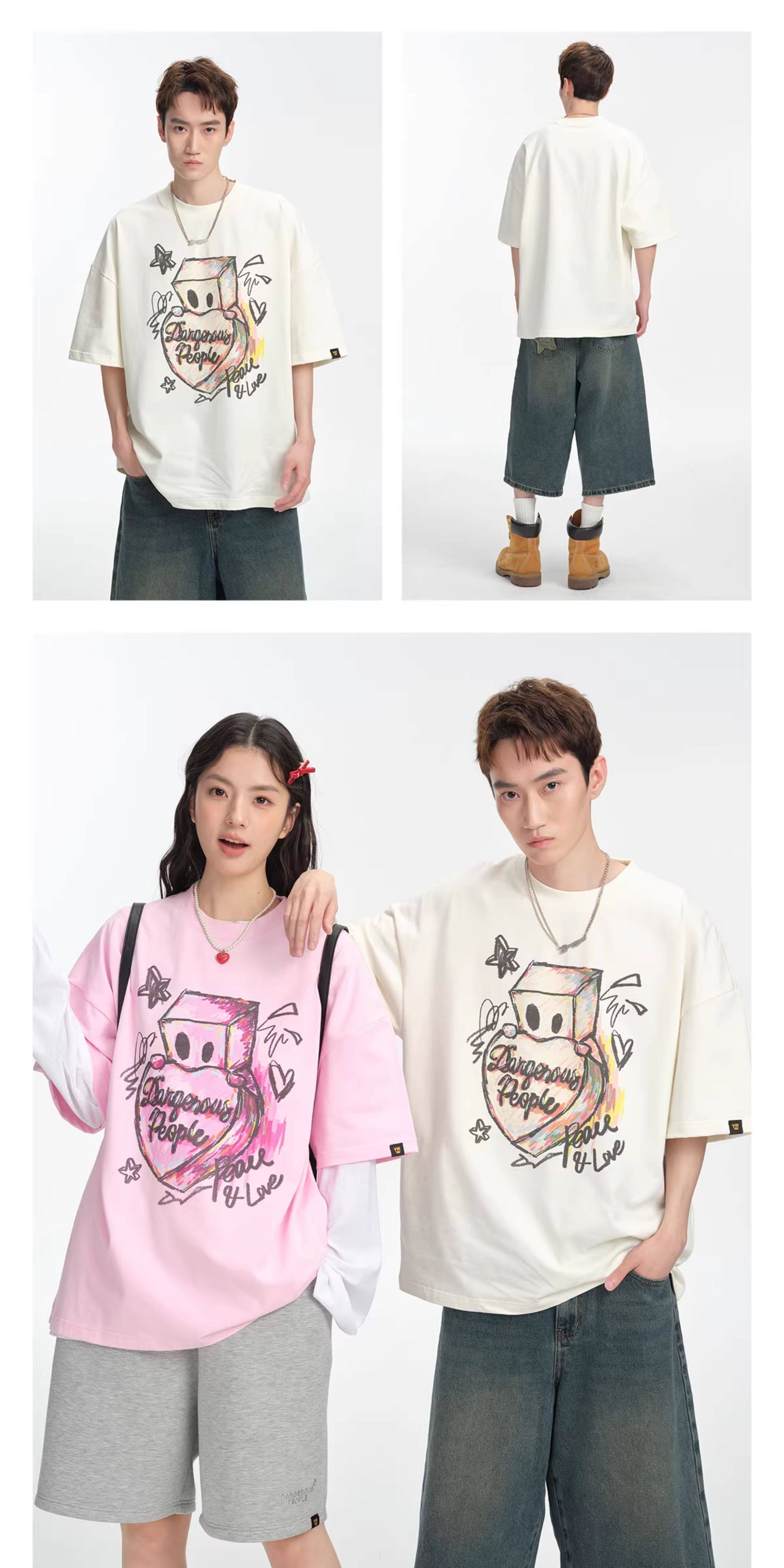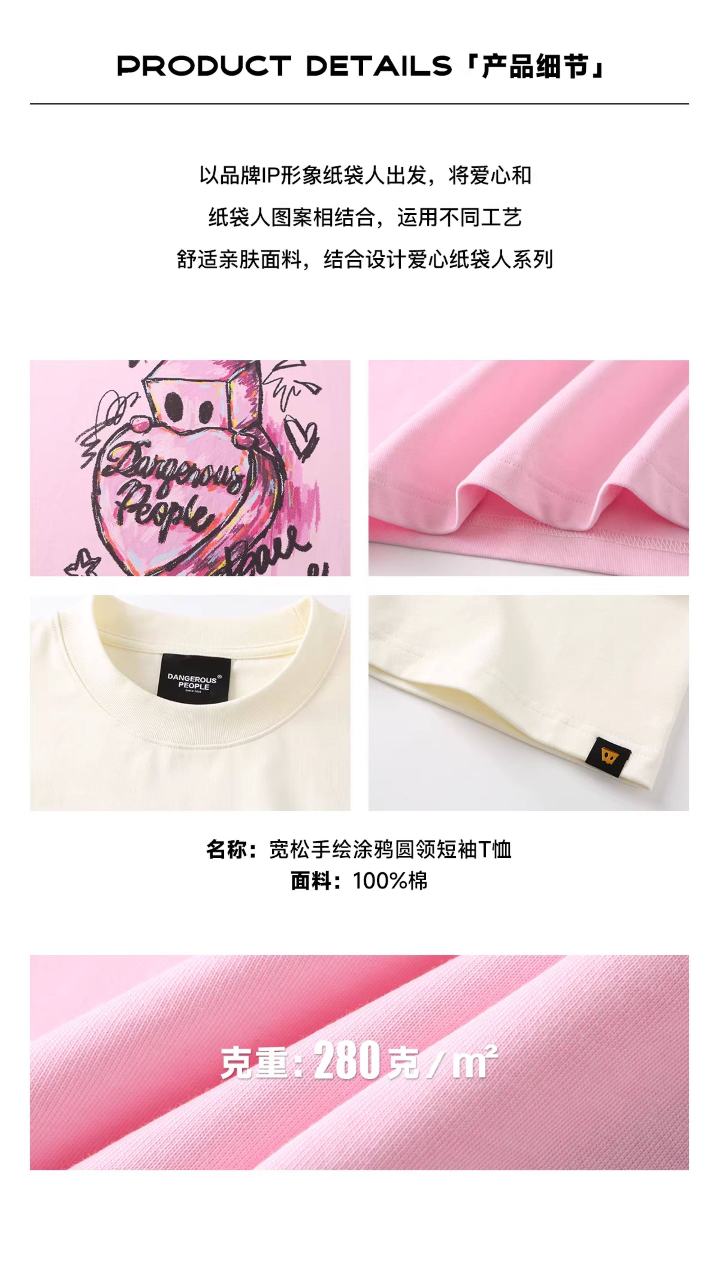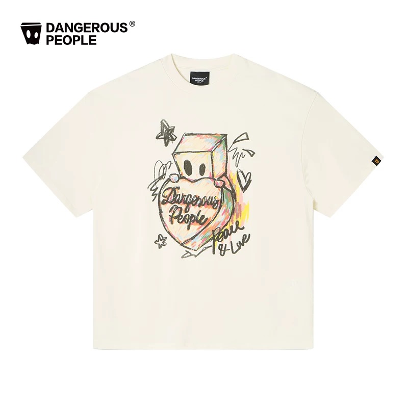 薛之谦的潮牌dsp纯元,趣味手绘爱心纸袋人涂鸦logo,男女同款,宽松 纯棉 短袖~