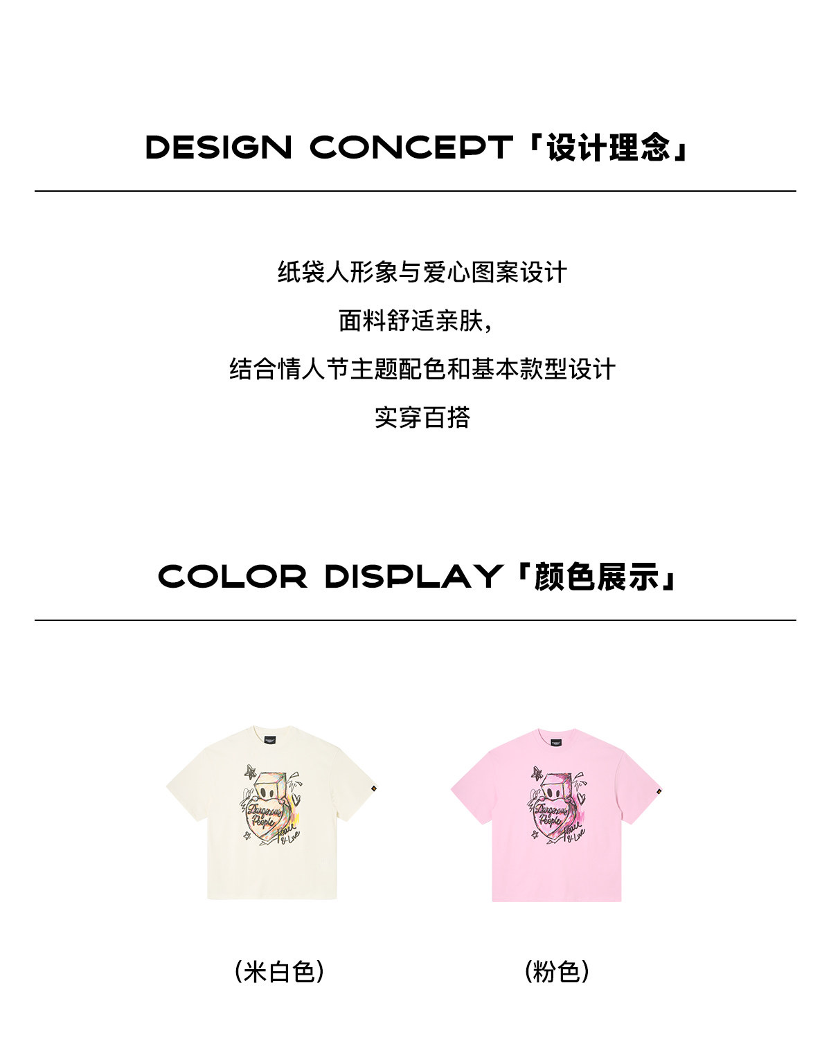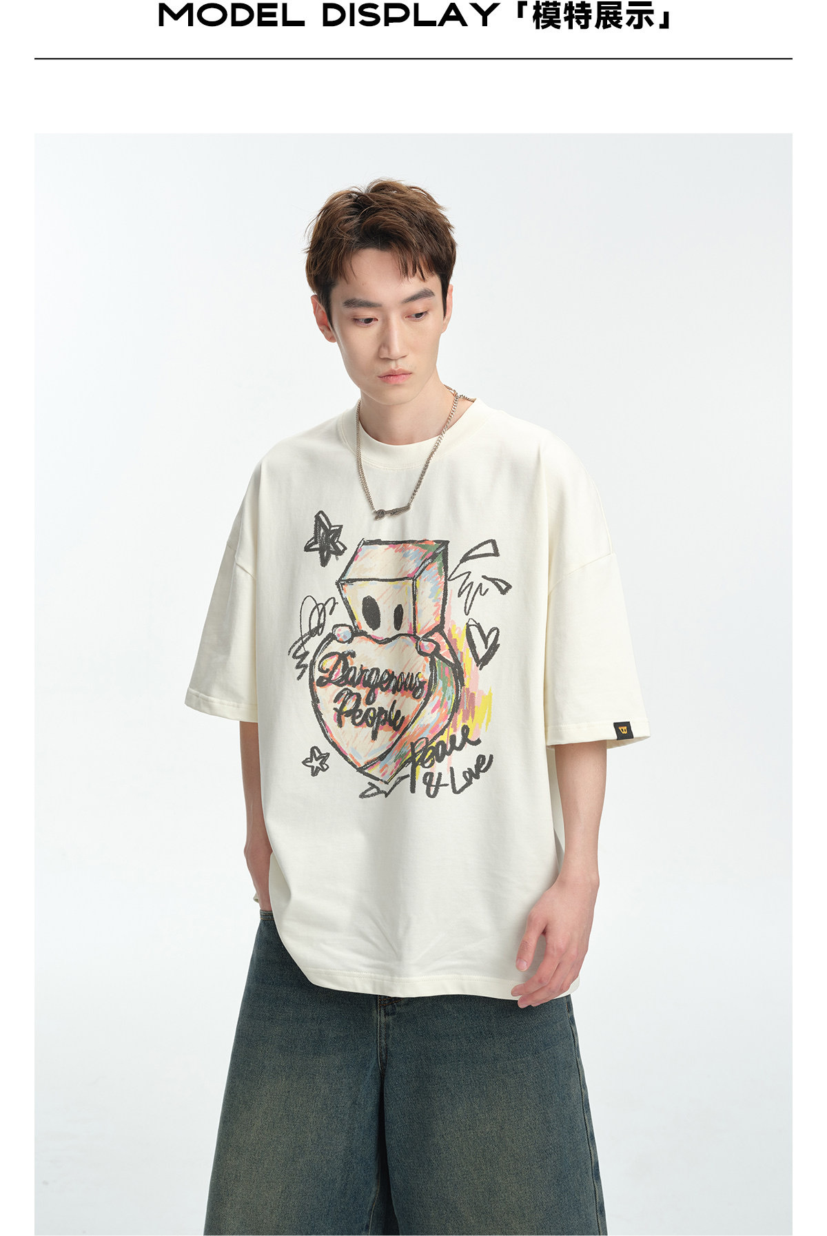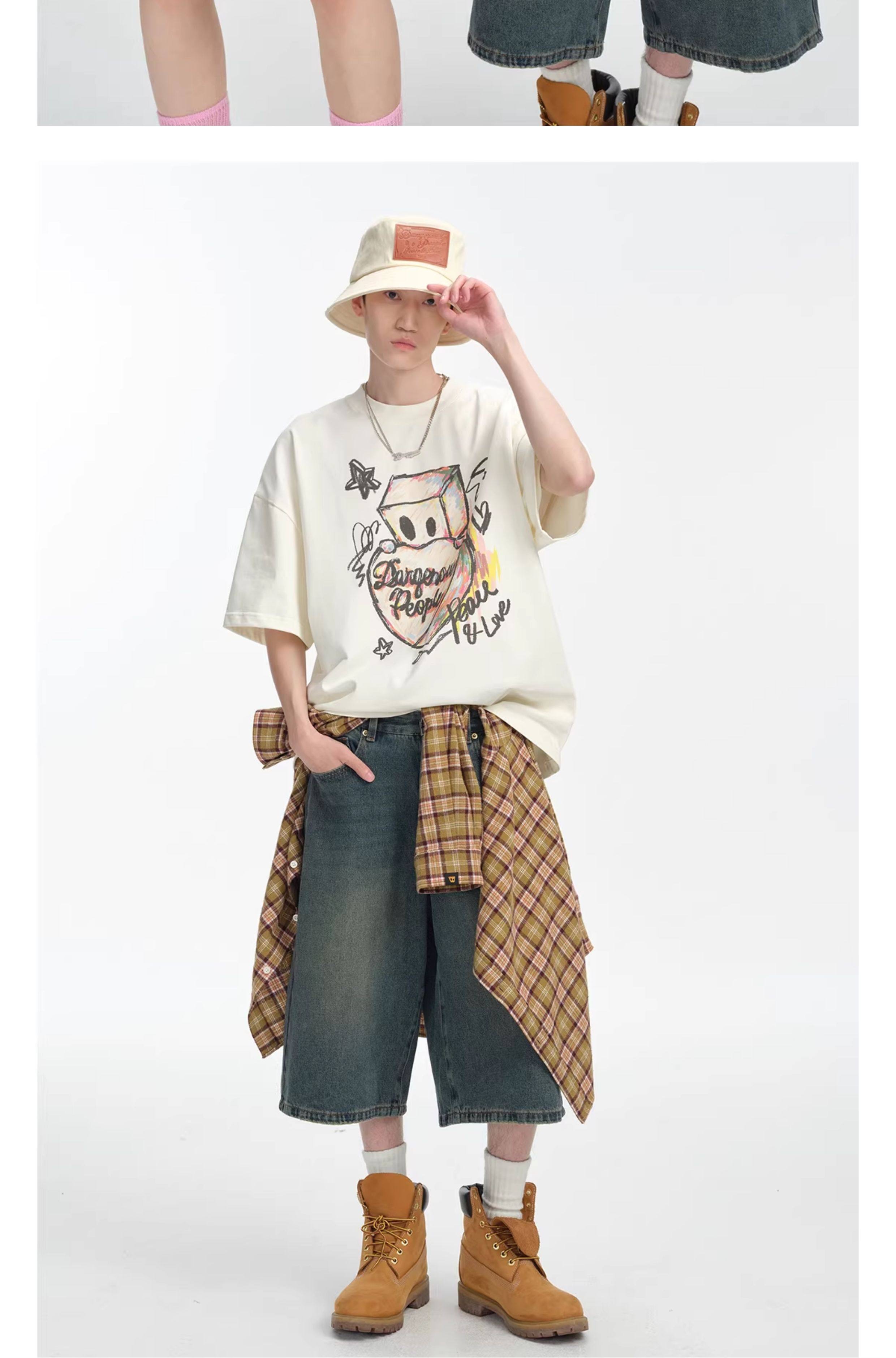 薛之谦的潮牌dsp纯元,趣味手绘爱心纸袋人涂鸦logo,男女同款,宽松 纯棉 短袖~