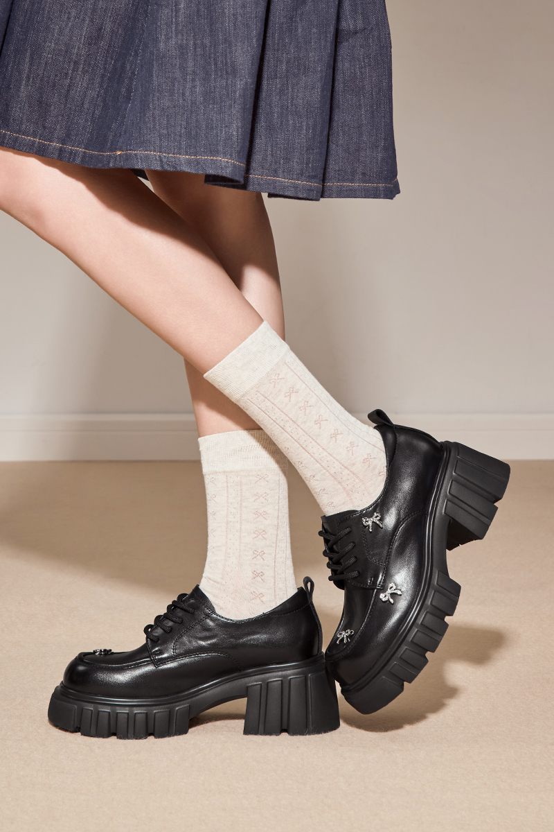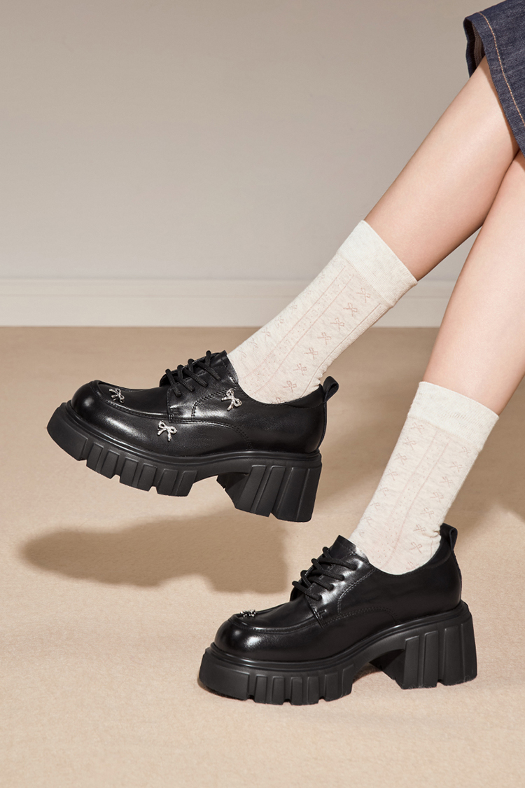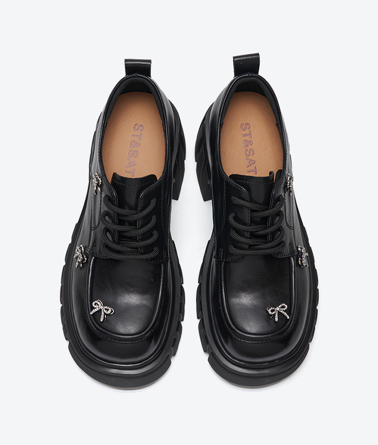 星期六26春新学院风俏皮蝴蝶结厚底乐福SSE1112196