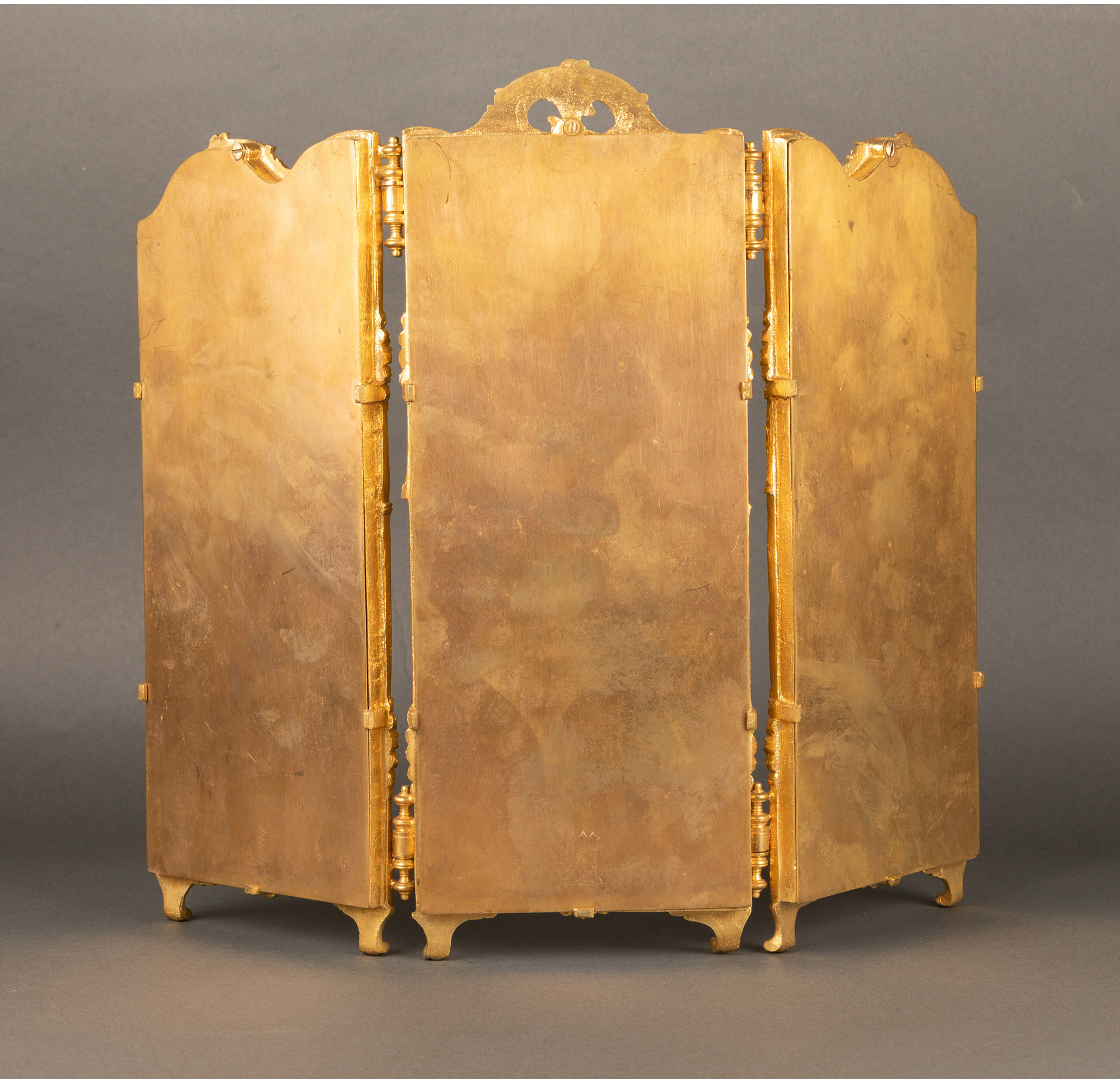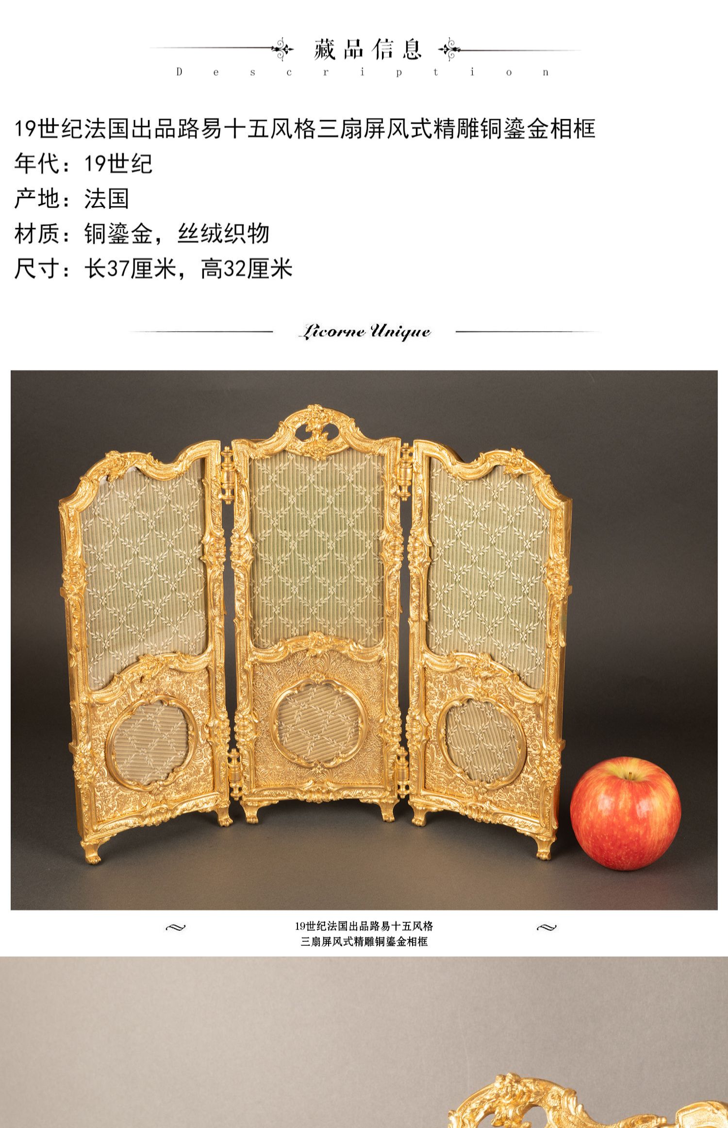 独角鹿西洋古董摆件法国洛可可风格三扇屏风造型精雕铜鎏金相框