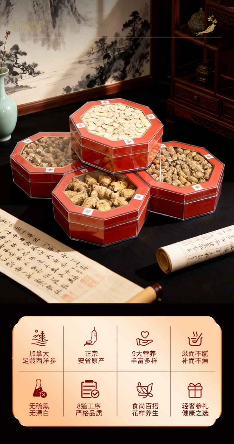 西洋参八角亚克力盒【亚克力盒配手提袋】