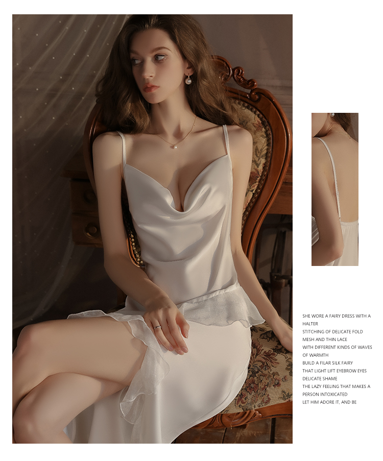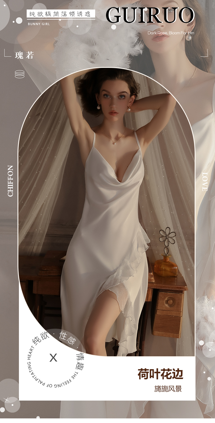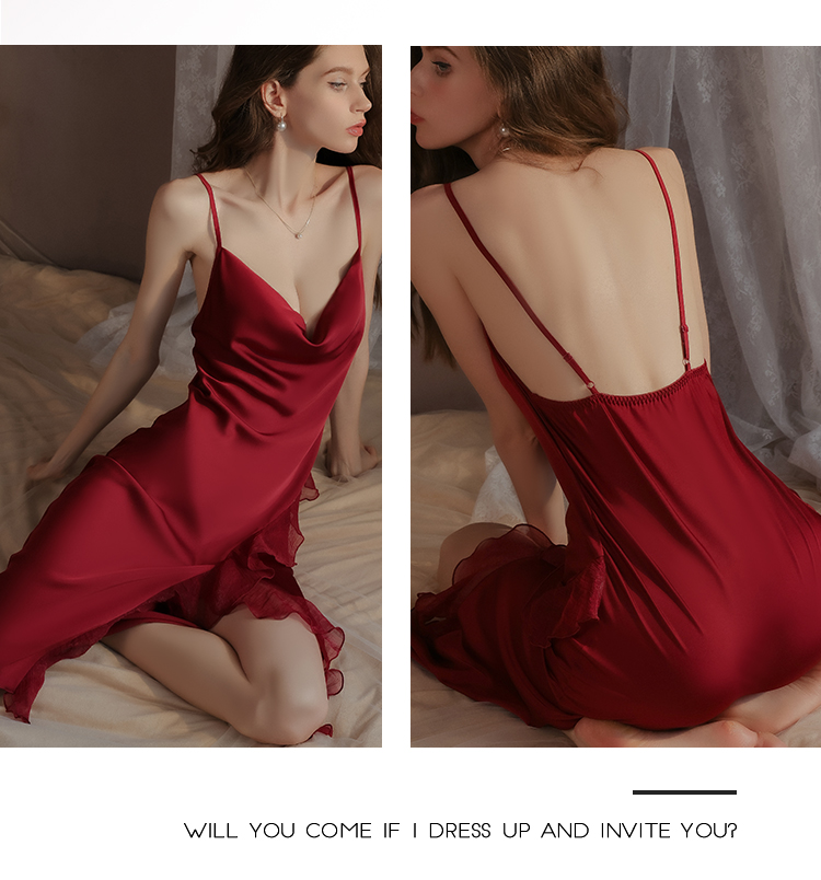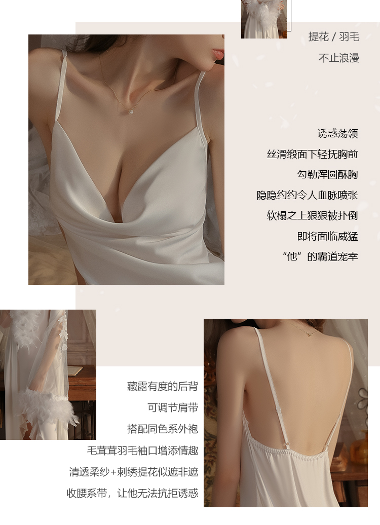 【YW】无忧购性感睡衣深V荡领冰丝吊带睡裙慵懒风家居服4459(截单后7天发货)