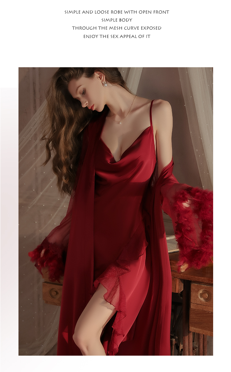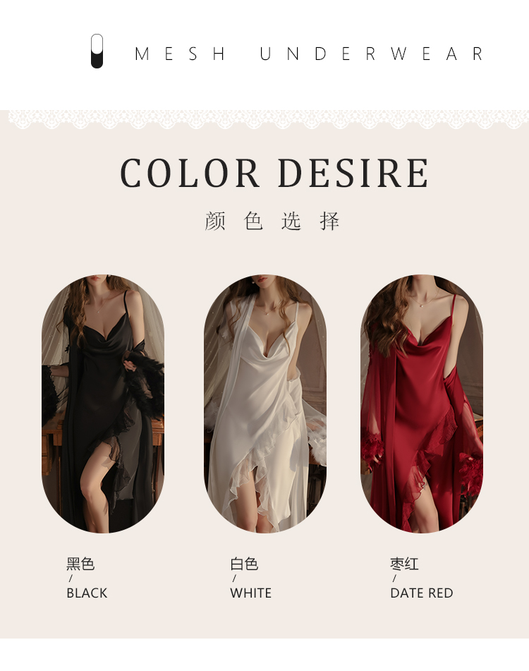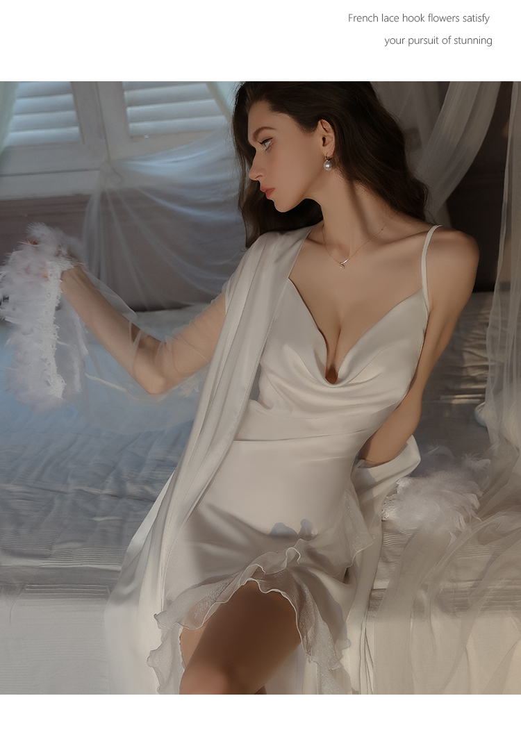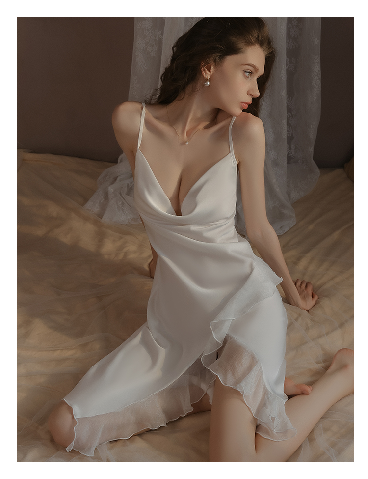 【YW】无忧购性感睡衣深V荡领冰丝吊带睡裙慵懒风家居服4459(截单后7天发货)