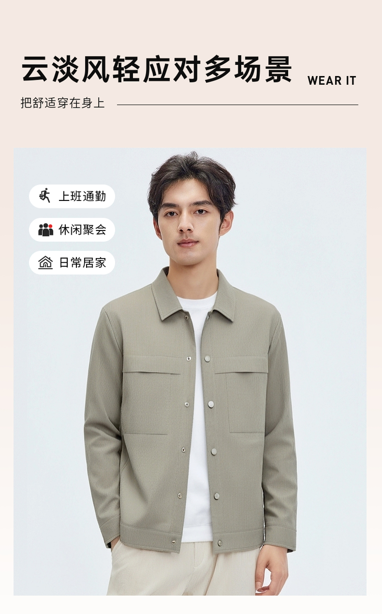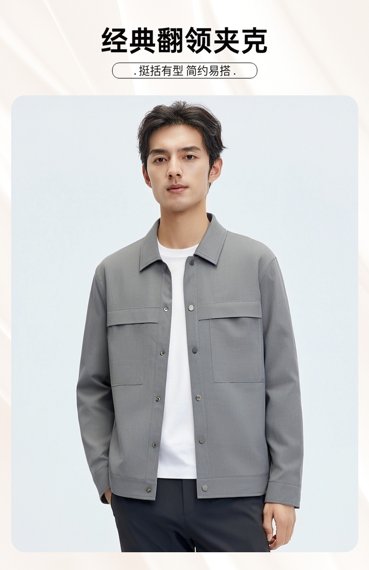 圣得西简约百搭翻领夹克青年男2025春秋新款韩系少年感开衫外套