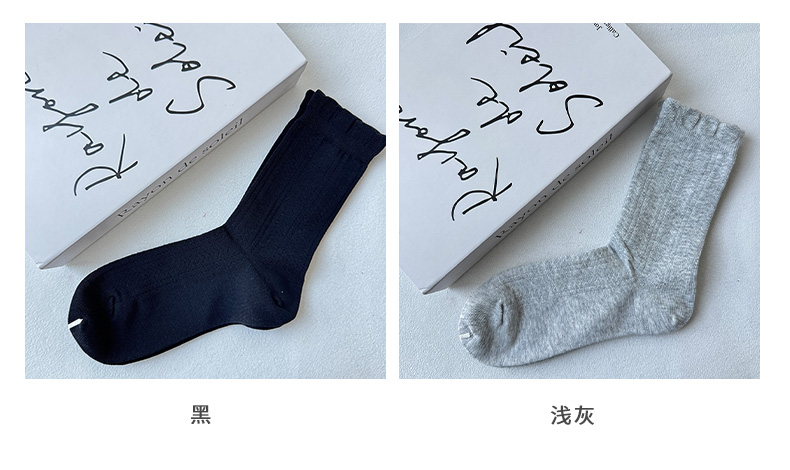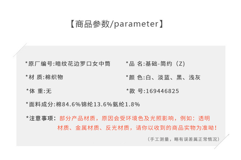 暗纹花边罗口女中筒袜基础-简约-纪念日百货门店同款169446825