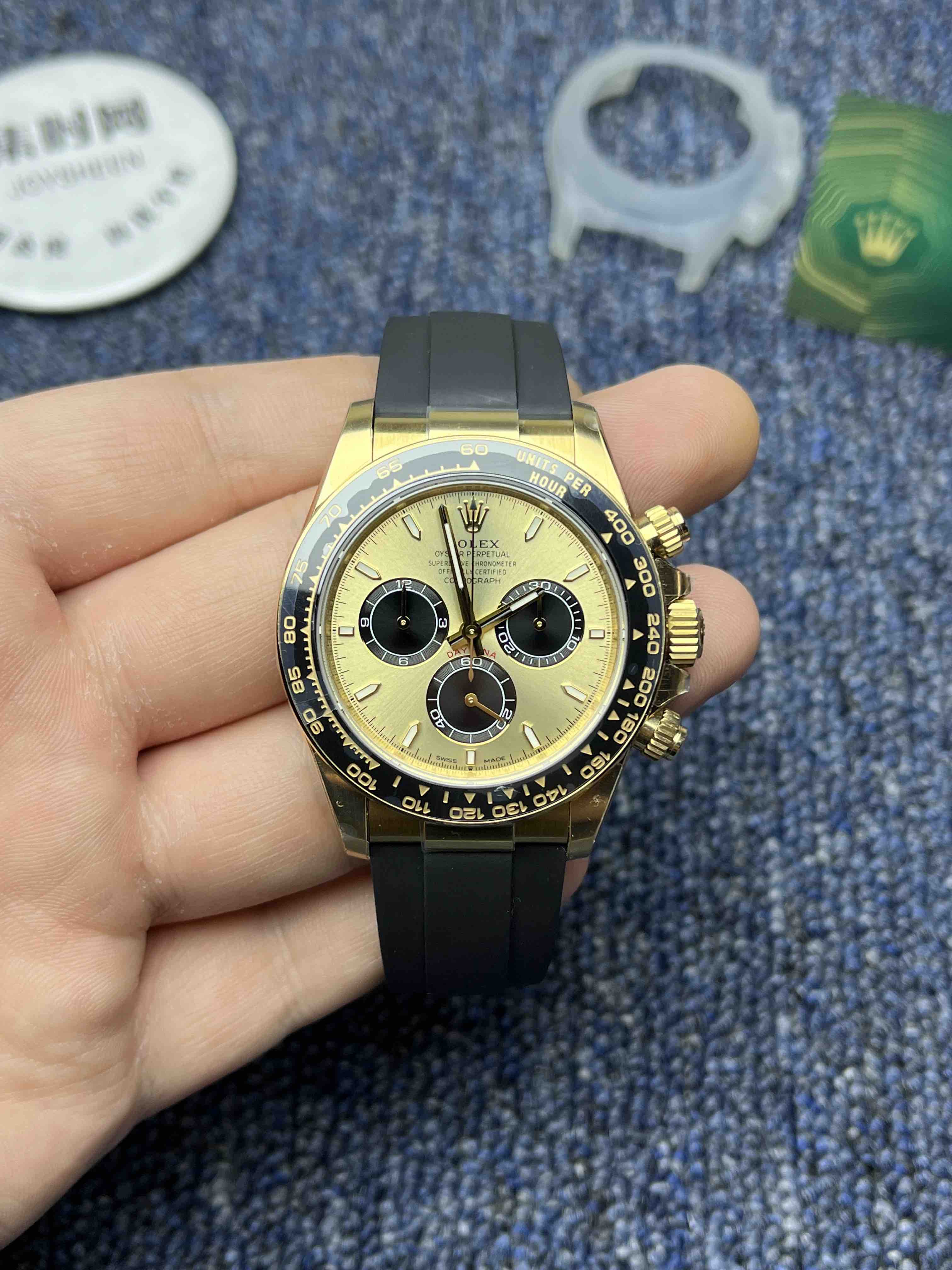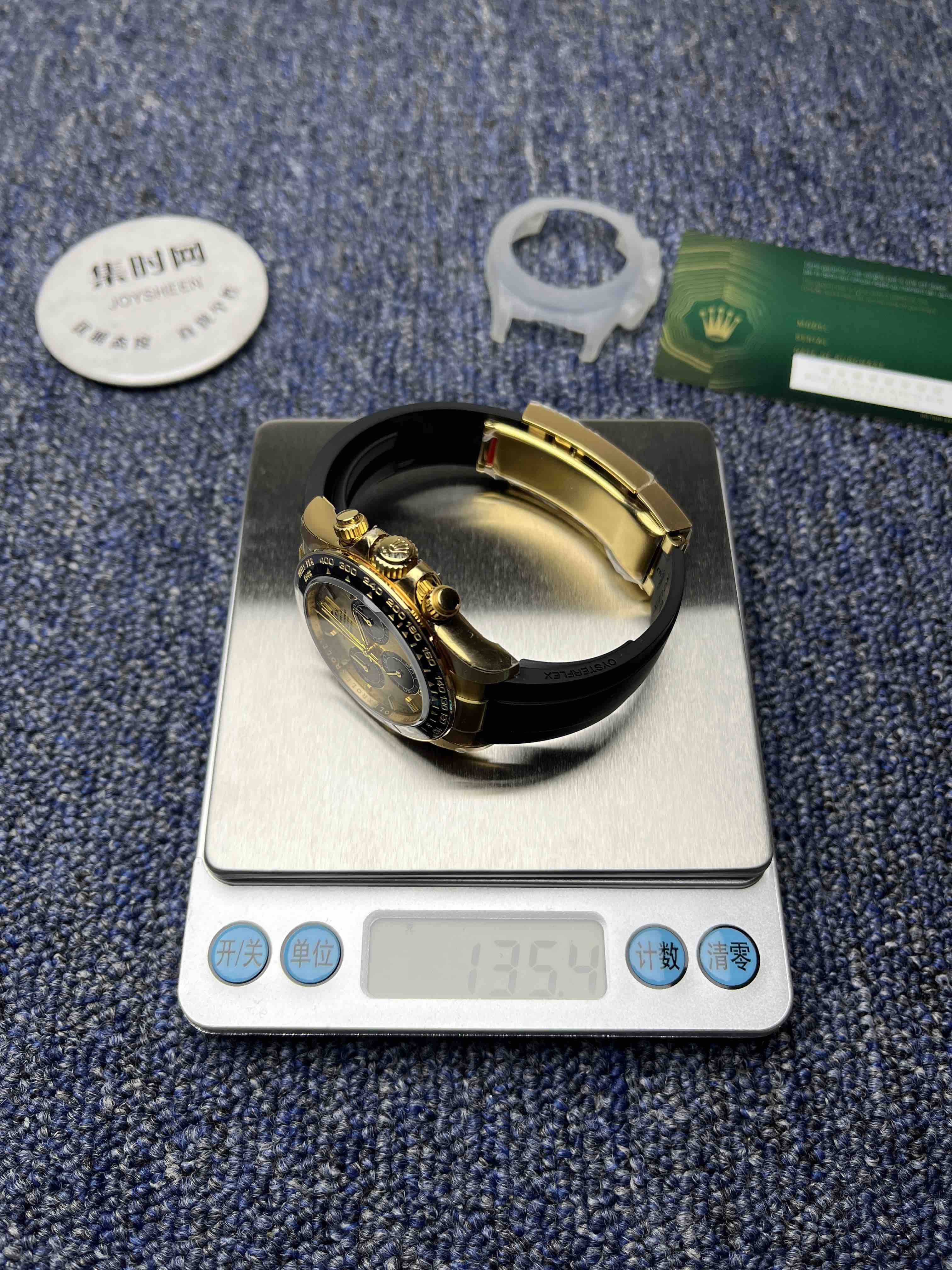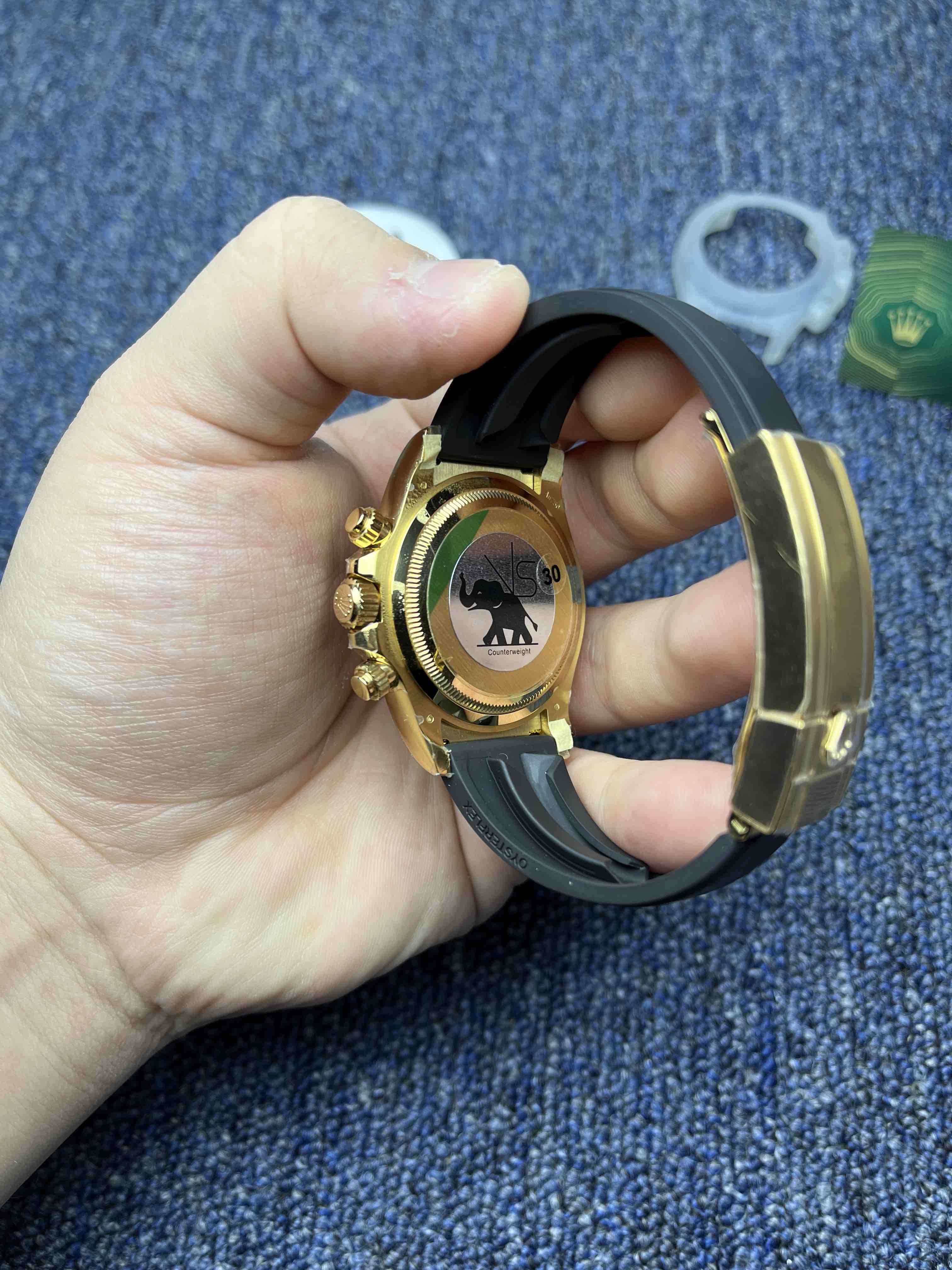 VS迪通拿胶带款配重135克+ 真正意义上的配重版本,壳没加厚的颠覆性的配重版本,真正把表壳重量配重到同步正品。而不是市场配重版本,表头重量不够,在胶带里加一整铁块的做法。VS追求的不单单是重量接近,还要手表佩戴出正品的质感,质量稳定可靠。值得信赖的版本。