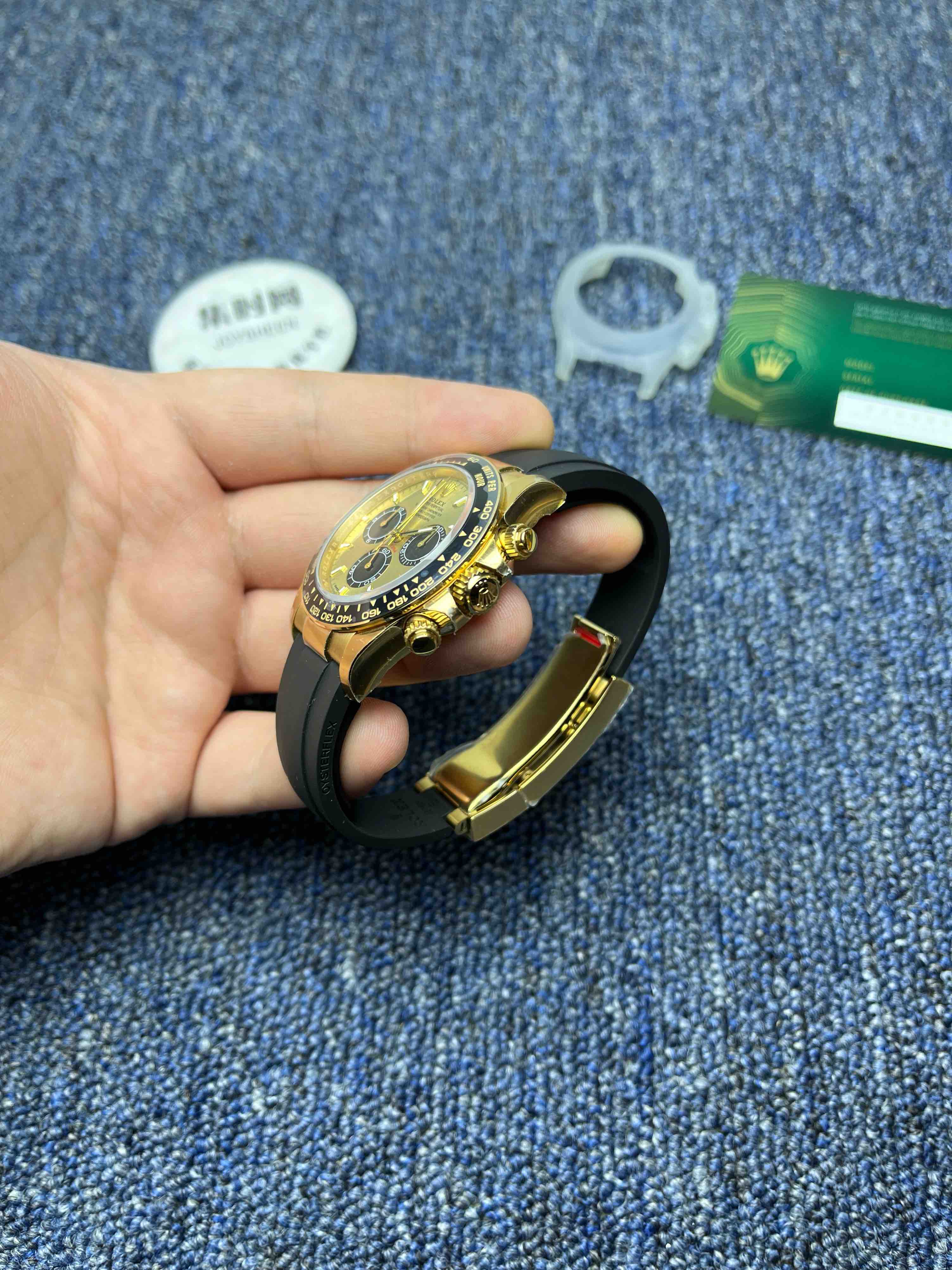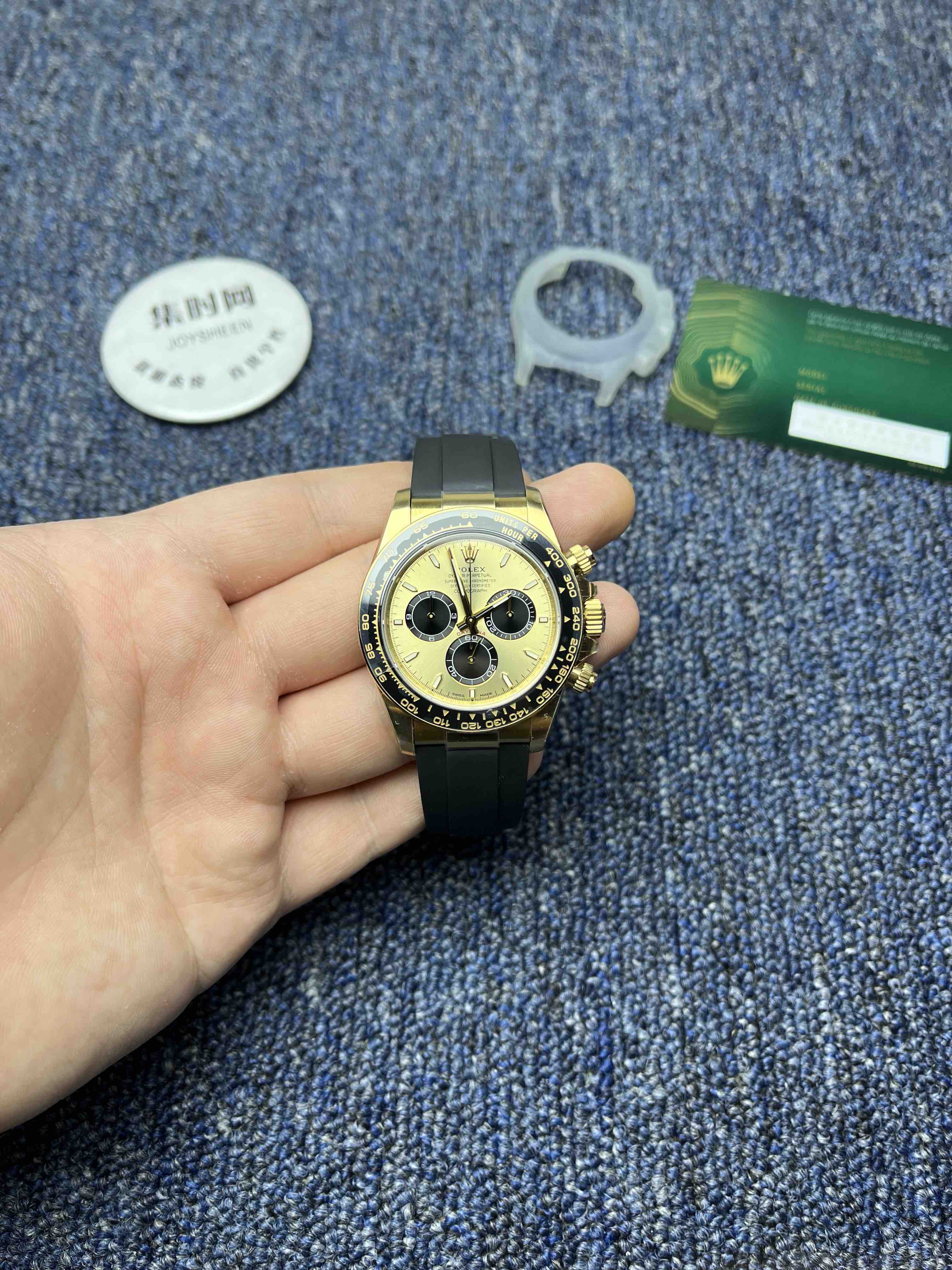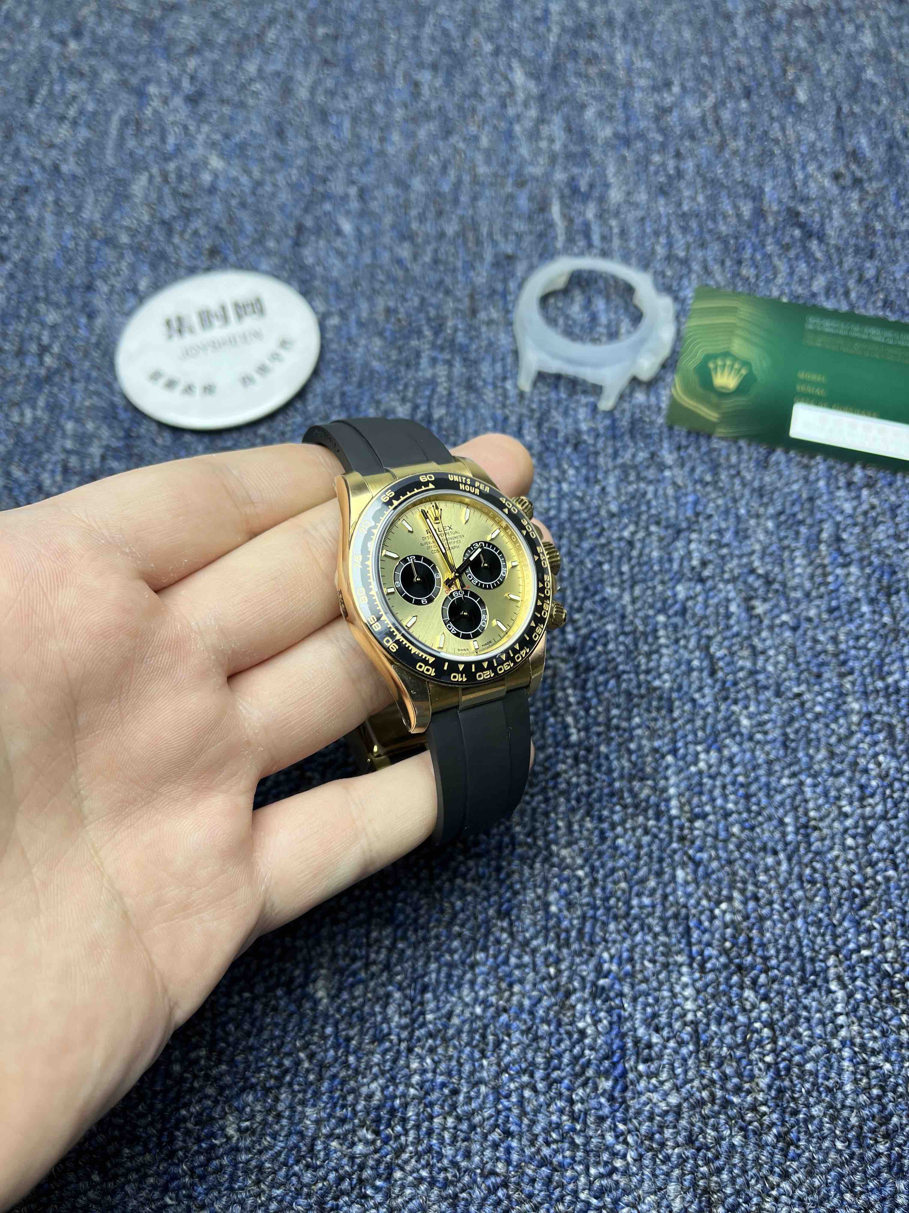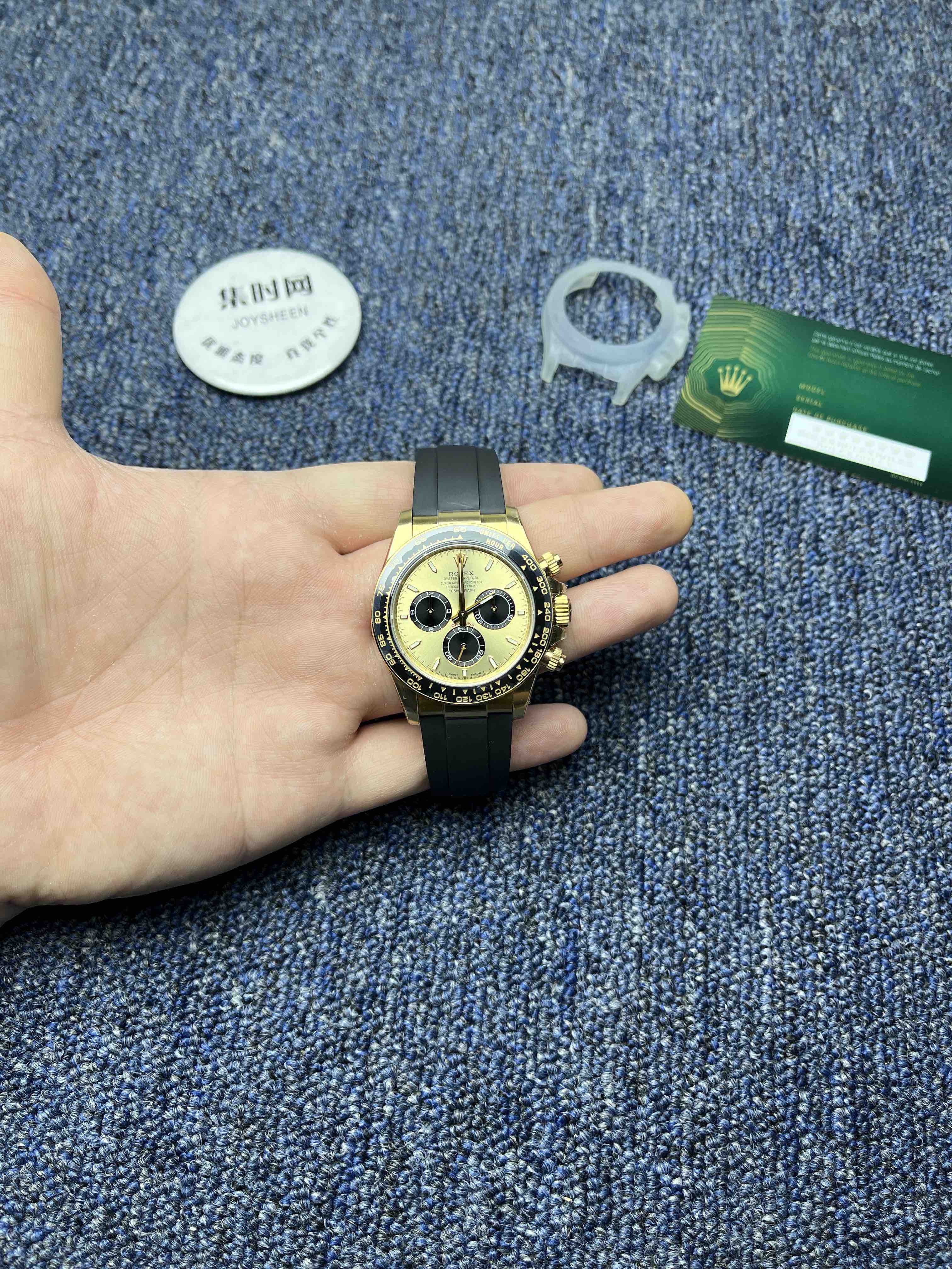 VS迪通拿胶带款配重135克+ 真正意义上的配重版本,壳没加厚的颠覆性的配重版本,真正把表壳重量配重到同步正品。而不是市场配重版本,表头重量不够,在胶带里加一整铁块的做法。VS追求的不单单是重量接近,还要手表佩戴出正品的质感,质量稳定可靠。值得信赖的版本。