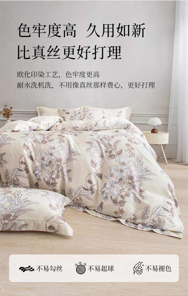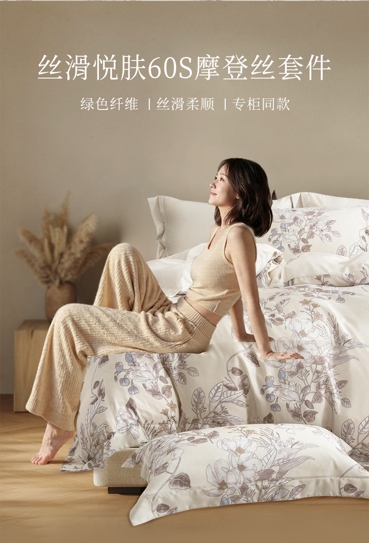 2025年秋冬新款雅芳婷60纱支摩登丝床上四件套莫代尔天丝被套床笠