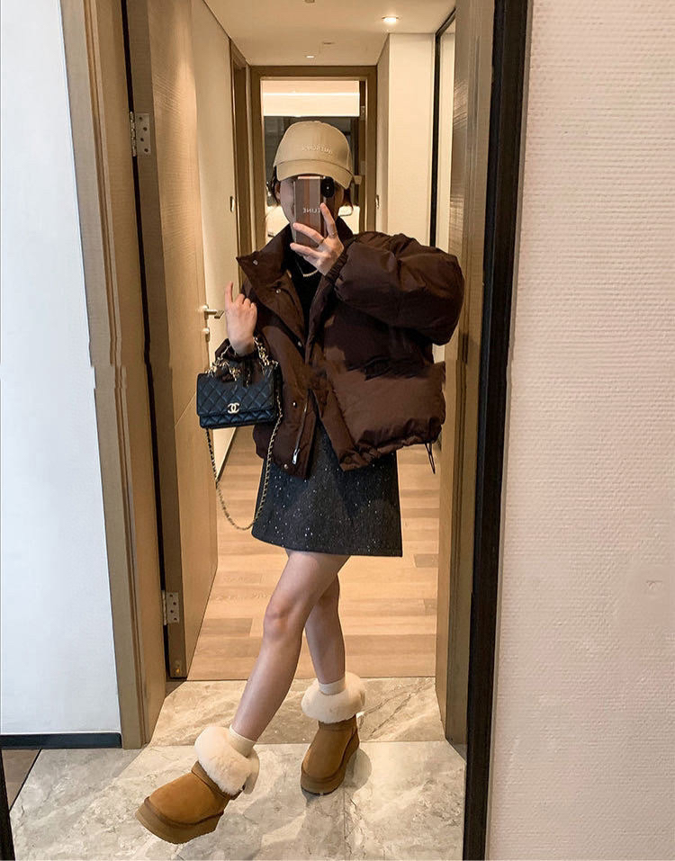 粗花呢的毛呢质感,有一定的厚度,柔软度和廓型感都很好,亮片点缀,bling bling的,闪耀全场,贵里贵气的千金感!