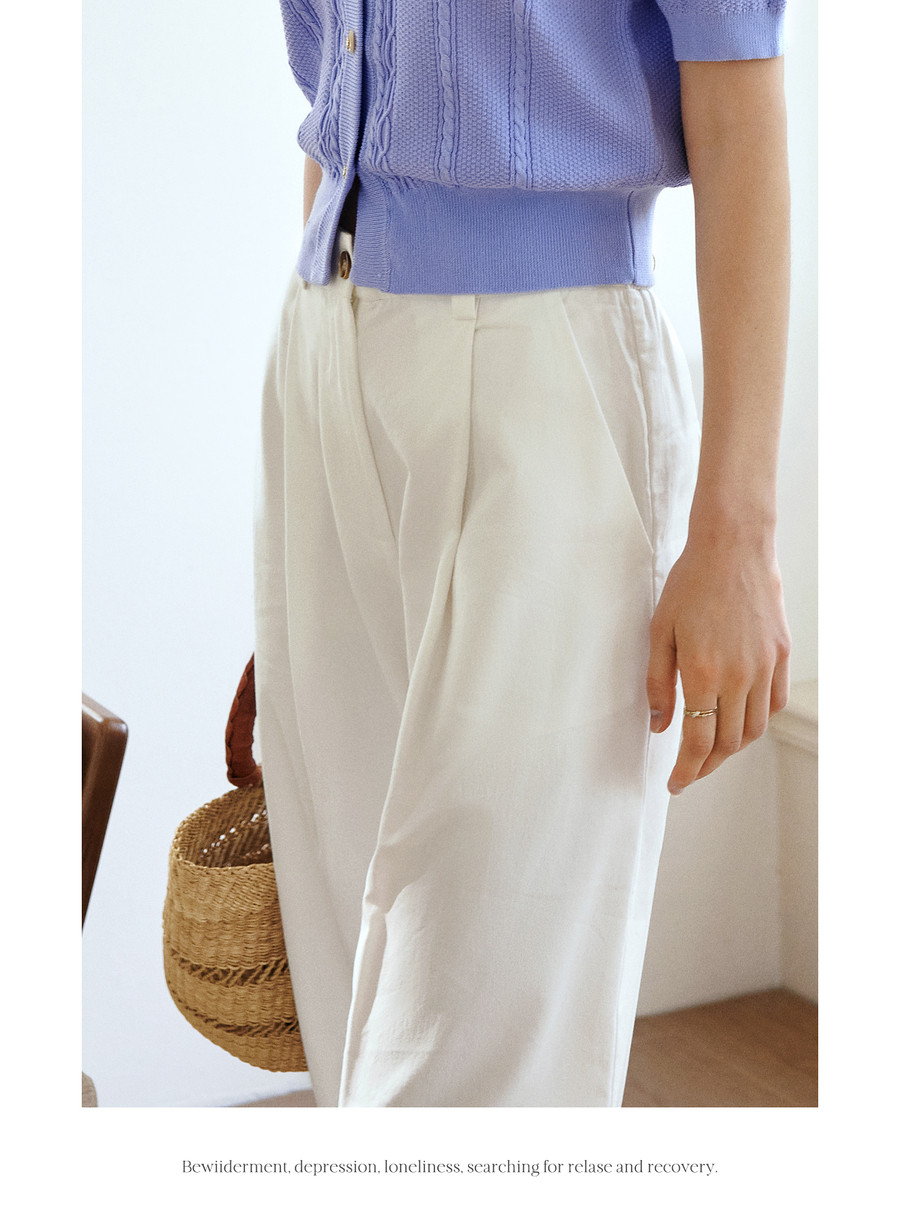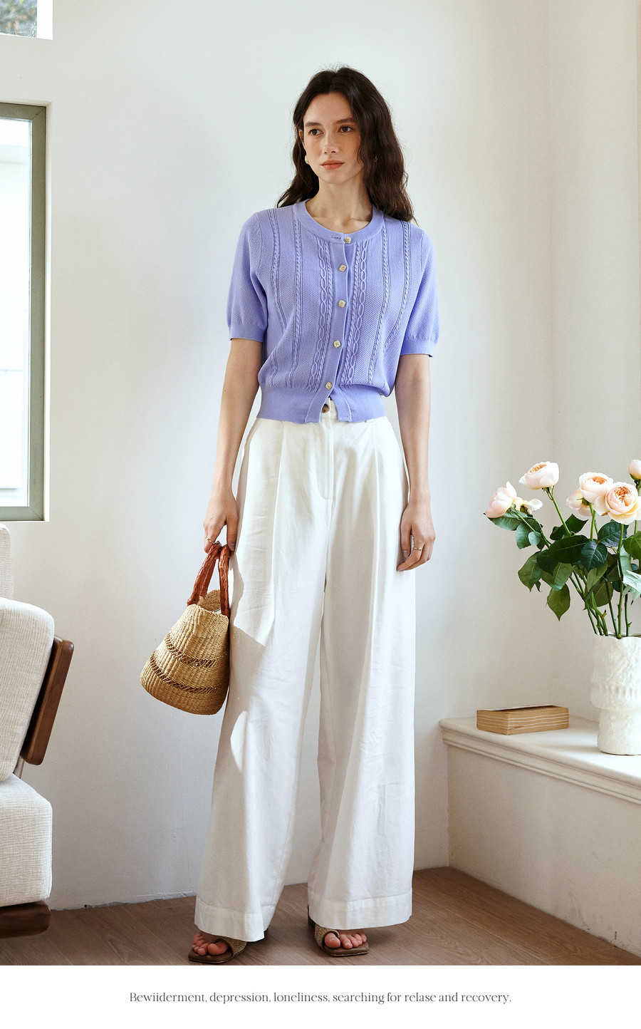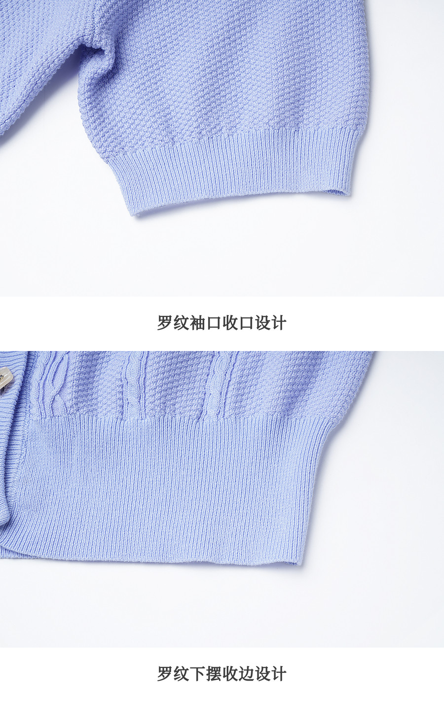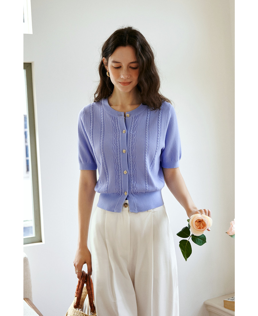 OLrain欧芮儿2026新款女夏季紫色法式圆领绞花毛针织开衫短袖上衣