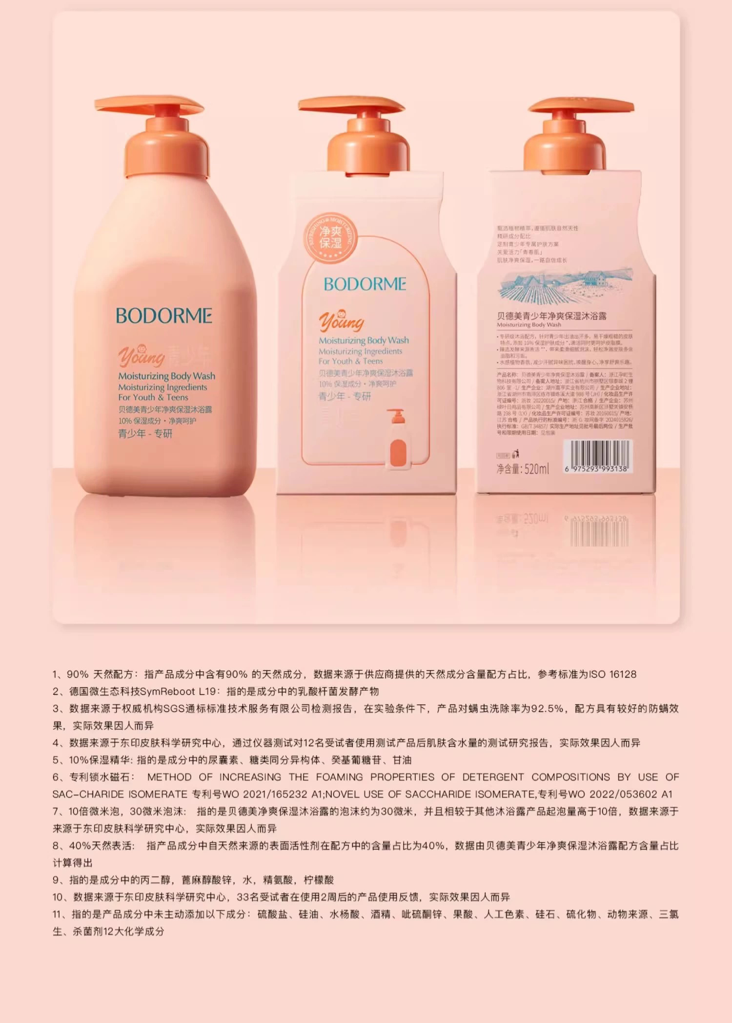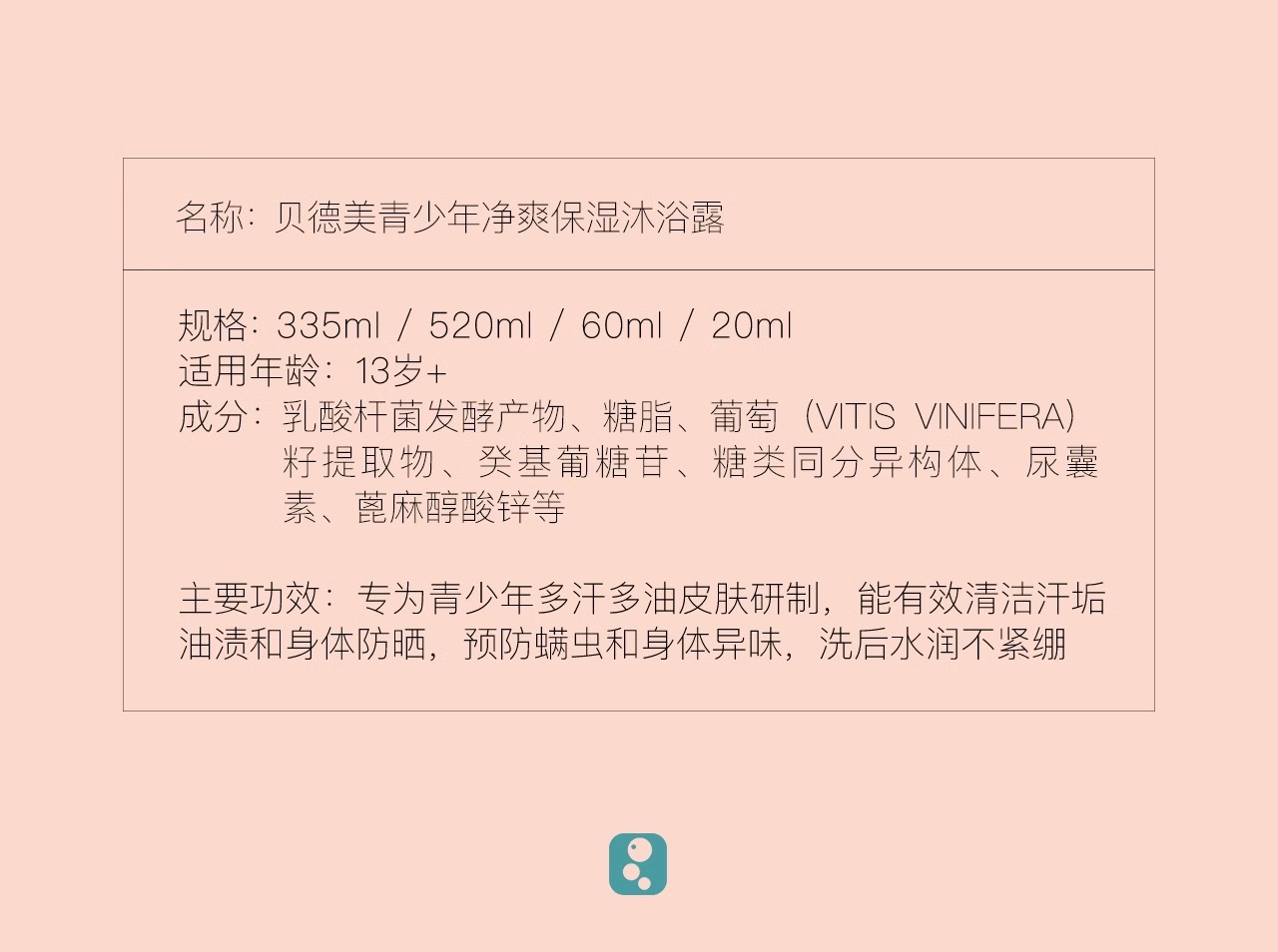贝德美青少年净润保湿沐浴露335ml