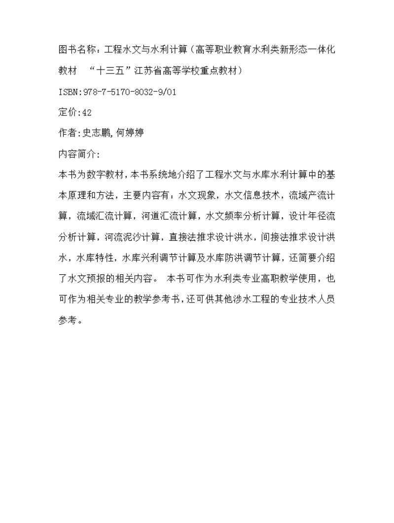工程水文与水利计算(高等职业教育水利类新形态一体化教材 “十三五”江苏省高等学校重点教材)