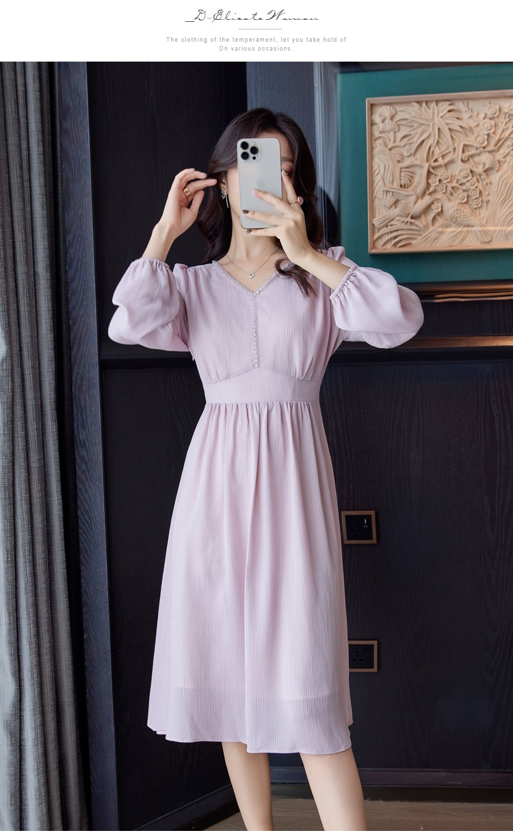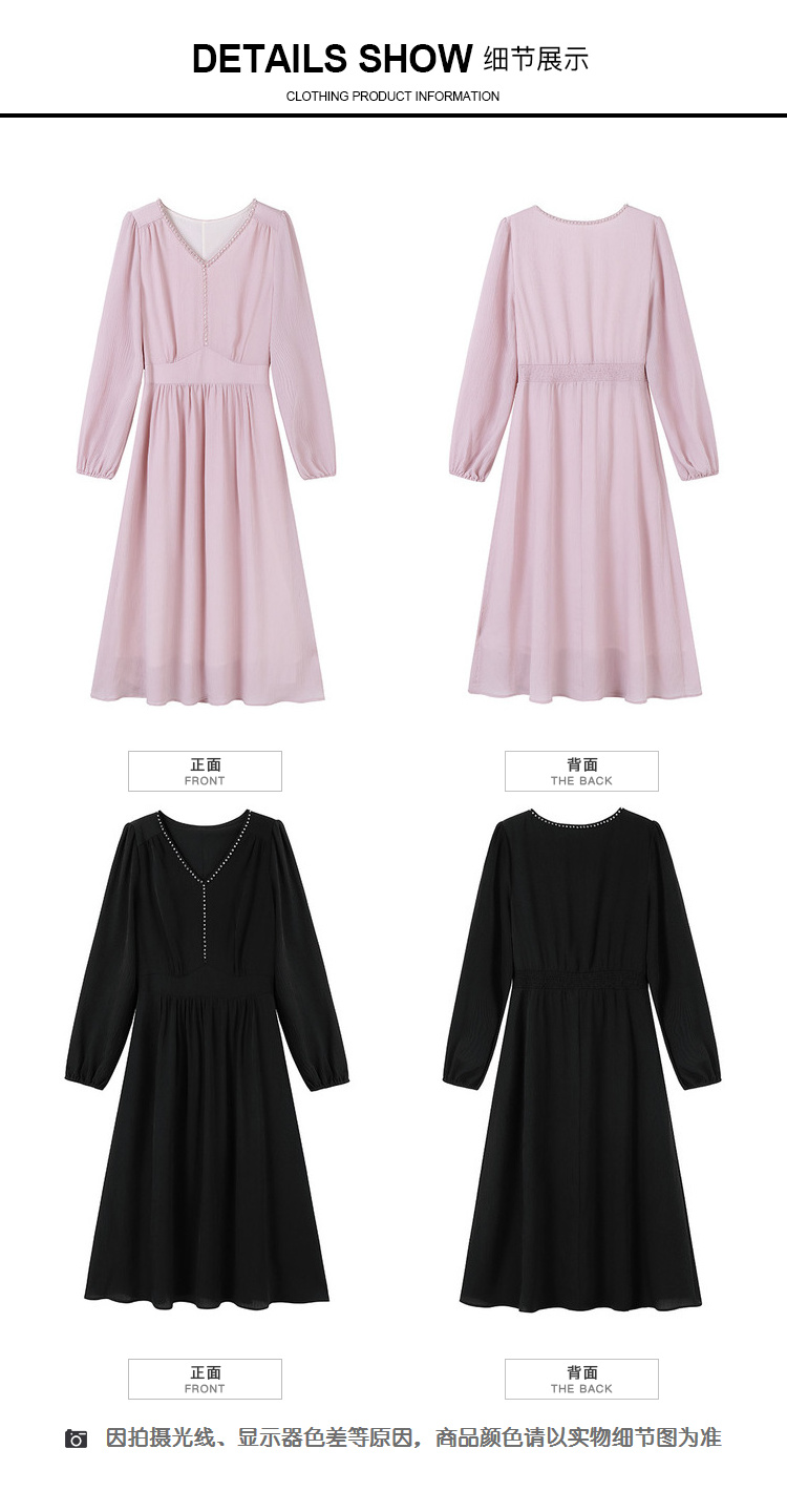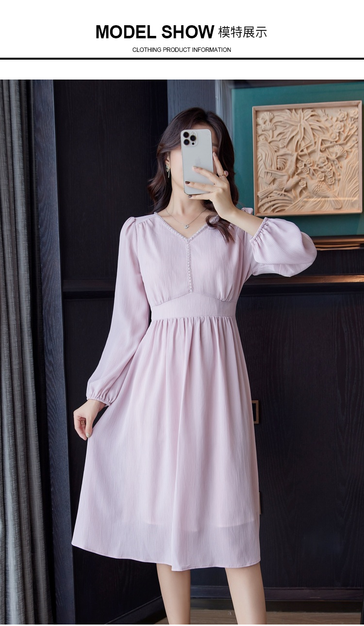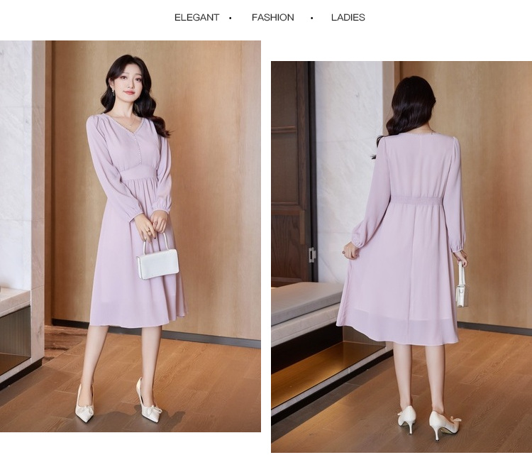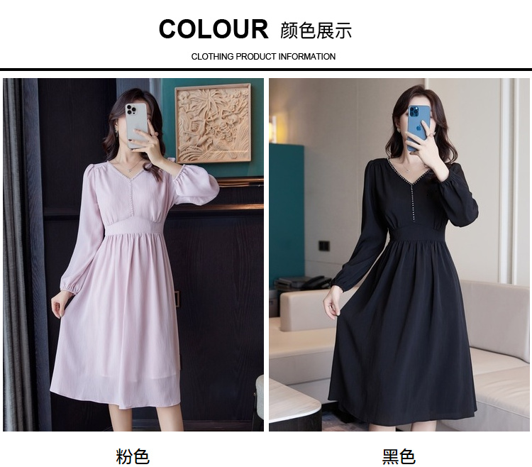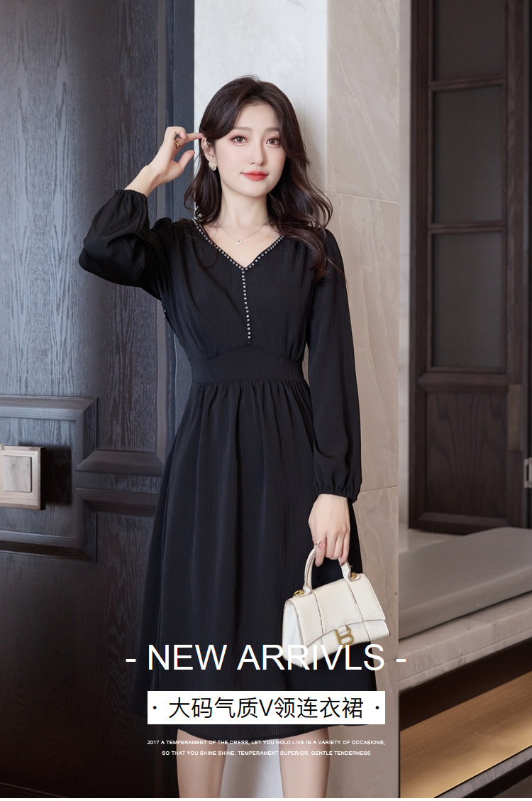 奢姿2024春秋季新款大码女装灯笼袖花边裙子胖妹妹气质V领连衣裙9933825895