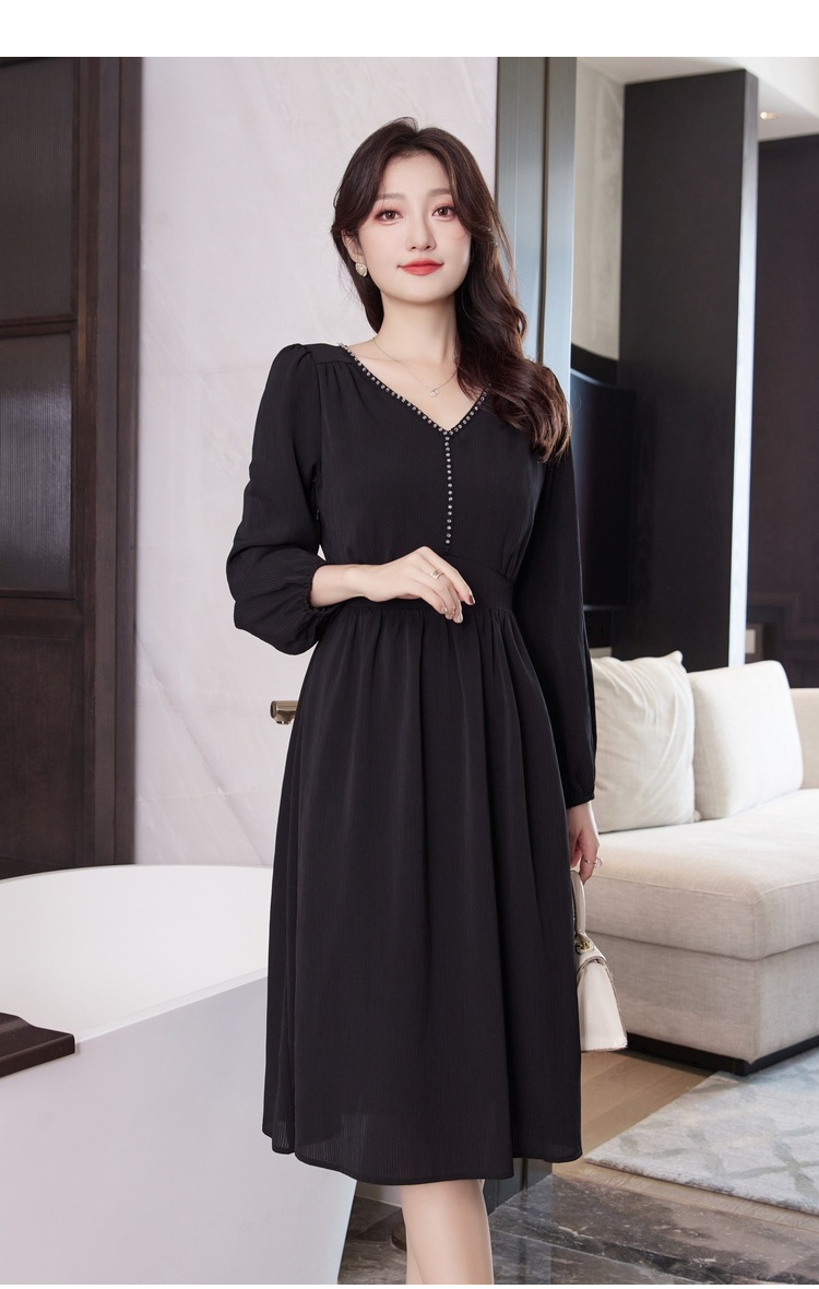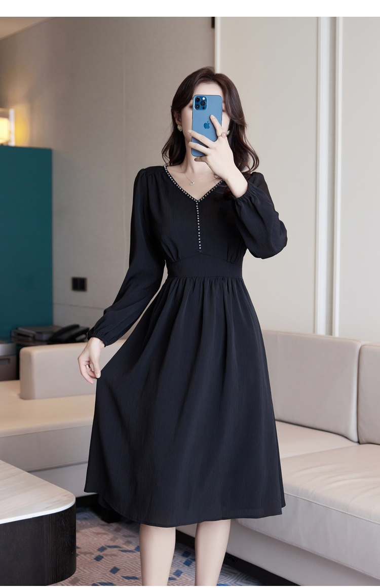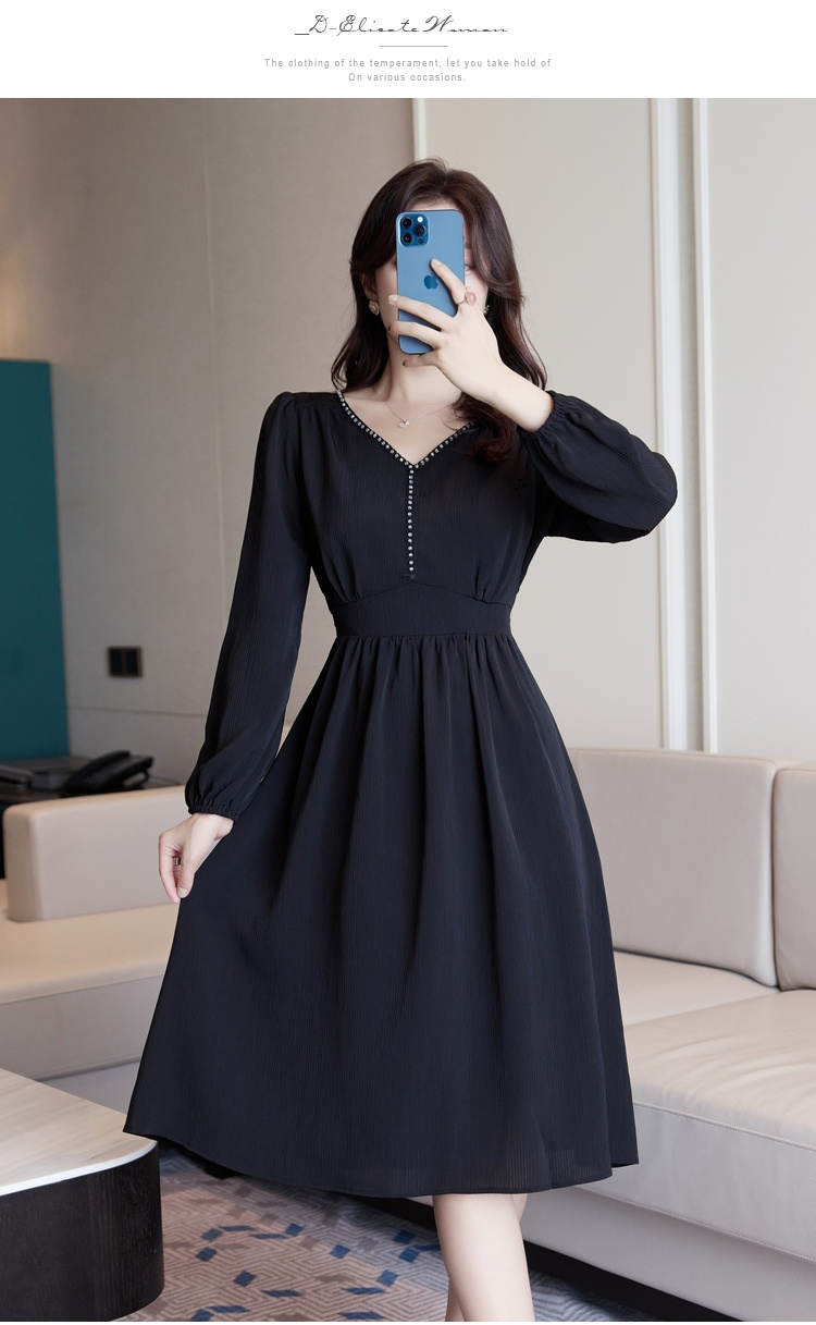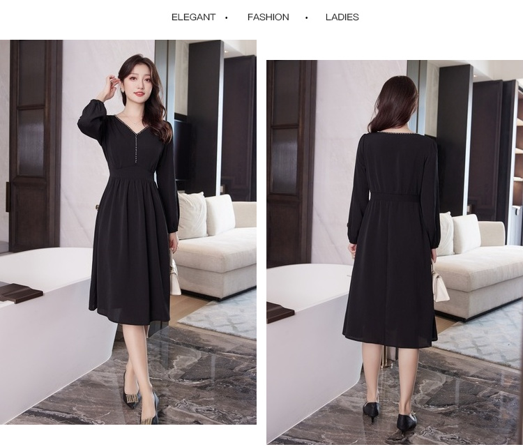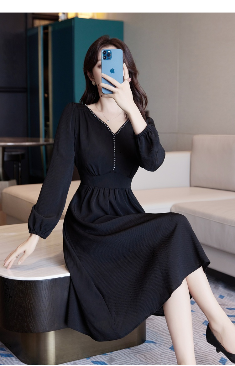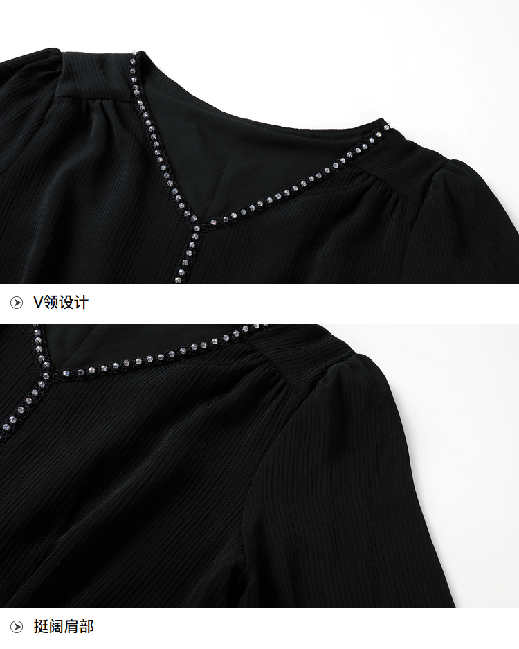 奢姿2024春秋季新款大码女装灯笼袖花边裙子胖妹妹气质V领连衣裙9933825895