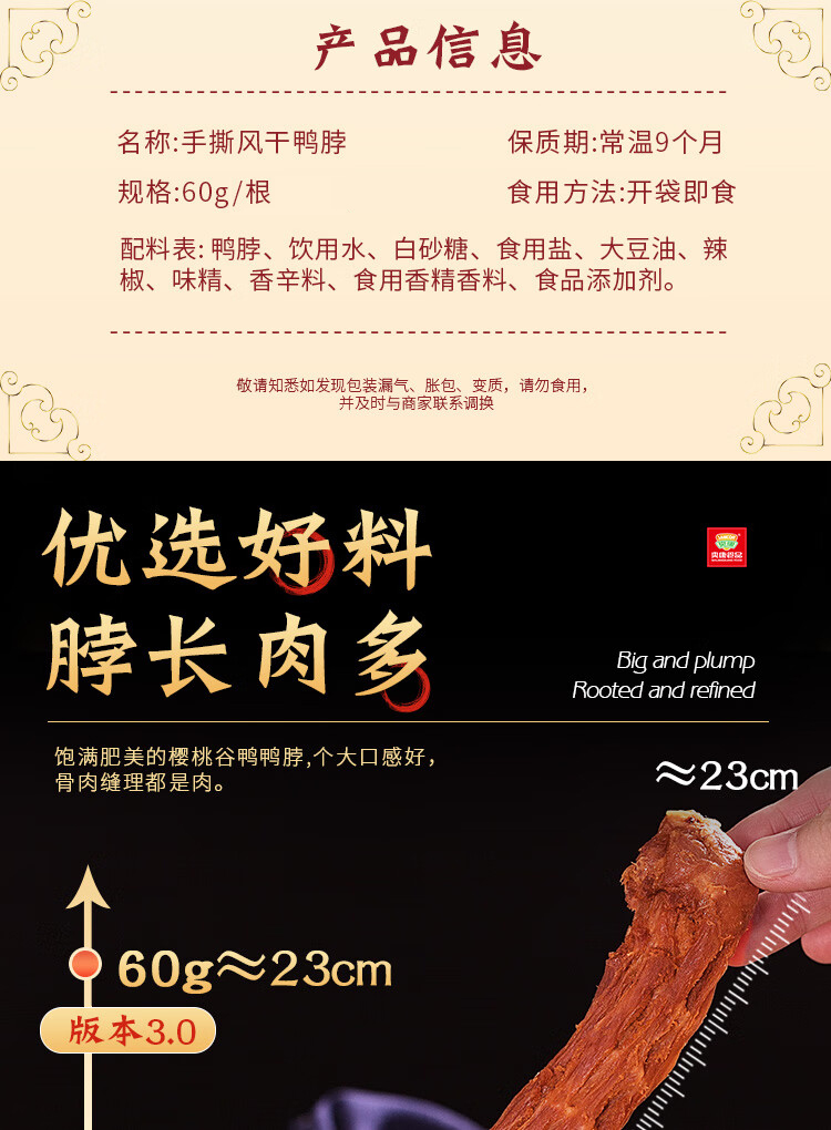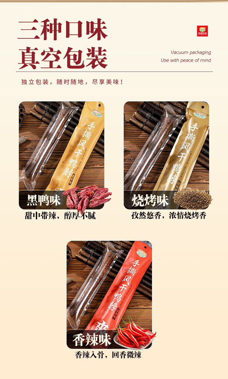 【分仓直发包邮】爽康手撕氮气锁鲜风干鸭脖60g*7根(口味可选香辣味/黑鸭味 /烧烤味)
