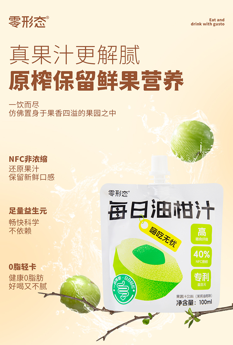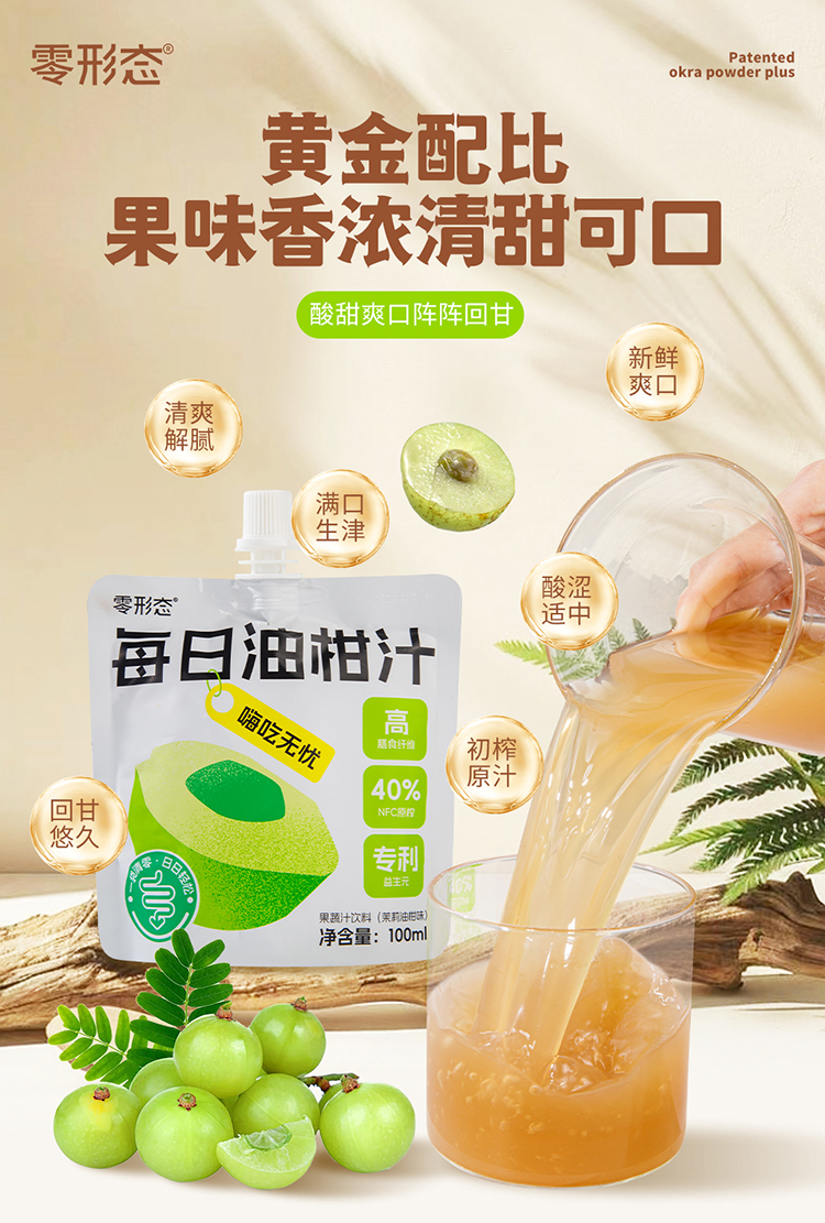 【零形态每日油柑汁】NFC鲜榨工艺 油柑果汁饮料 清爽解腻 滋味甘甜 专利成分“益生元、黄秋葵粉”科学配比健康零脂肪